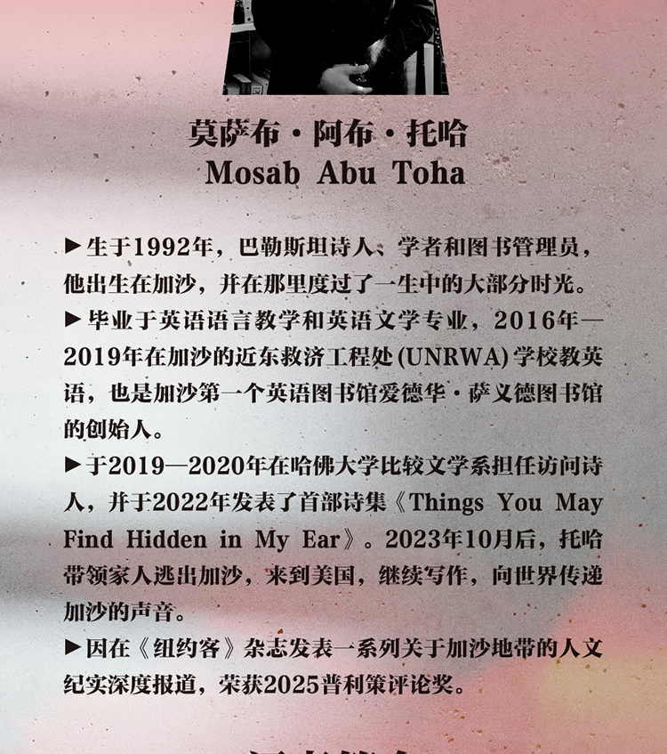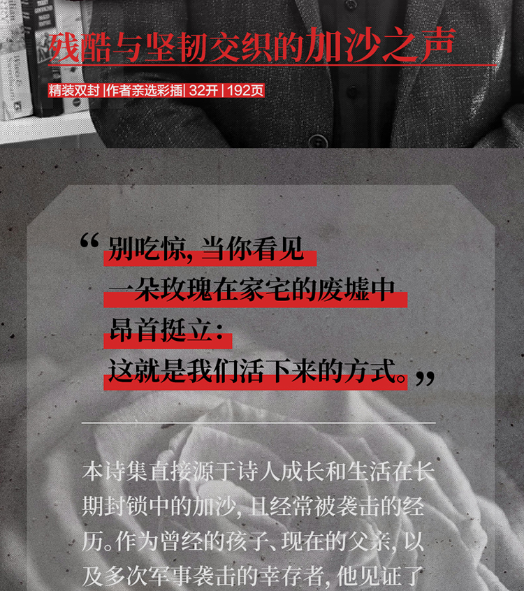 90后巴勒斯坦青年诗人、2025普利策评论奖得主作品,残酷与坚韧交织的加沙之声。废墟中昂首挺立的玫瑰,是诗歌,也是生命。