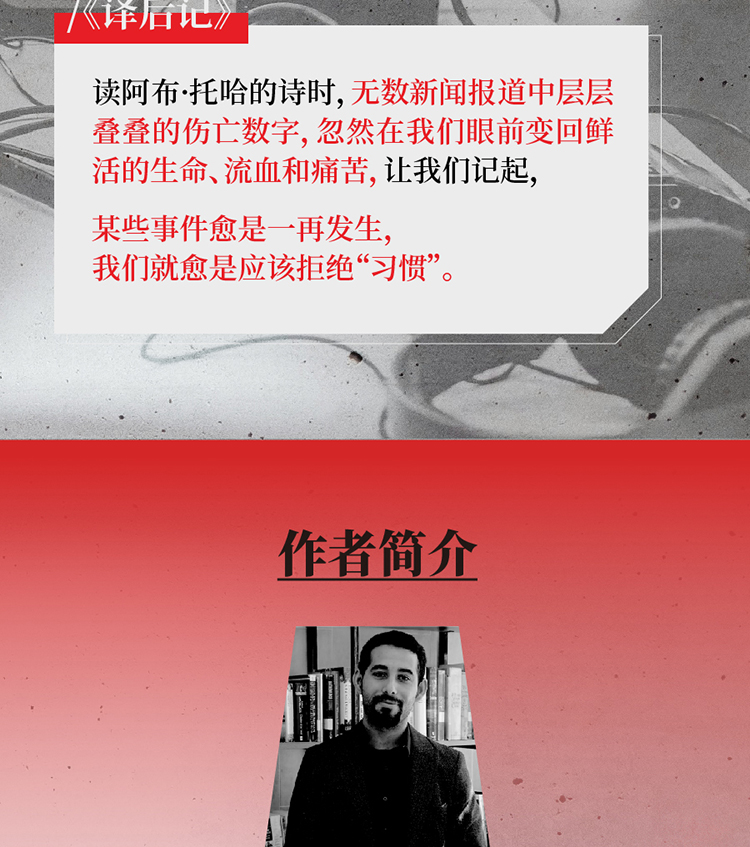 ★高超的诗艺,启发性的诗歌理念,一本让你一次次心碎的诗集,准确、质朴、自然的语言,诉说诗歌如何让人重返世界与共同人性。在托哈看来,诗歌不一定非得诞生于诗意的环境,也从来都不是逃避。诗歌让他开启想象,给予他走出加沙的翅膀;也引领他回归更丰富的现实,让他关注因日常恐惧而忽略的美好事物,重返世界和共同人性——我们和华兹华斯生活在同一颗星球上!他的诗歌写作贯彻了他对诗歌本质的理解,简单、清晰,直击人心。