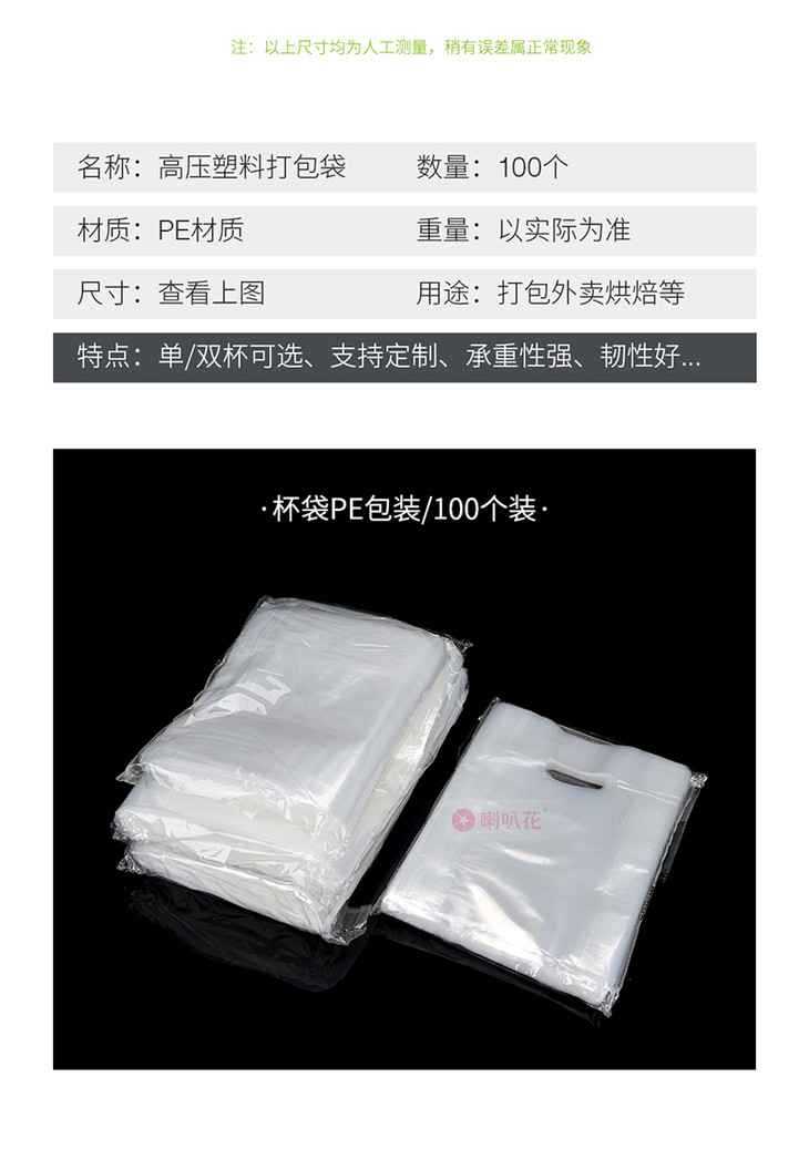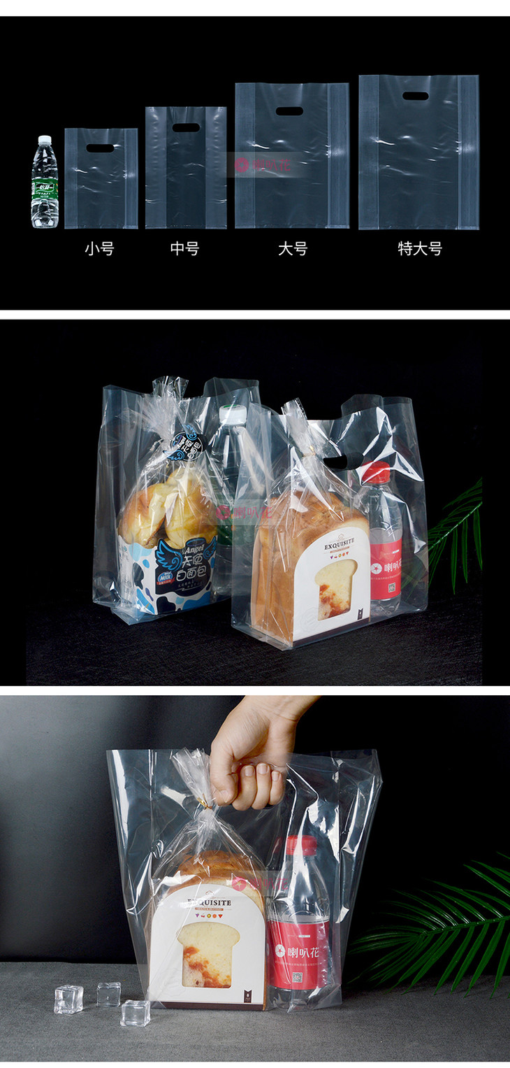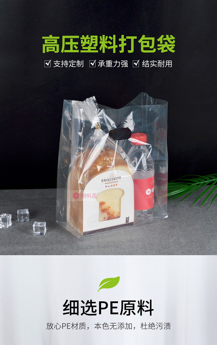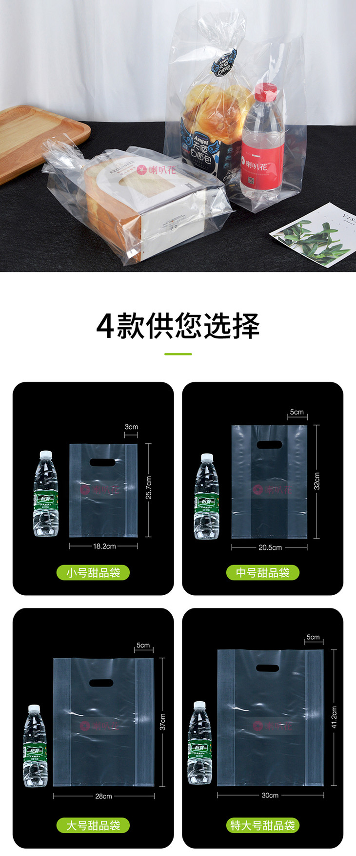喇叭花烘焙包装加厚甜品蛋糕手提打包袋食品塑料吐司面包袋100个