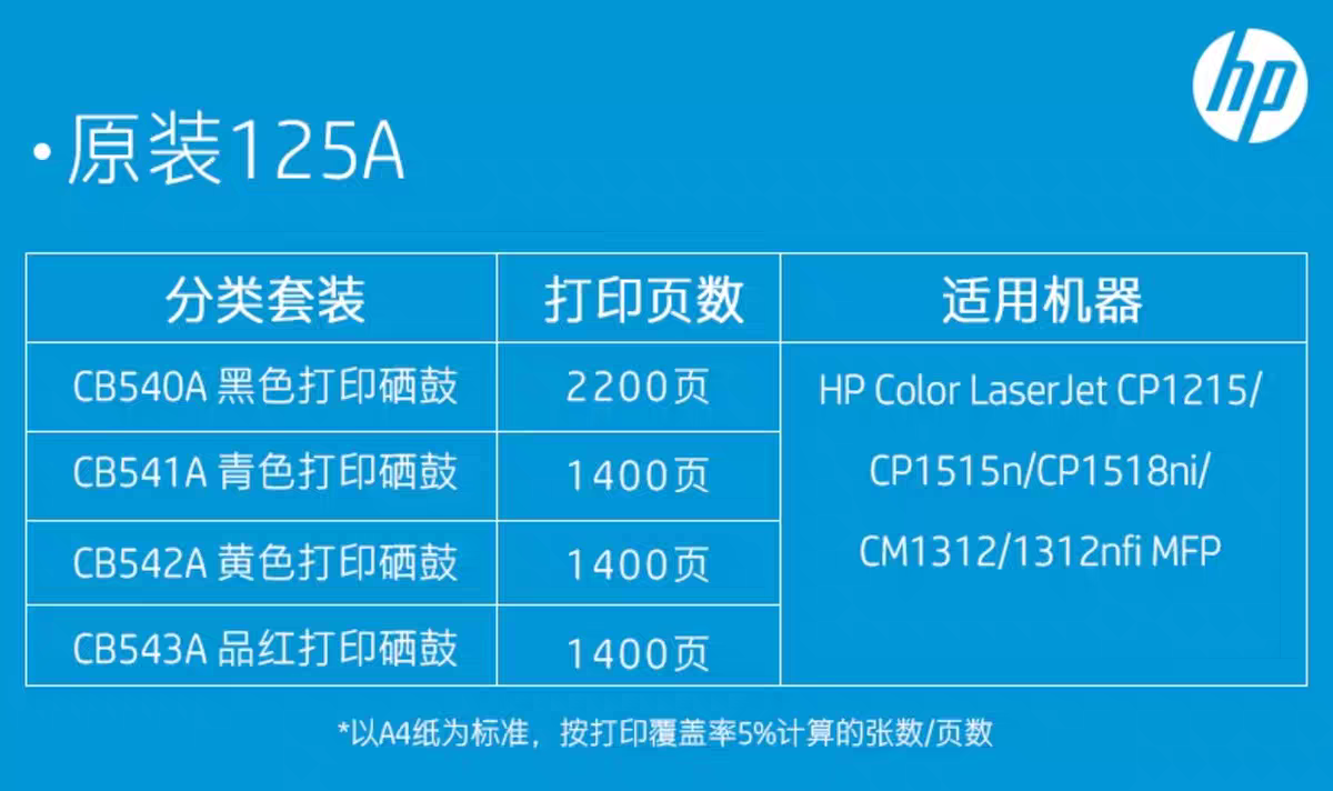 惠普(HP)原装125A硒鼓黑色CB540A硒鼓CB541A CB542A CB543A适用CP1215 1515n 1518ni打印机