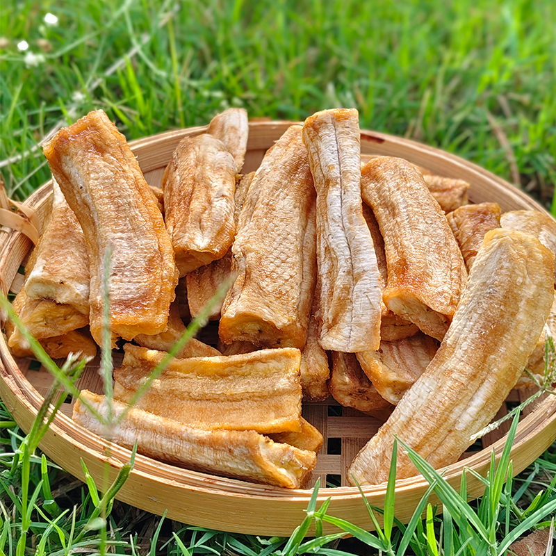 将自然成熟的老实芭蕉剥皮,切成两半,放入托盘