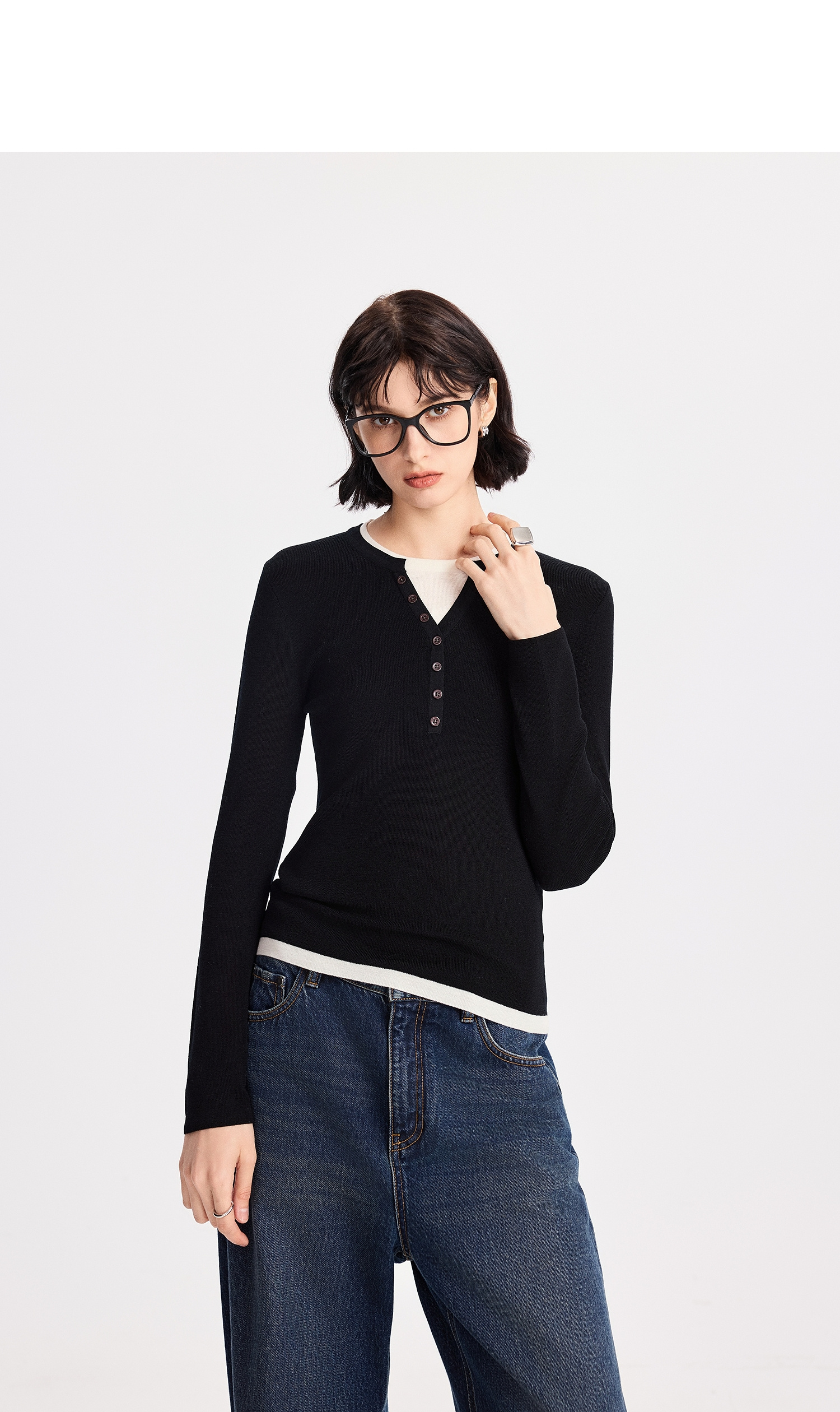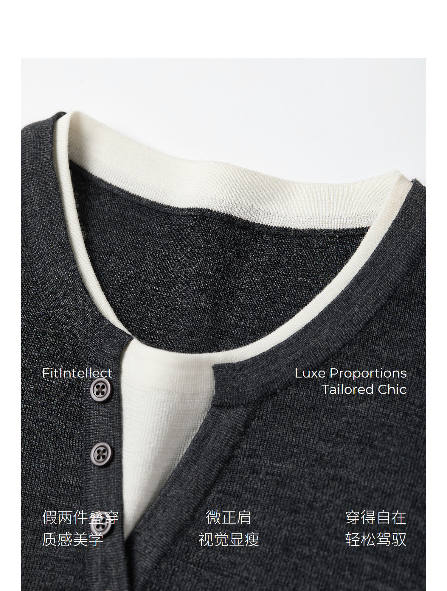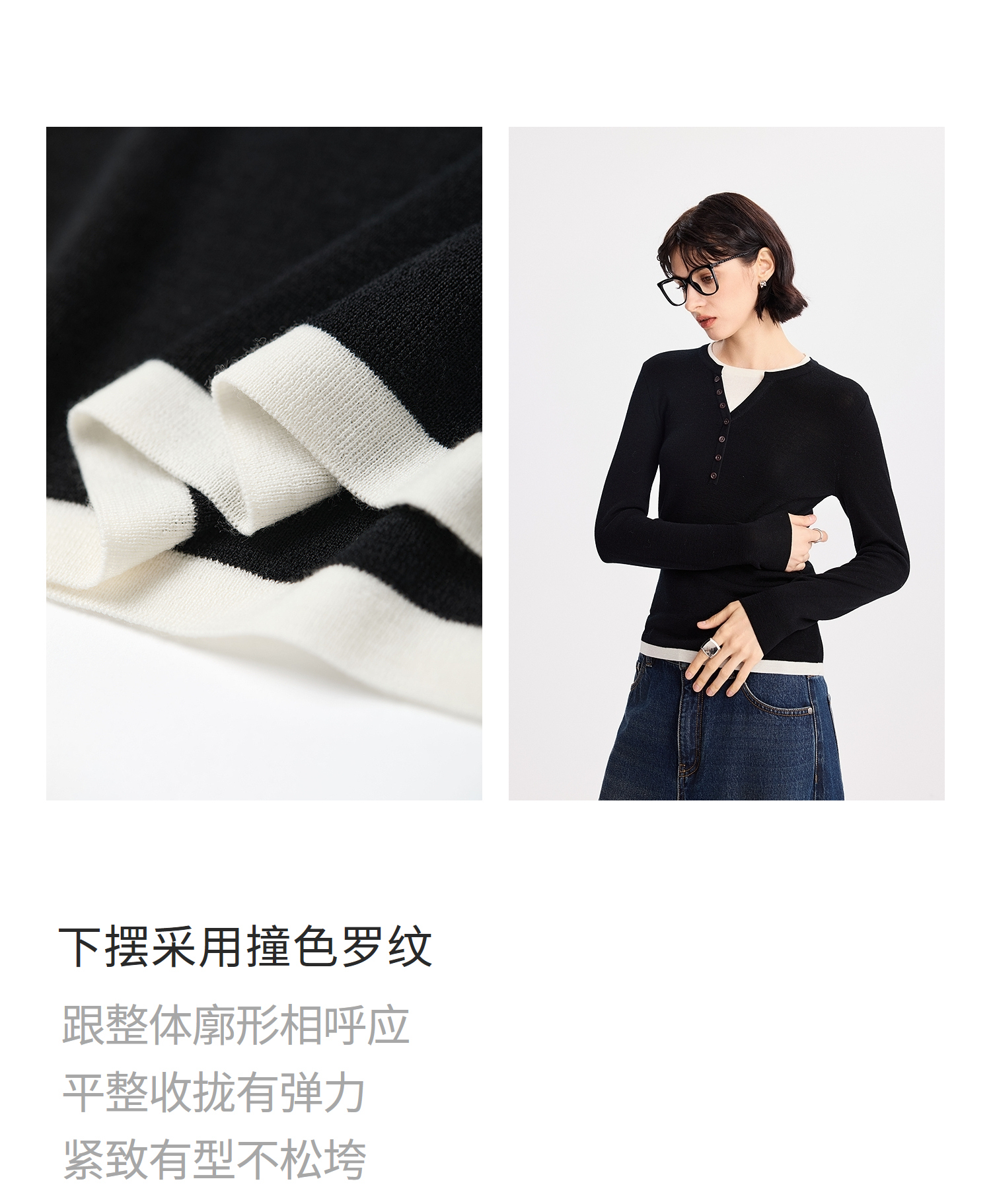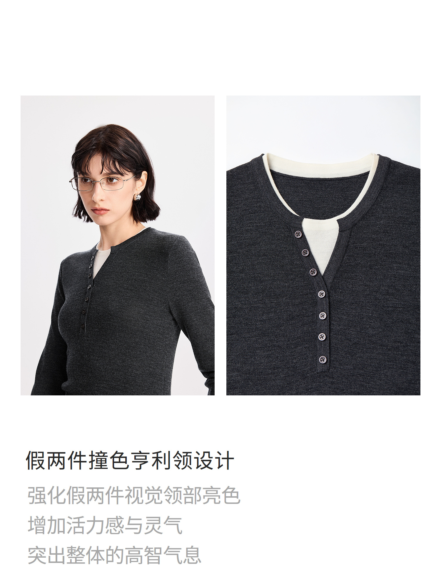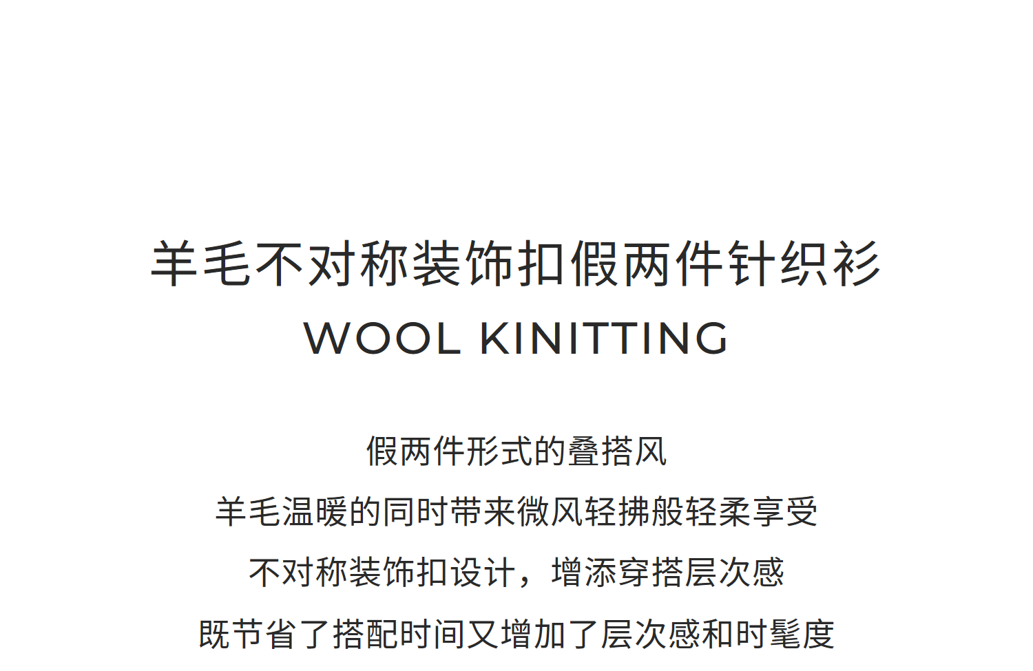 棉仓366635046-羊毛不对称装饰扣假两件针织衫