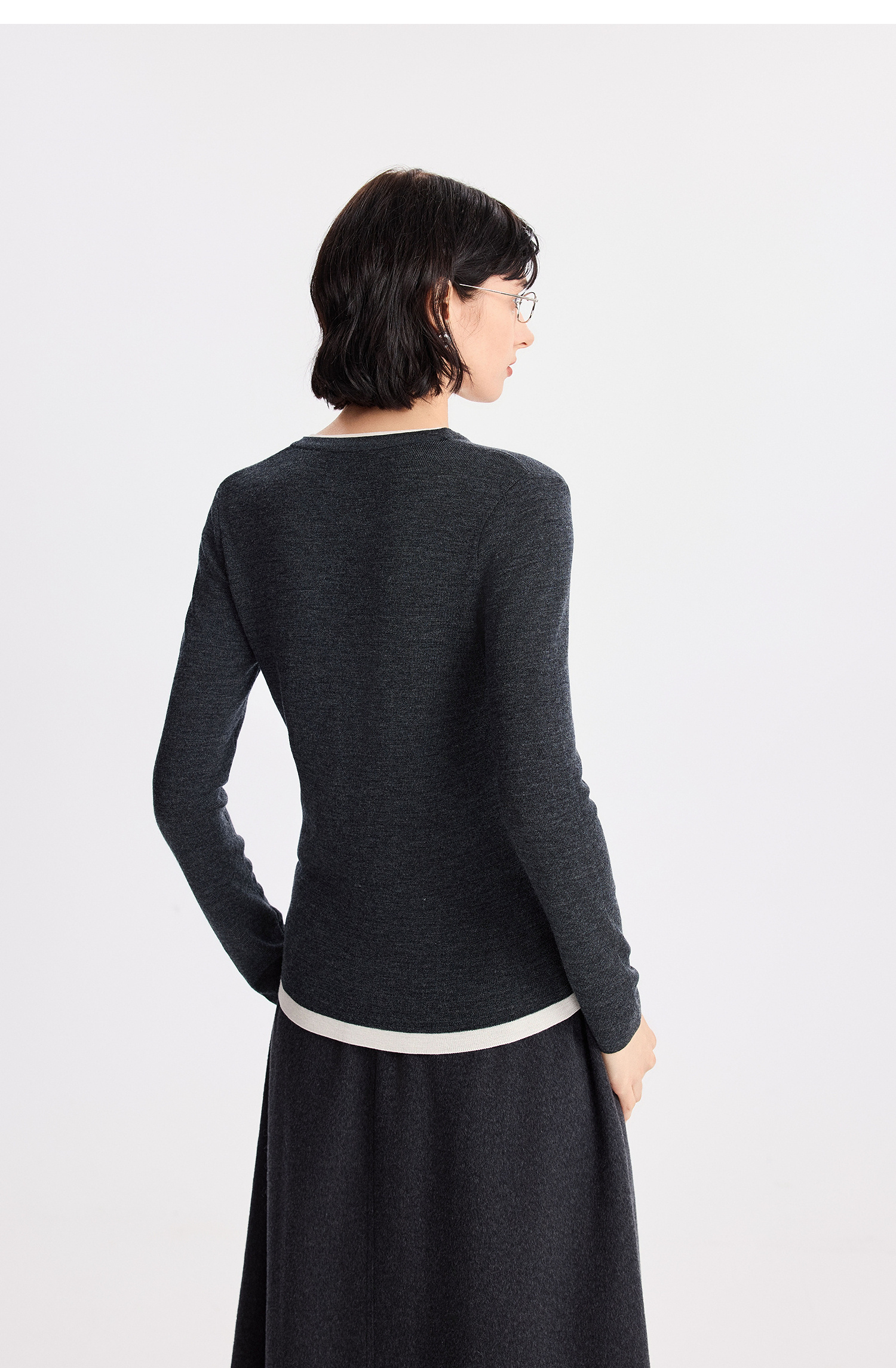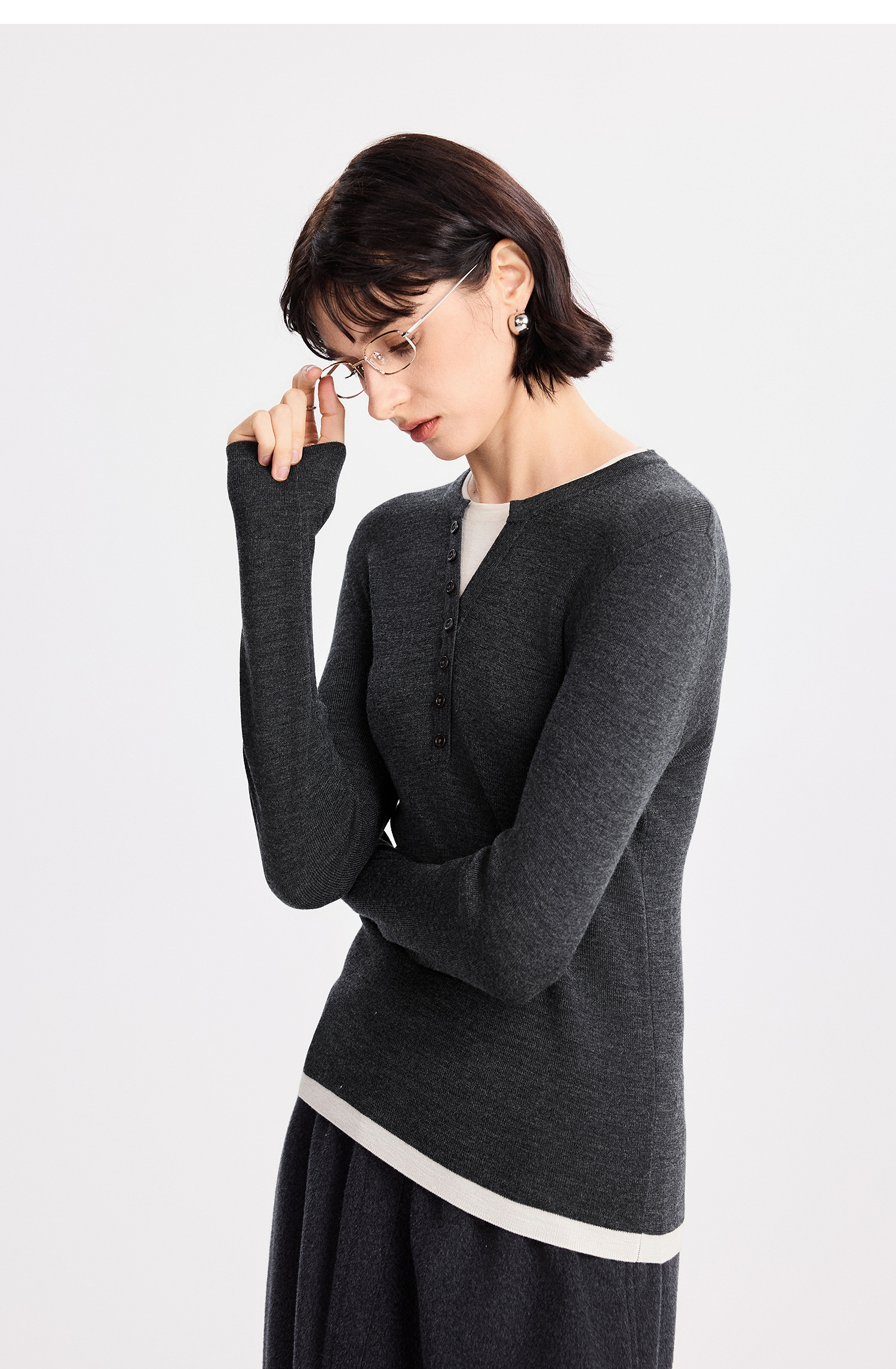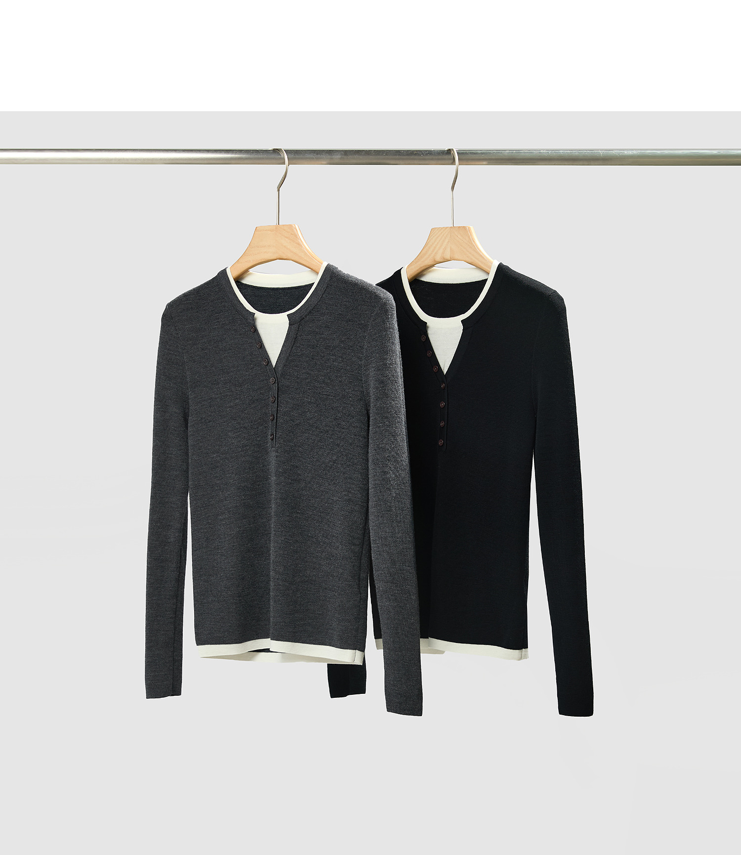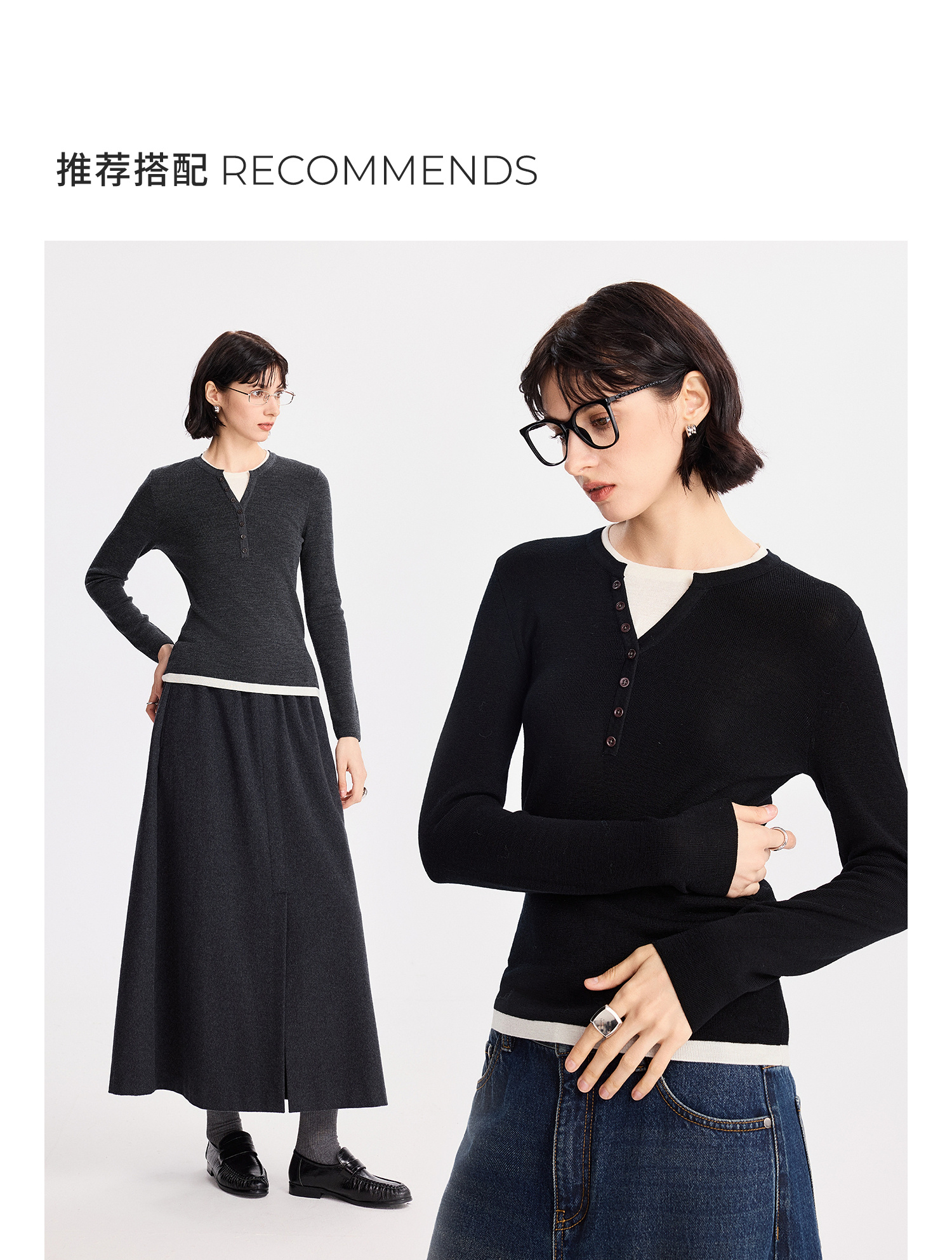 棉仓366635046-羊毛不对称装饰扣假两件针织衫
