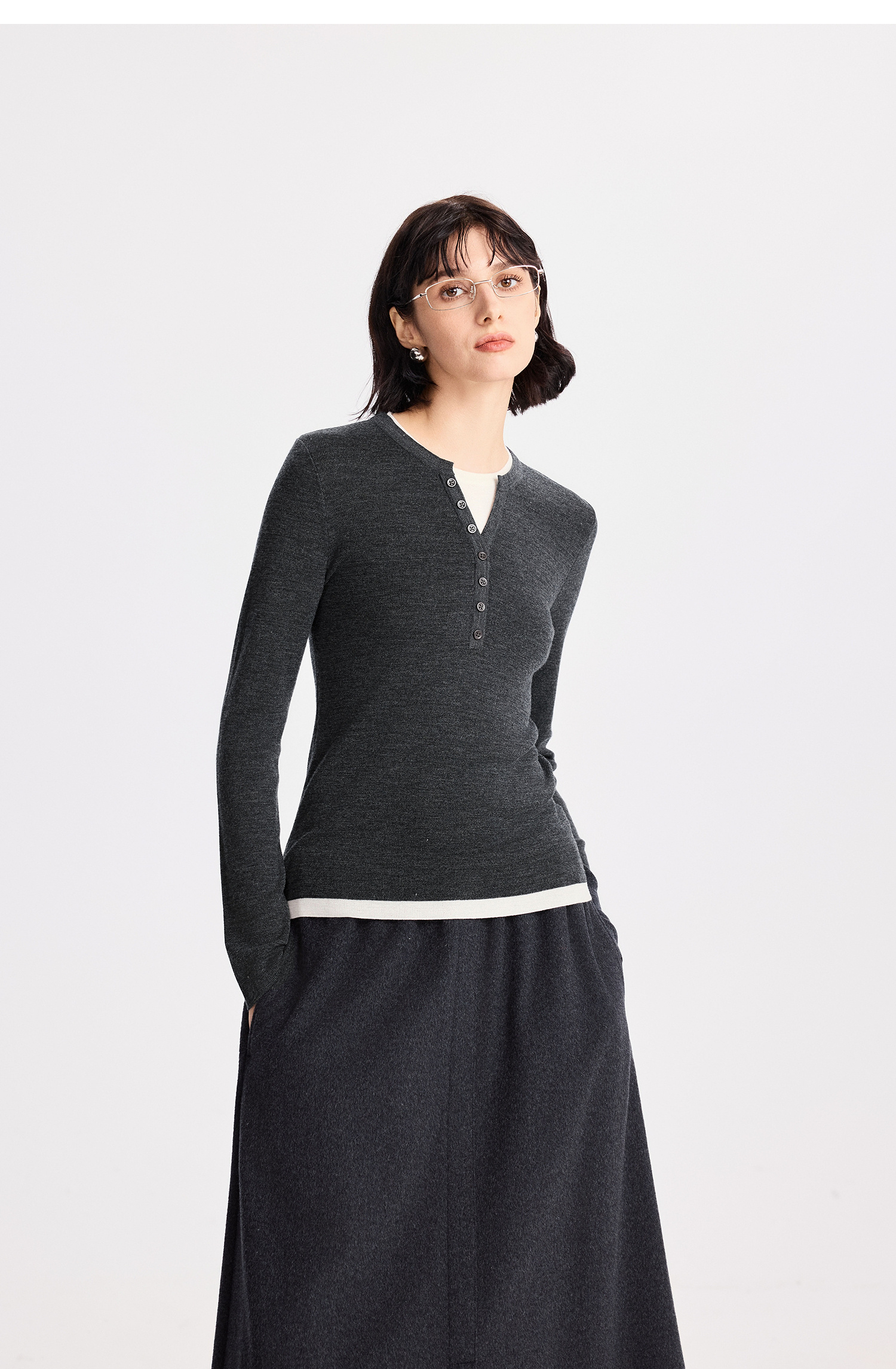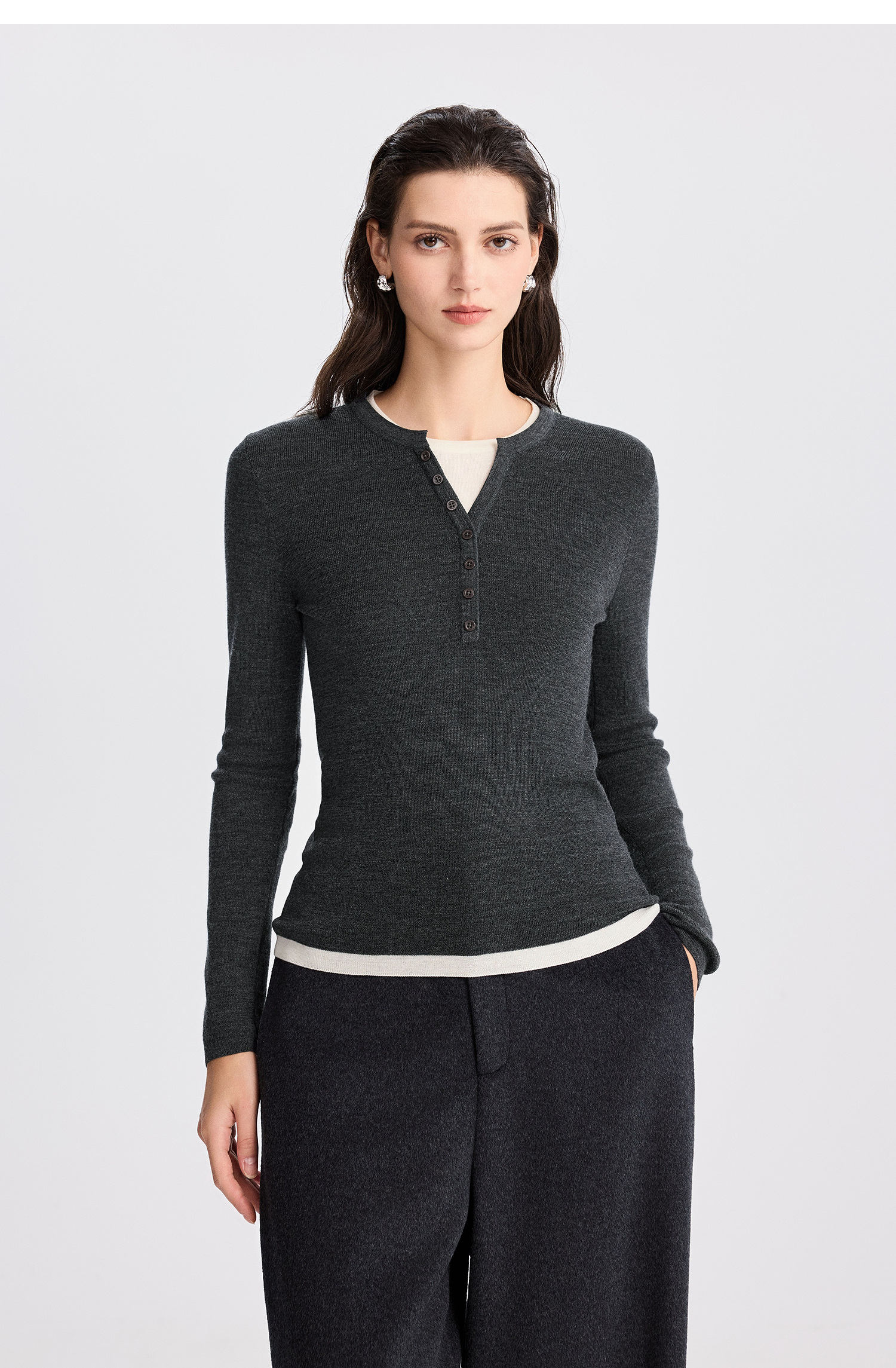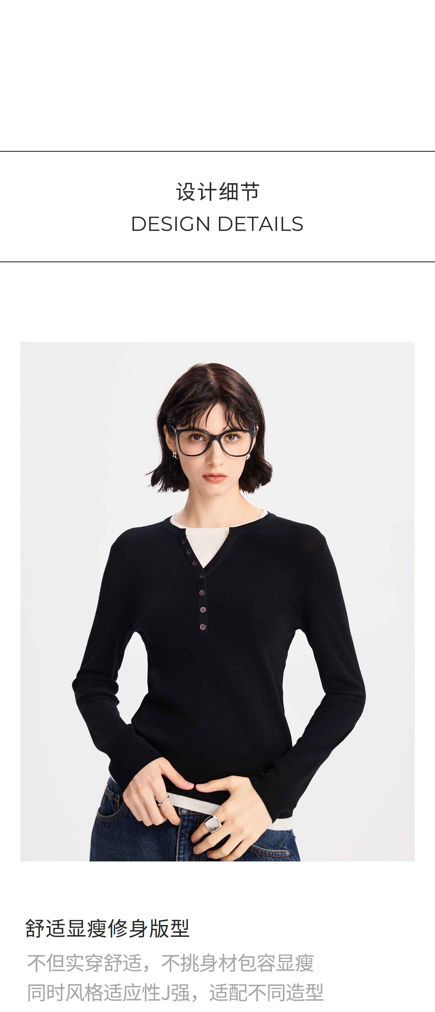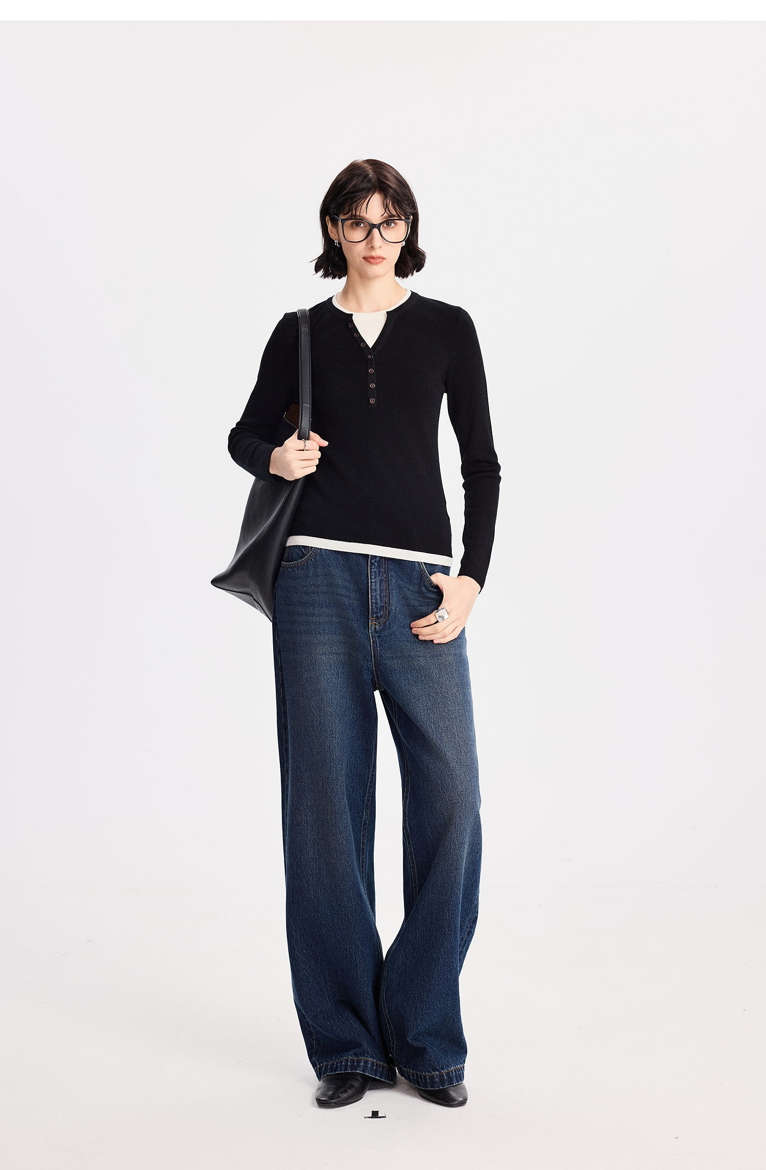 棉仓366635046-羊毛不对称装饰扣假两件针织衫