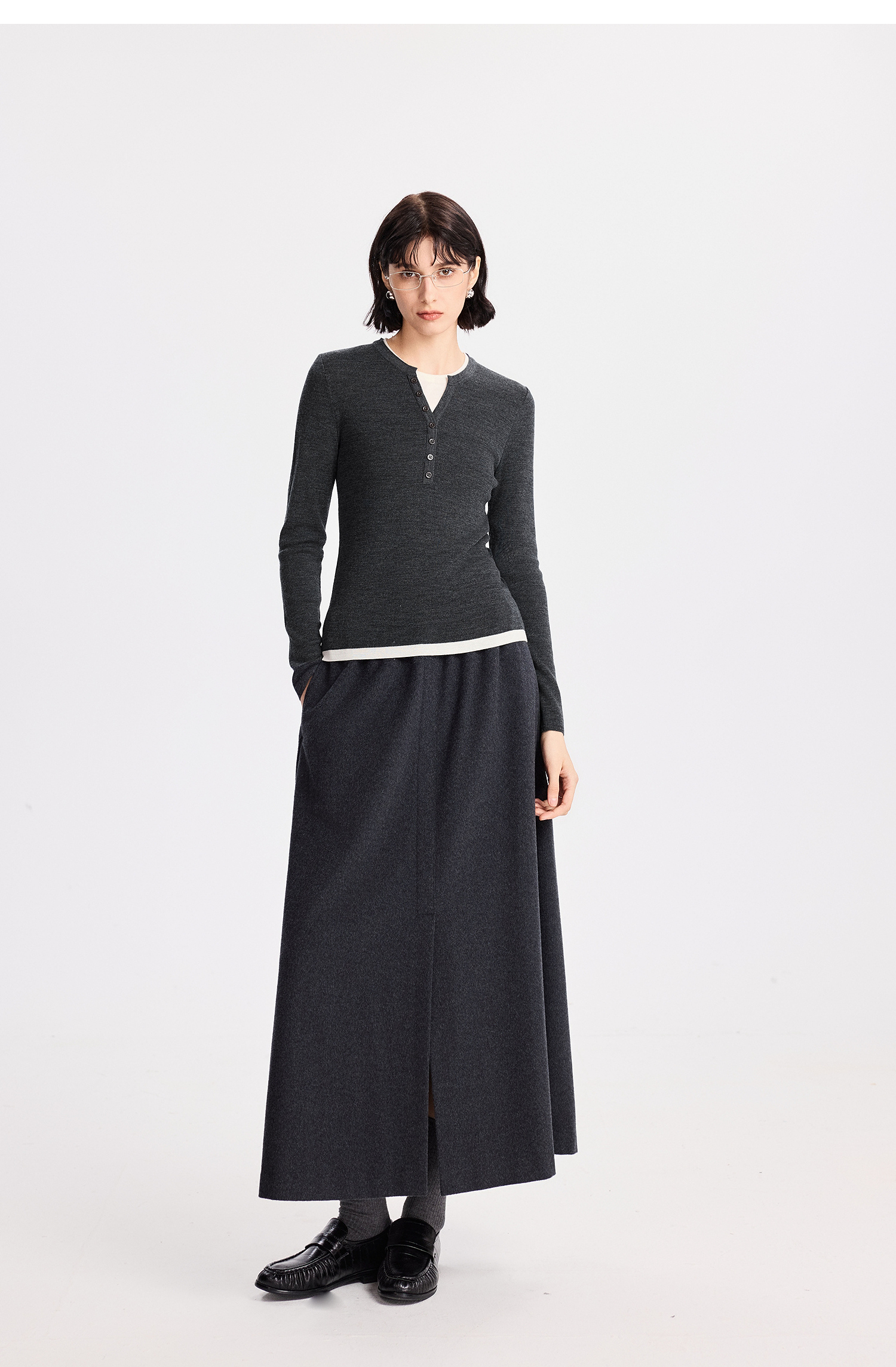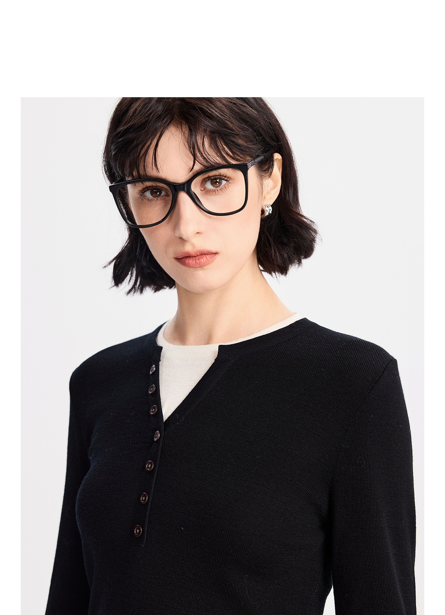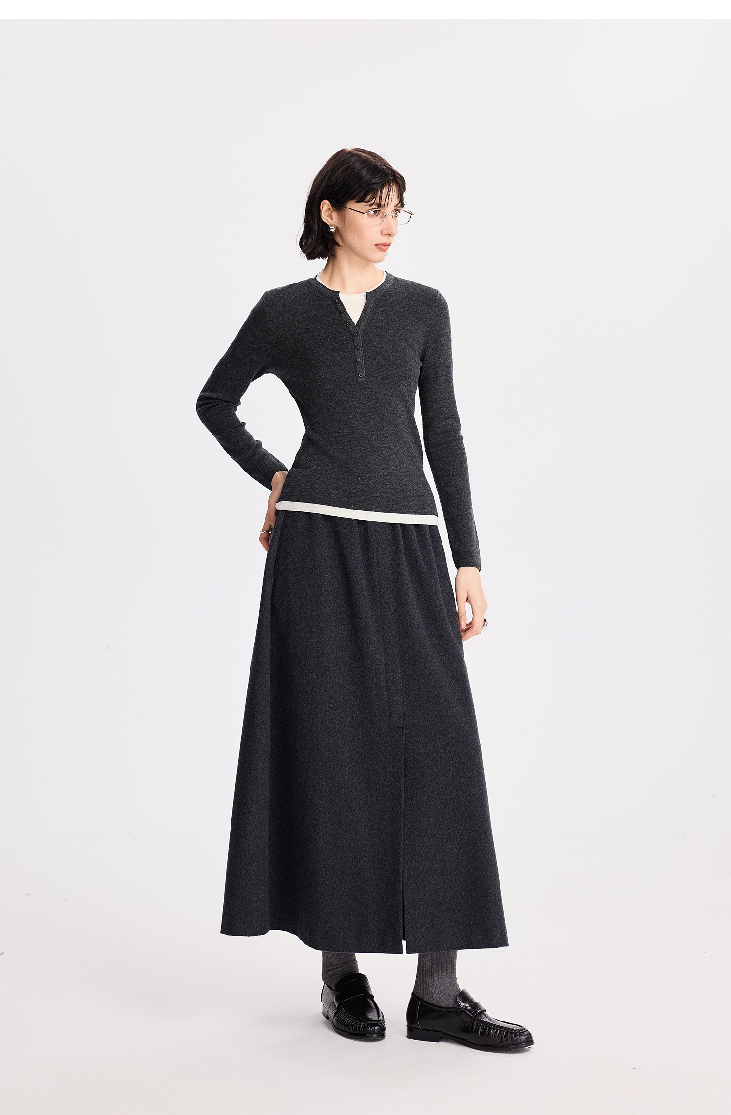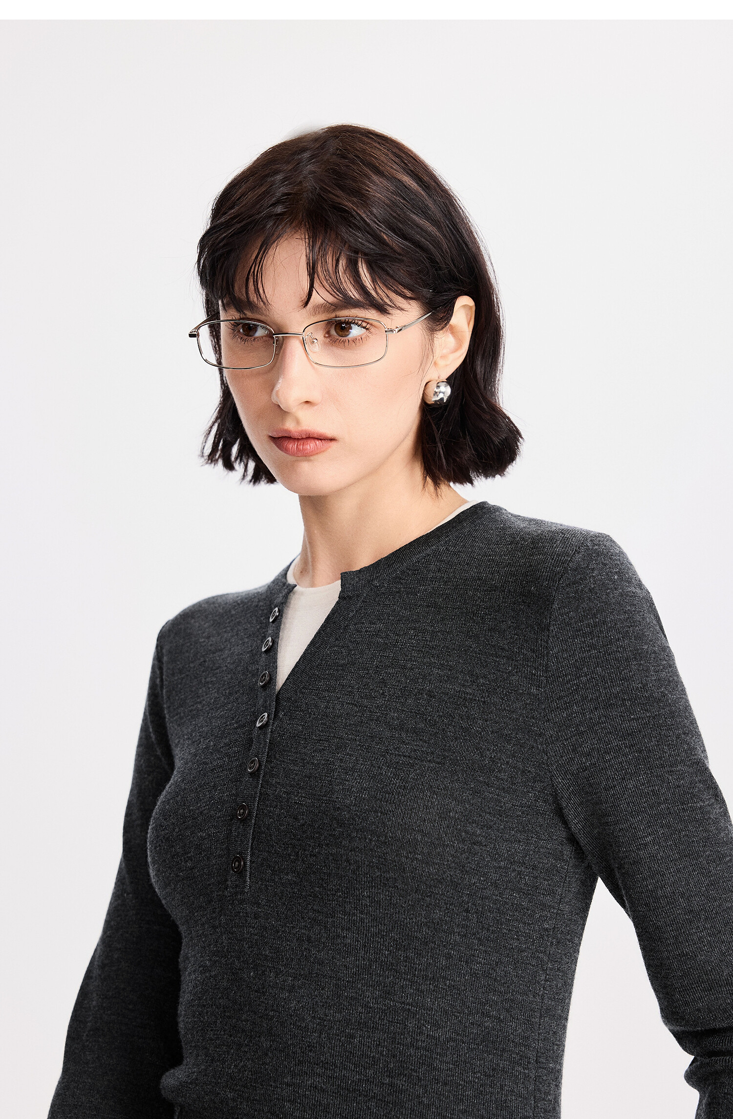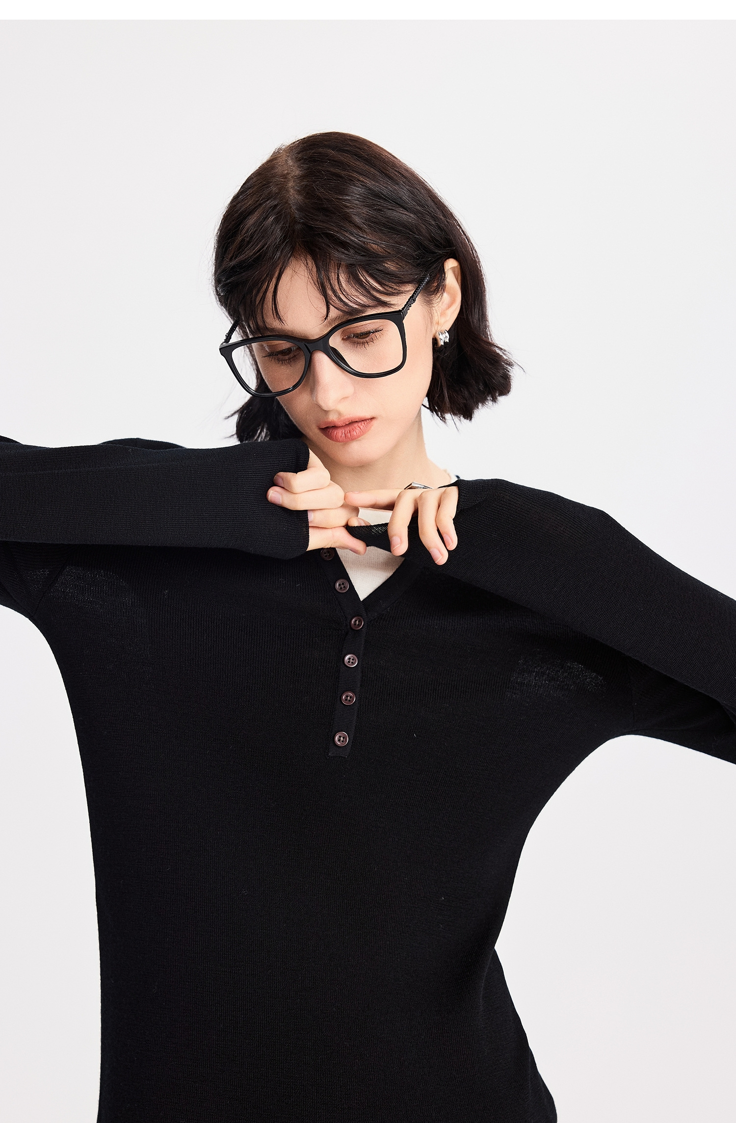 棉仓366635046-羊毛不对称装饰扣假两件针织衫