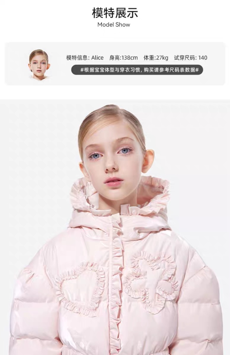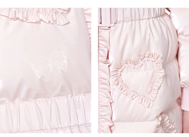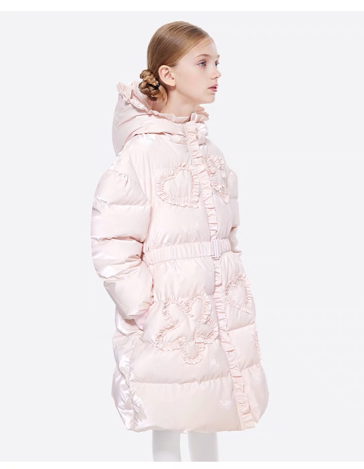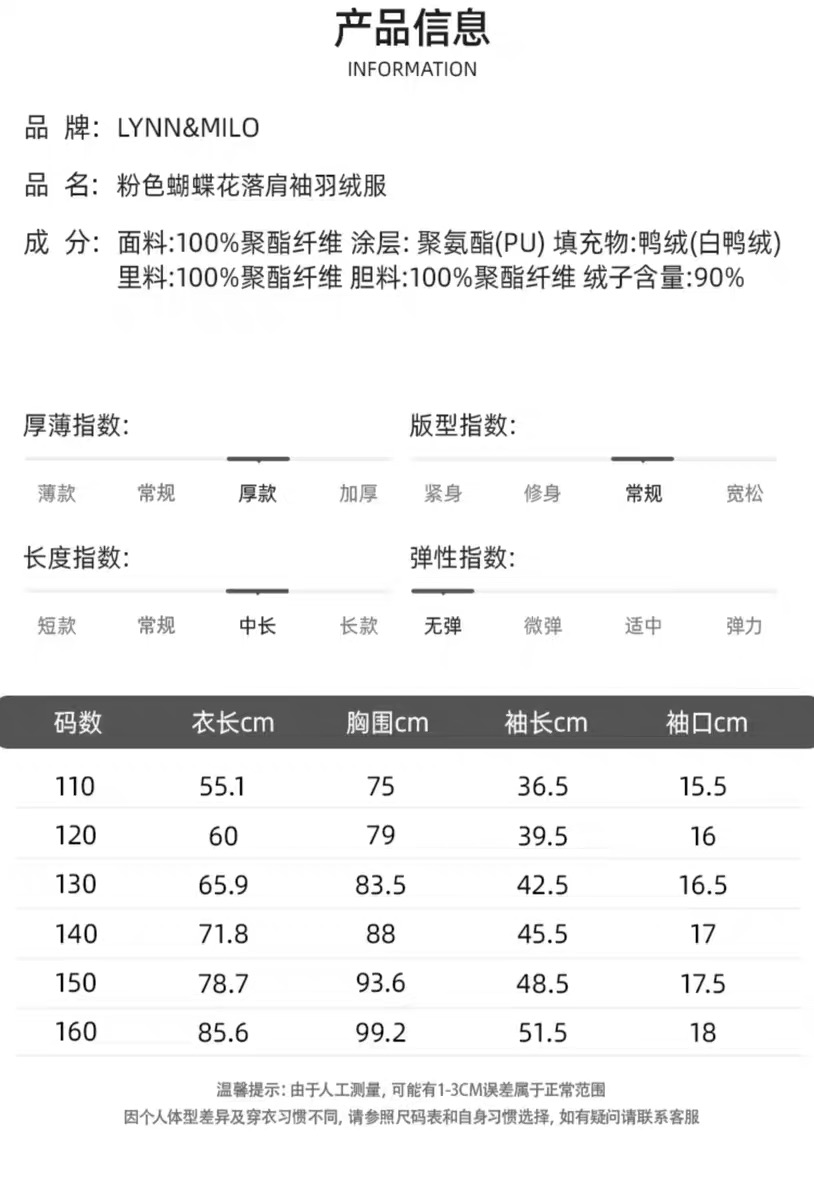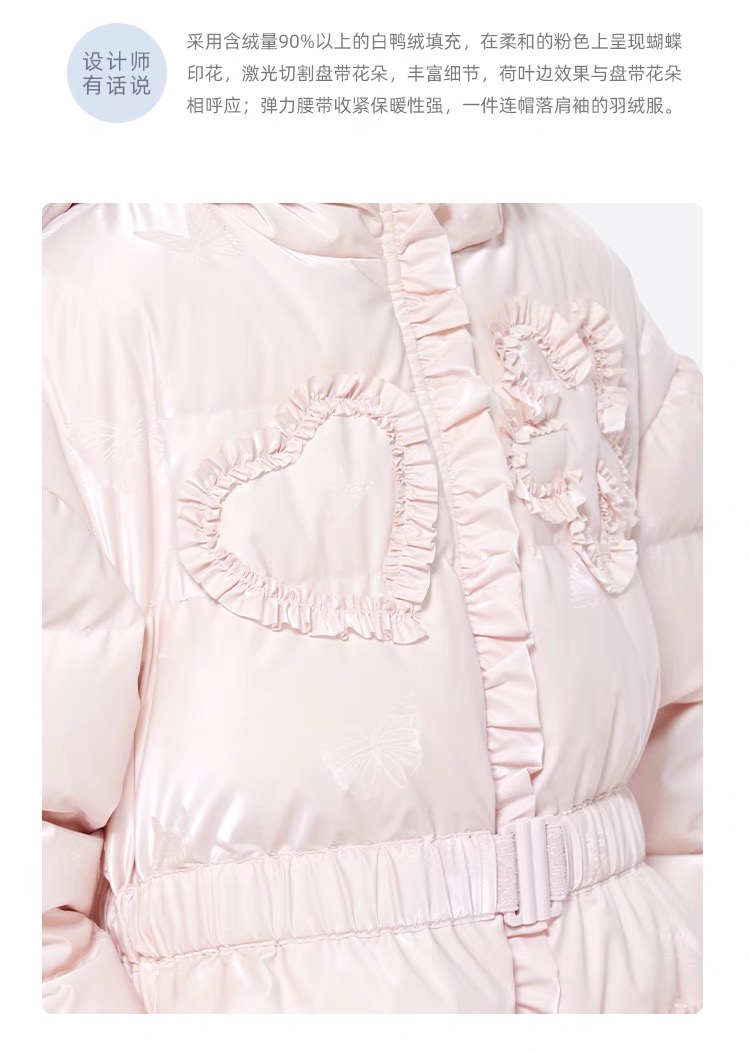 【春上新】【3.8折】8楼琳麦罗 LYNN&MILO粉色蝴蝶花落肩袖长款羽绒服 吊牌价:2098元 活动价:797元