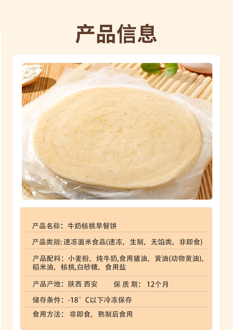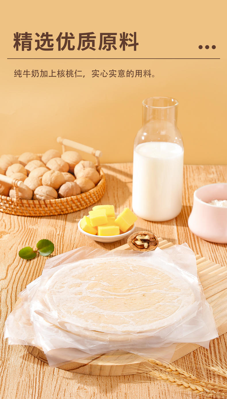 【产品口味】:葱油饼、梅干菜饼、全麦、原味、牛奶核桃味。