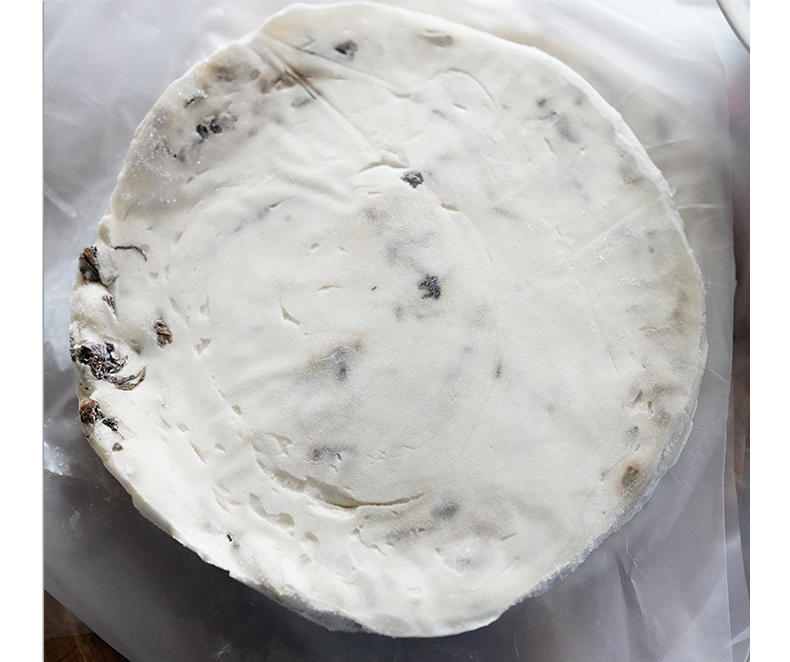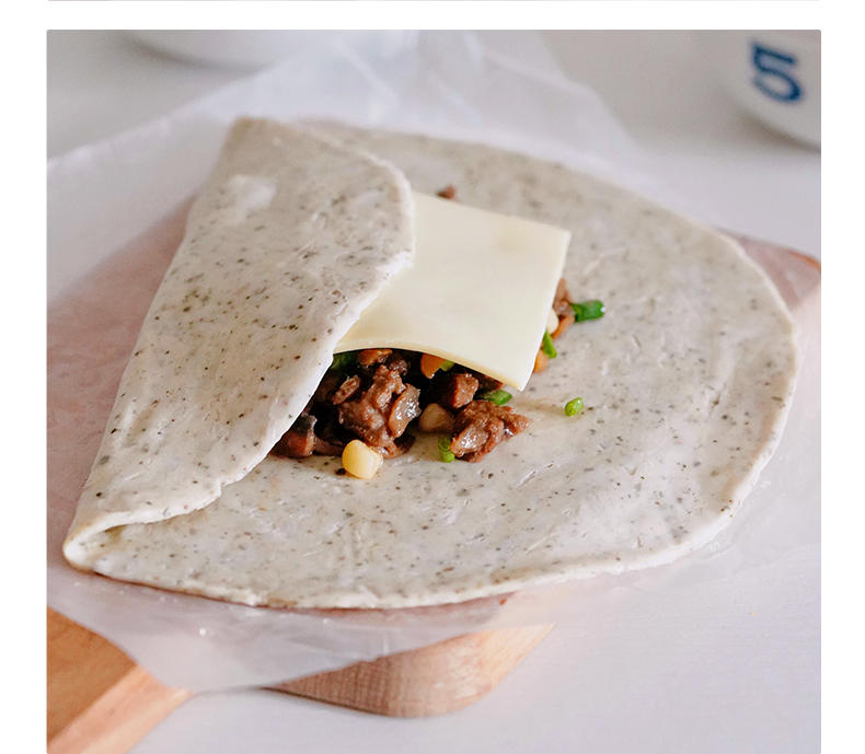从冰箱冷冻室拿出来,不要解冻,解冻了那层膜就不好撕,冷冻室拿出来,直接撕开膜,放入平底锅煎,原材料里有黄油和食用油,所以平底锅(不粘锅)可以不放油直接煎,比手抓饼要稍要稍微煎久一点