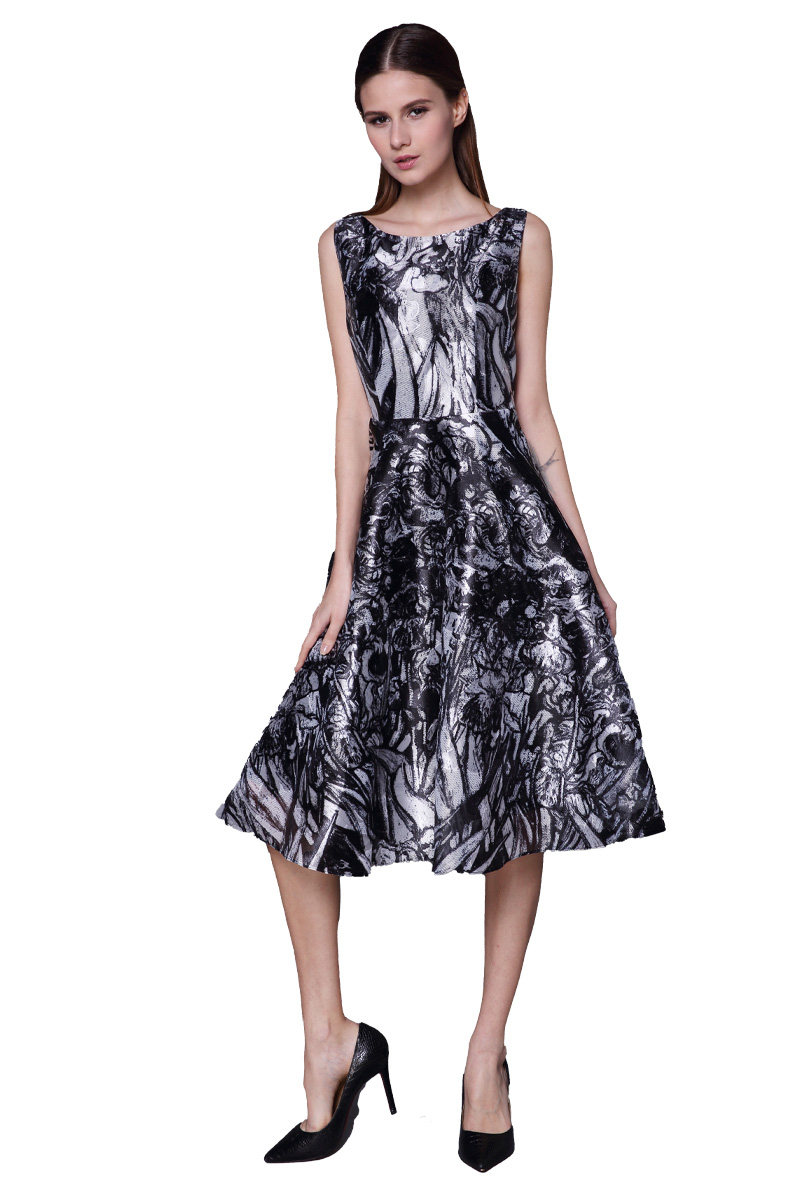 -162S195--黑色连衣裙《生命之美-梵高的花园》-麦田与太阳