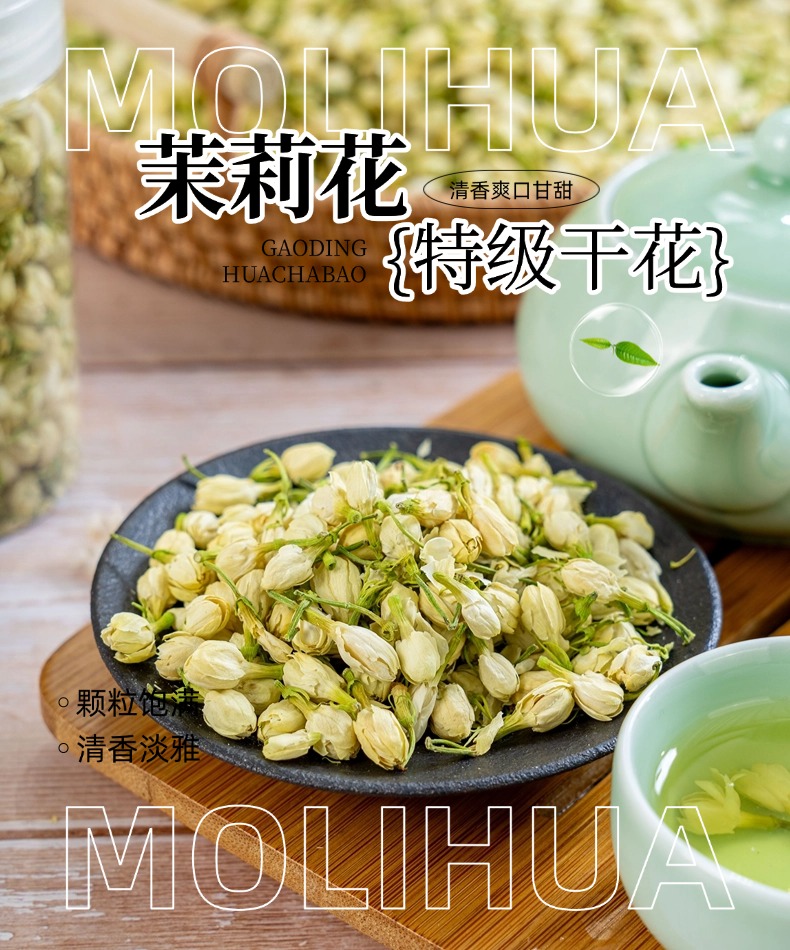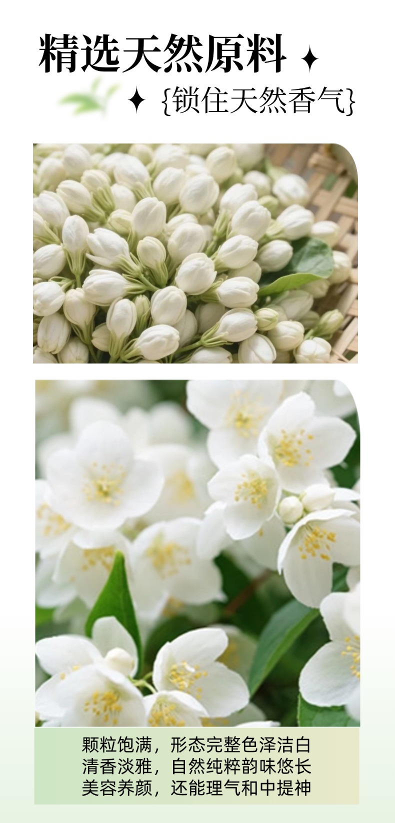 【茉莉花特级干花】没有一杯茉莉花茶的夏天是不完整的~ 夏日,蝉鸣未起 茉莉花那沁人心脾的香气,最初源自何处?微风拂过,洁白的茉莉以其独有的花香,开启了夏日的序章。