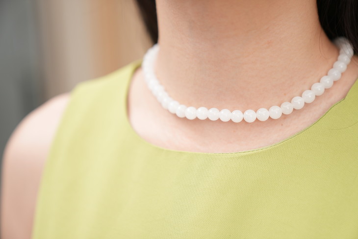 青海料以通透水润、结构细腻著称,近年市场认可度持续上升。这是就一条青海料的白玉项链,冰底,玉质通透干净,结构细腻均匀。冰冰凉凉的质感,很适合夏季。珠型饱满圆润,手感丝滑;颜色上,白度高,可以放在白纸上观察,几乎没有发灰偏色。