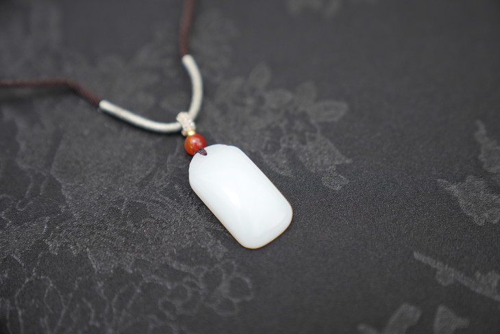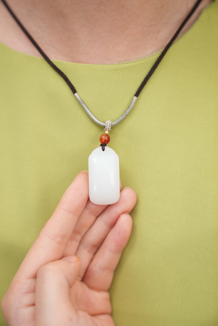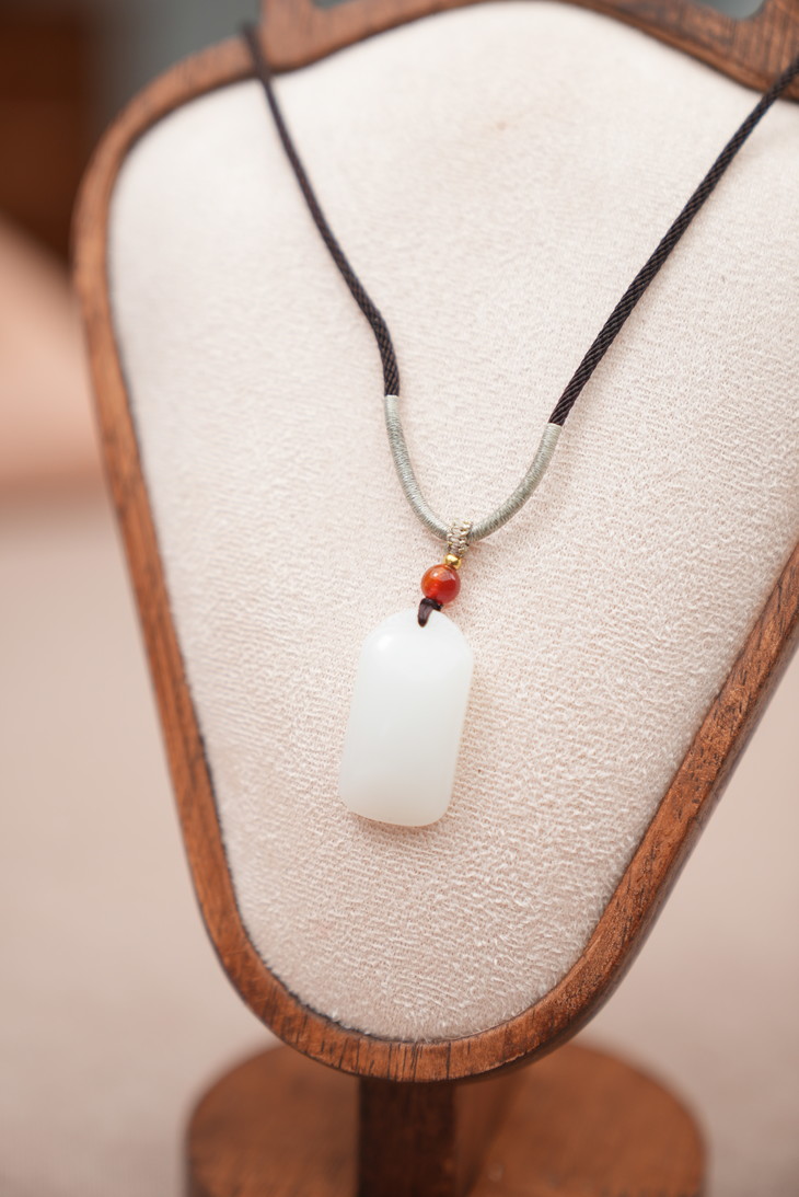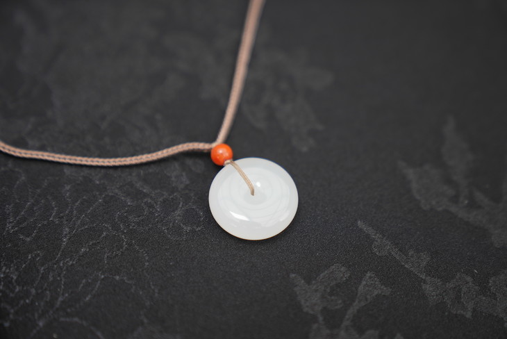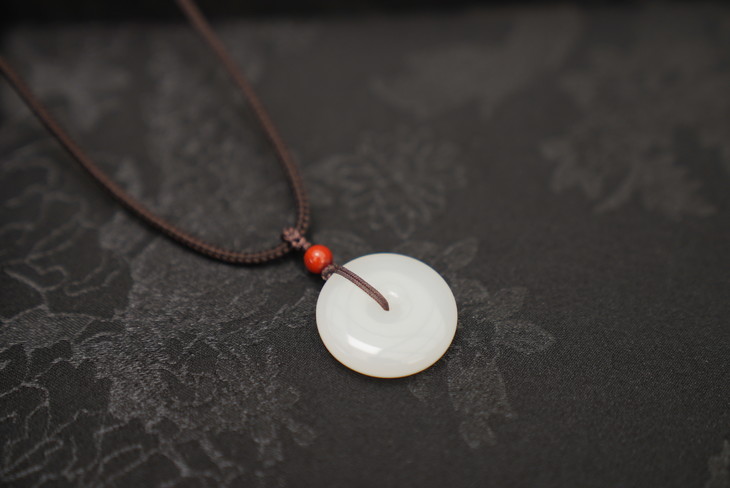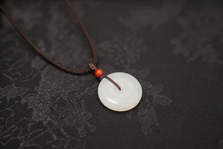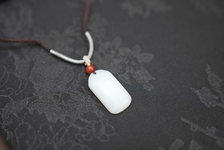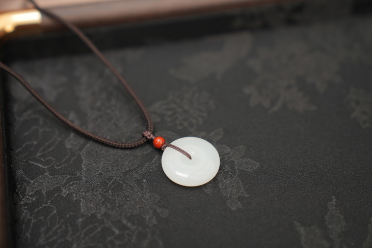 精选和田玉,打灯看结构均匀细腻;又油又亮,表面润且光滑,搭配深色编绳非常有古色古香的味道;白色偏冷调,同时也有着青海料的通透感。