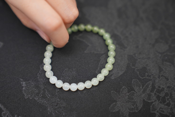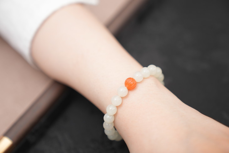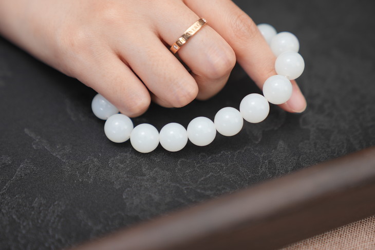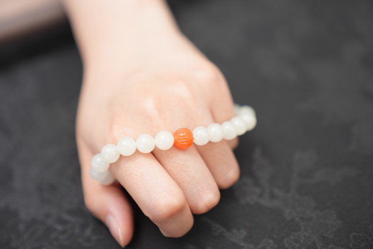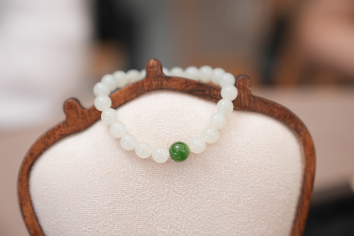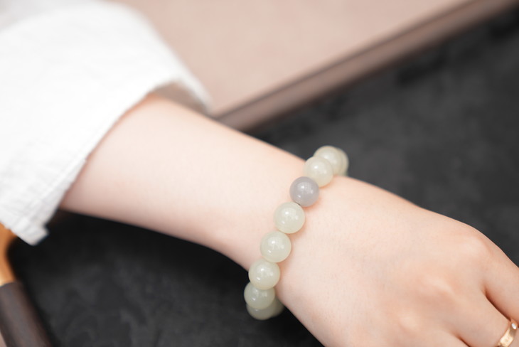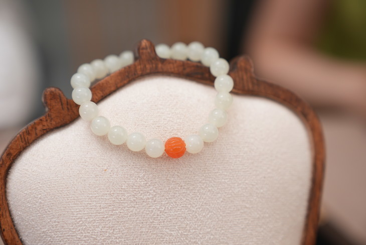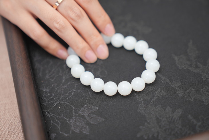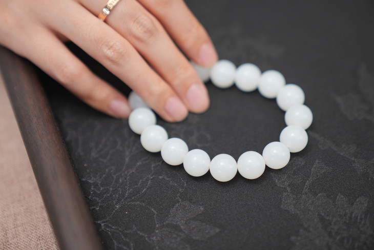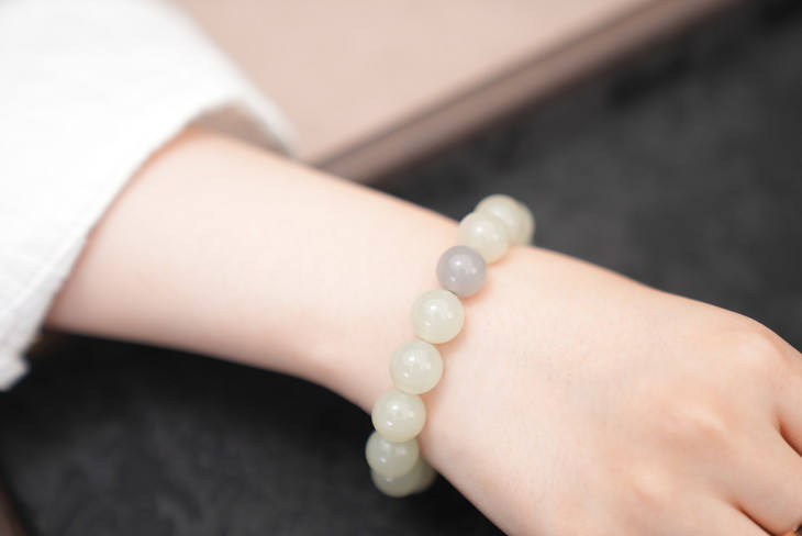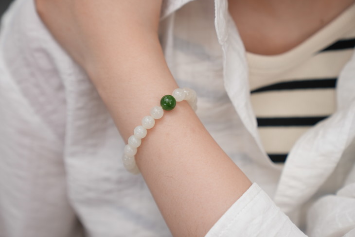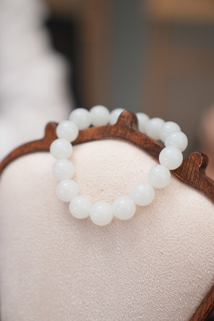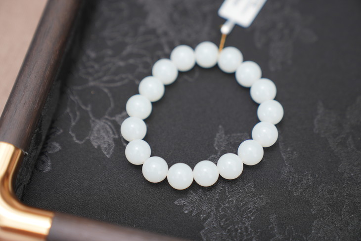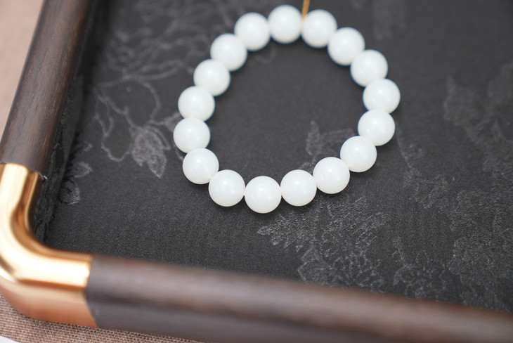 冰底和田玉珠,十分通透,水润而光泽好,颜色均匀干净,佩戴腕间,便是简单纯粹的美。
