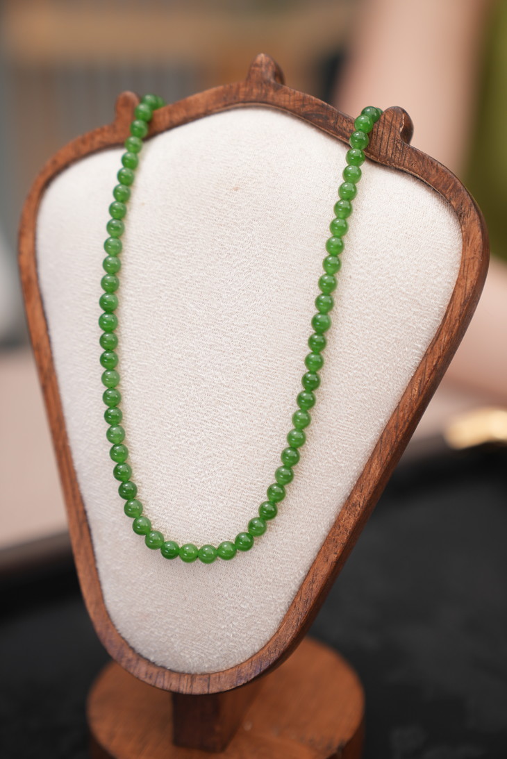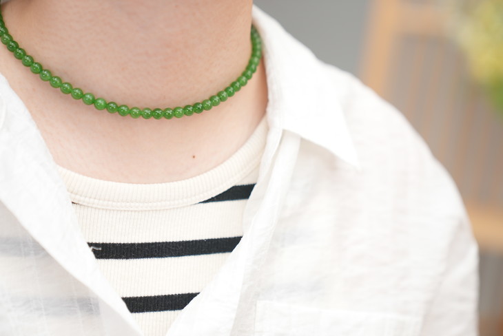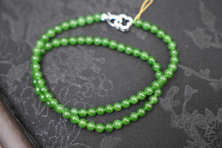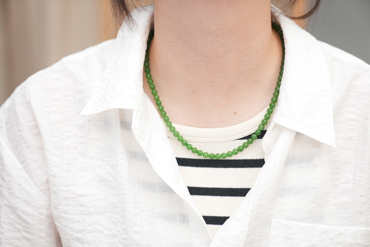 精选和田玉碧玉,鲜亮的绿色,活力满满;玉质细腻,肉眼下几乎结构,非常紧密;通透的质感,让每一颗玉珠都十分莹润;经典素链,简约百搭。
