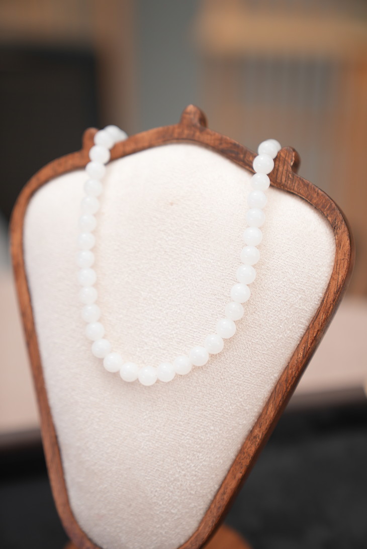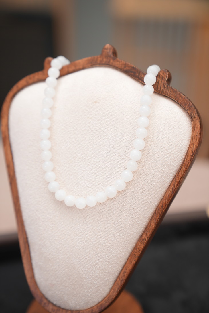 “白月光”素链款式,简约但不简单,白色更百搭、更清爽;8mm的珠子,大小适中,有着恰到好处的精致感和存在感。