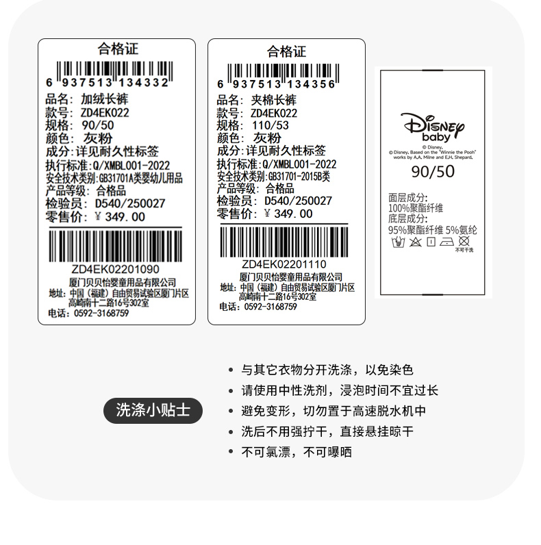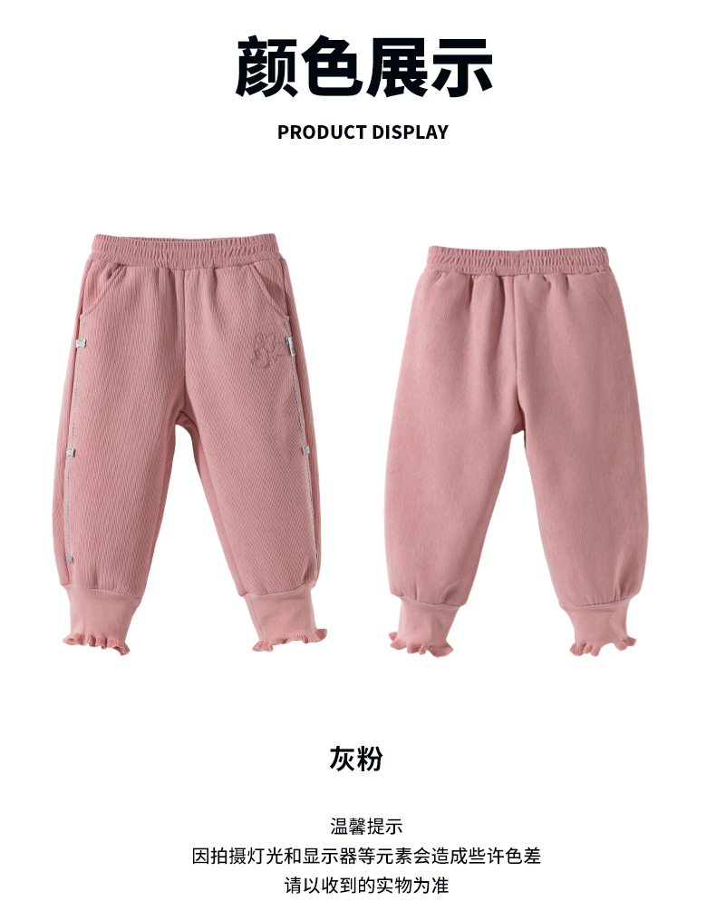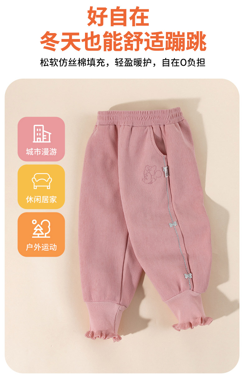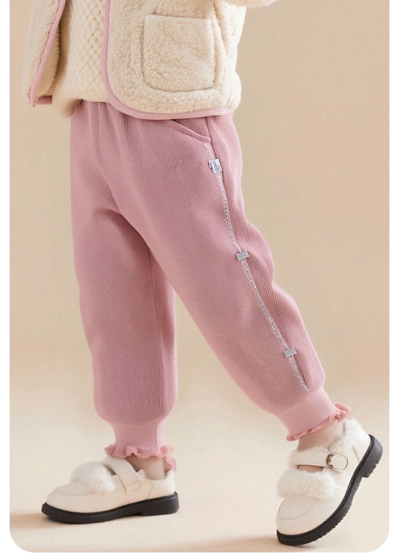 Disney Baby童装裤子加绒长裤粉色束脚保暖休闲裤冬季女童ZD4EK022