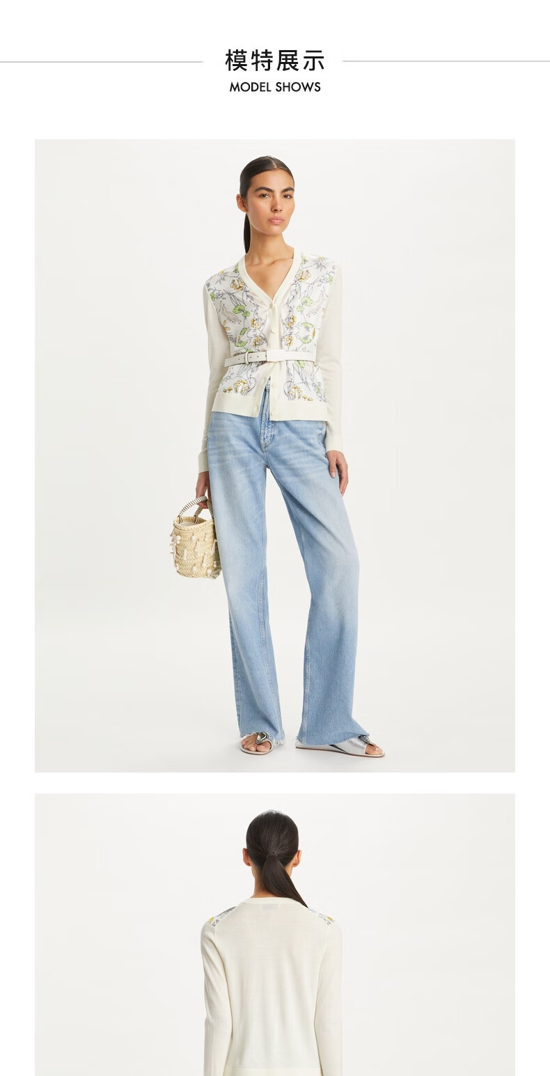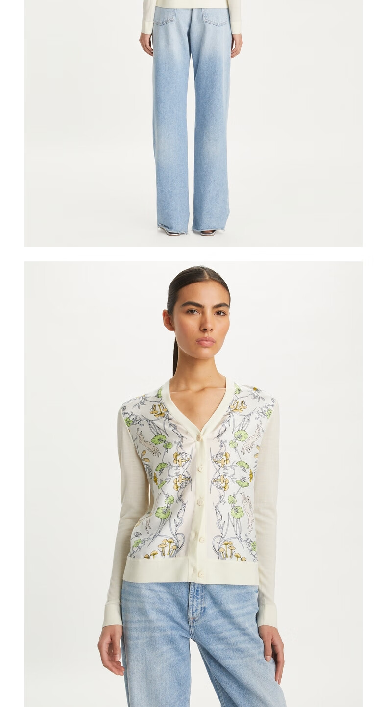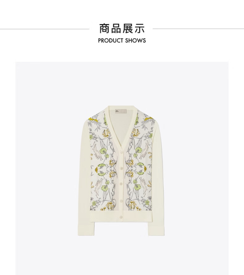【1F】Tory Burch 汤丽柏琦 撞色针织开衫TB 154441 象牙色/兔子田野图案