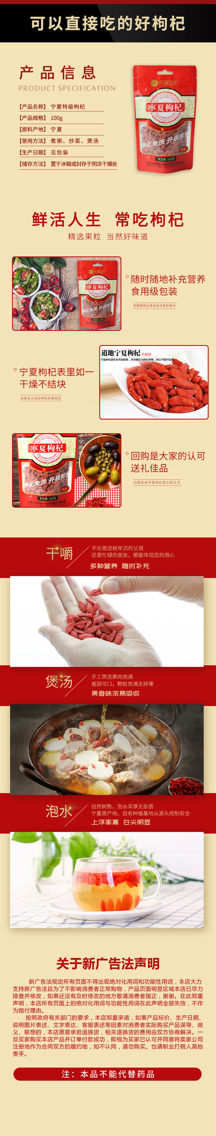 待用-【100g特级枸杞】沃福百瑞宁夏特级枸杞100g
