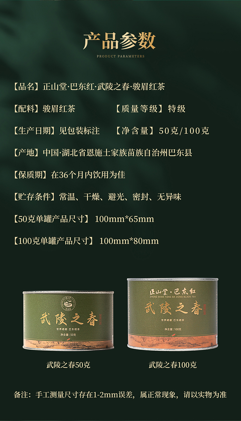 正山堂骏眉 巴东红·武陵之春贡茶 中国湖北特级红茶罐装茶叶50g/150g