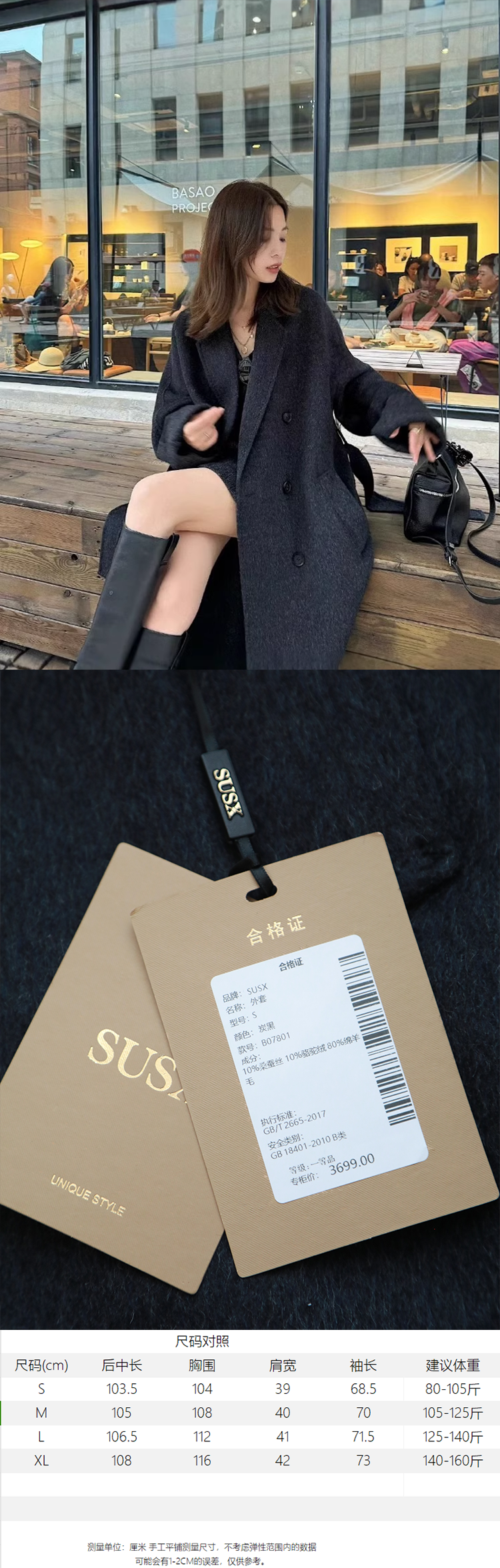 【M*x M*ra同款】SUSX纯色经典款大衣B07801(下单3-7天发货)