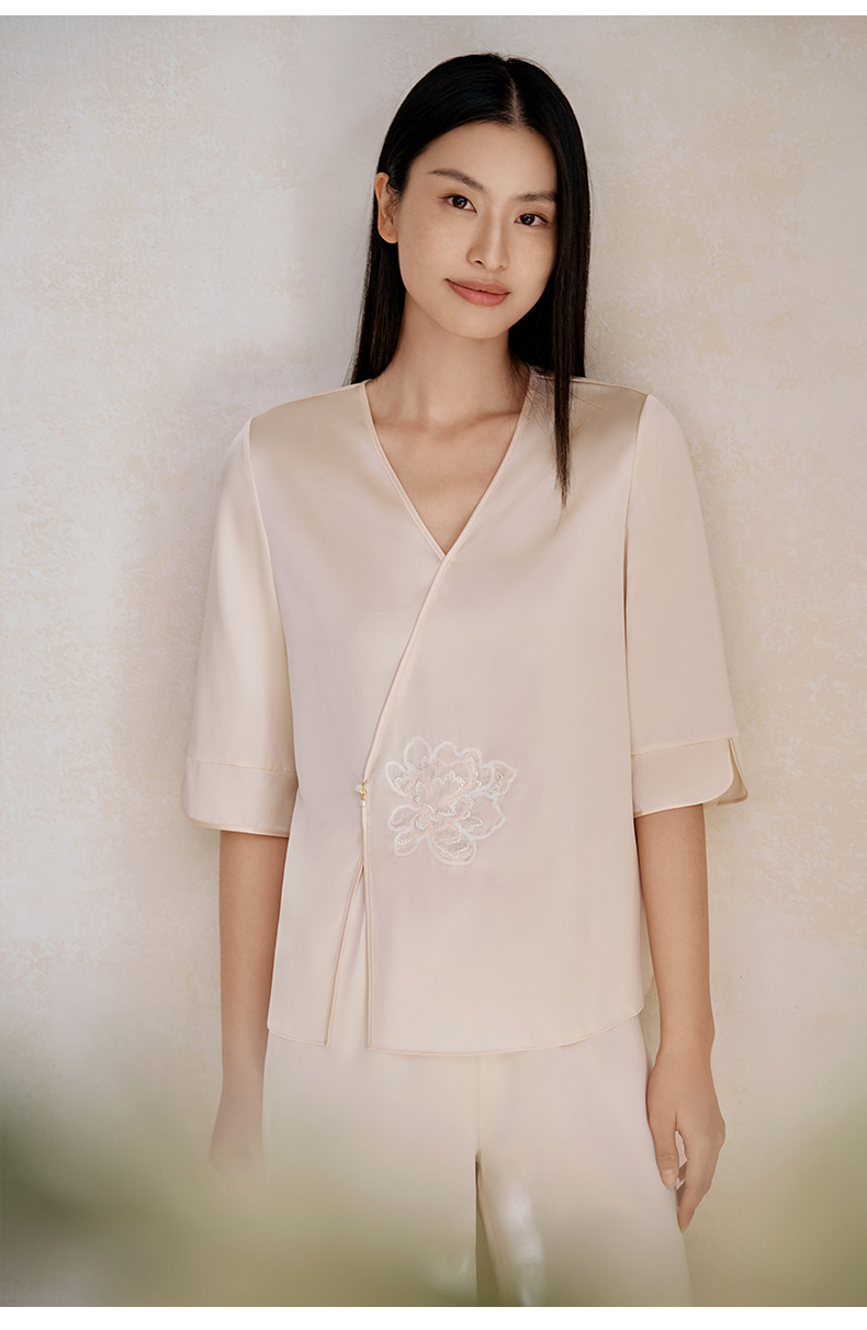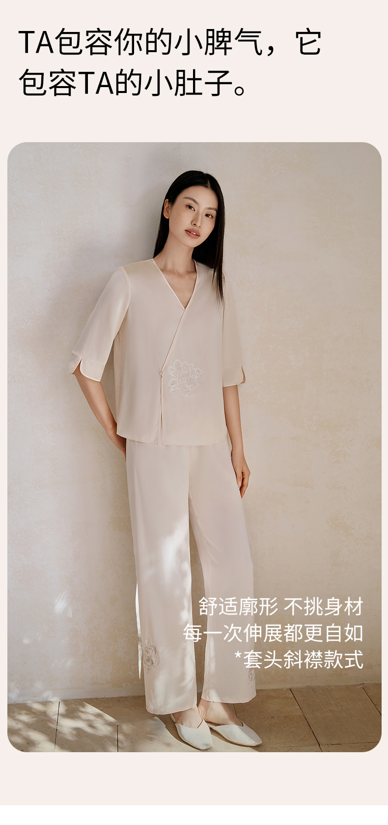 “TA”重磅真丝睡衣女100%桑蚕丝绣花宽松舒适家居服带礼盒金三塔 YSFFB201