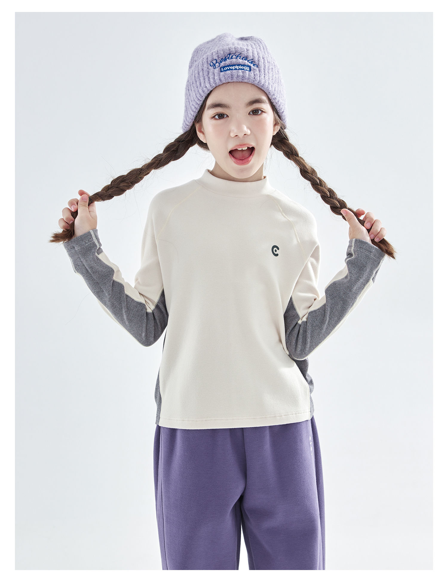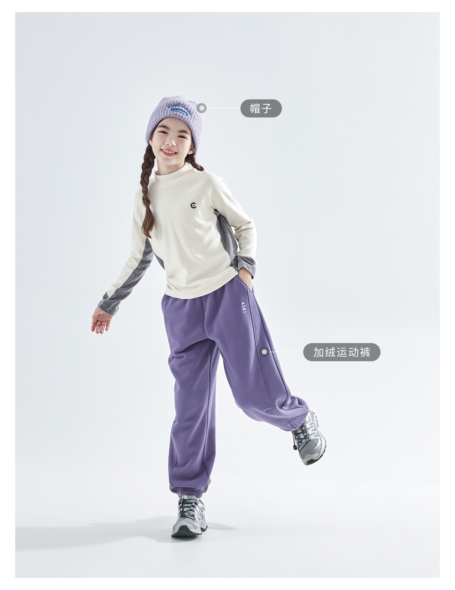 预售12.20发 cicochild25年秋冬新款亲子中大女童拼色打底衫轻暖高弹运动上衣