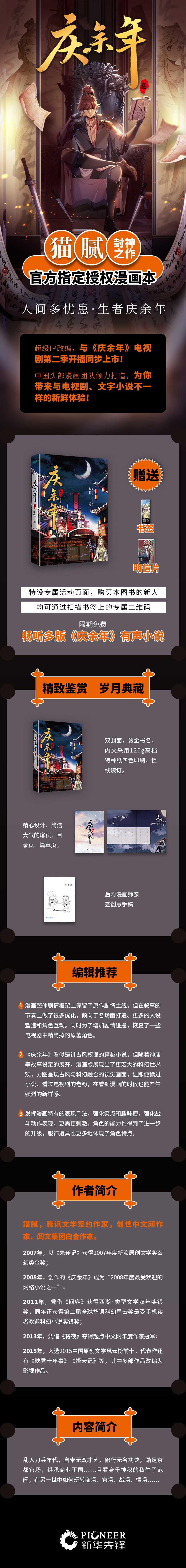 1.漫画整体剧情框架上保留了原作剧情主线,但在叙事的节奏上做了很多优化,倾向于名场面打造、更多的人设塑造和角色互动。同时为了增加剧情碰撞,恢复了一些电视剧中精简掉的原著角色。2.《庆余年》看似是讲古风权谋的穿越小说,但随着神庙等故事设定的展开,漫画版展现出了更宏大的科幻世界观,力图呈现古风与科幻融合的视觉画面,让即便读过小说、看过电视剧的老粉,在看到漫画的时候也能产生强烈的新鲜感。3.发挥漫画特有的表现手法,强化笑点和趣味梗,强化战斗动作表现,更爽更刺激。角色的能力也得到了进一步的升级,服饰道具也更多地体现了角色特点。4.精美双封面,书名烫金、内文精选高档特种纸彩色印刷!极具观赏和收藏价值。5.随书附赠官方授权限定版精美人物书签、明信片!