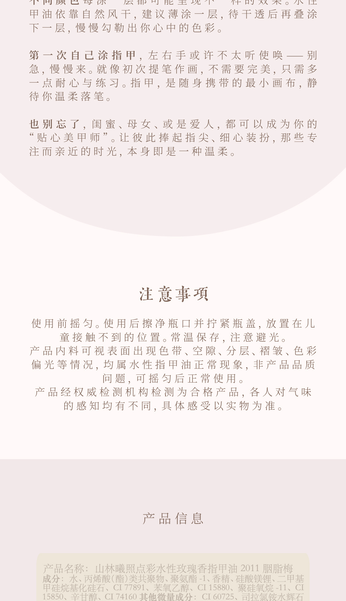 点彩水性玫瑰香指甲油 胭脂梅 透气免烤快干不含甲醛 山林曦照