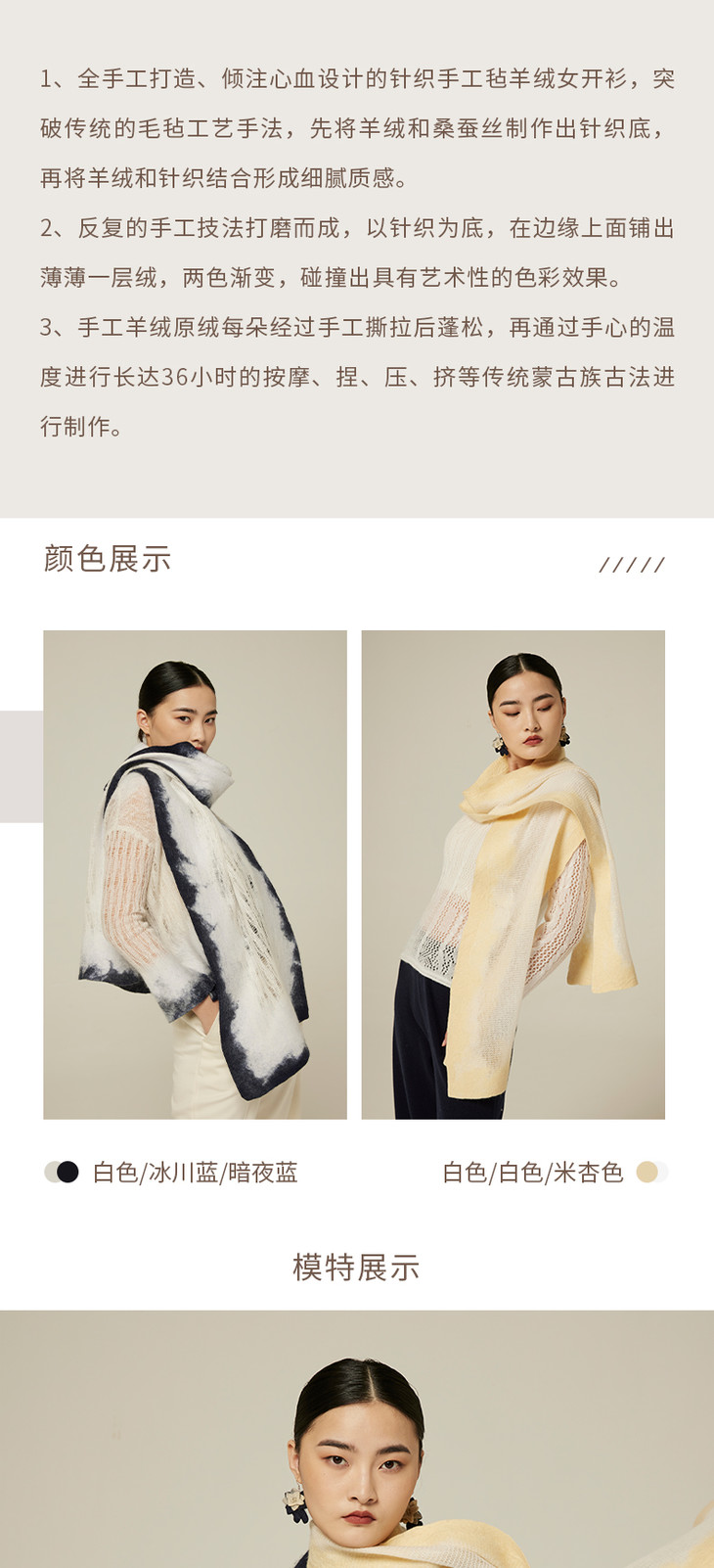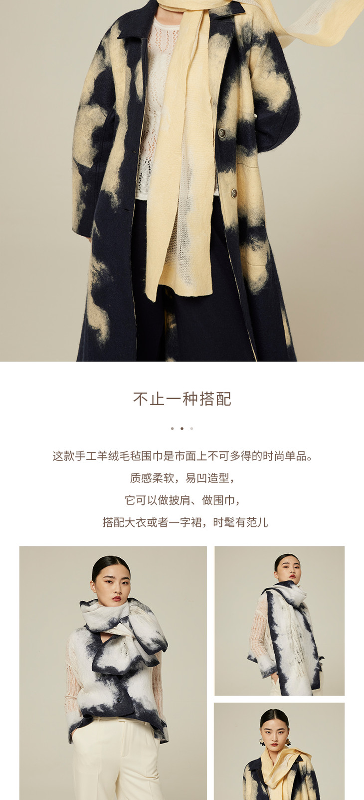 疗愈羊绒|针织羊绒桑蚕丝手工毛毡围巾 SJF94P297K
