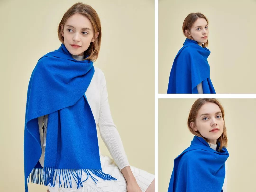 如海洋一般纯粹的蓝色围巾。你能在极其明显的水波纹纹路上看到“波光粼粼”的效果。