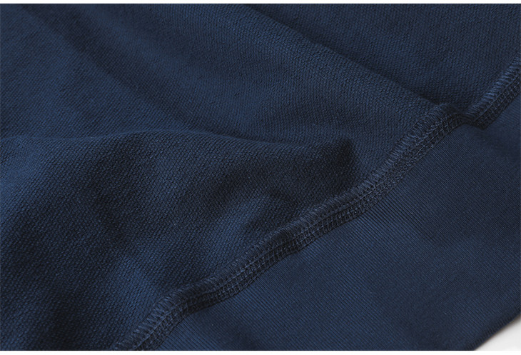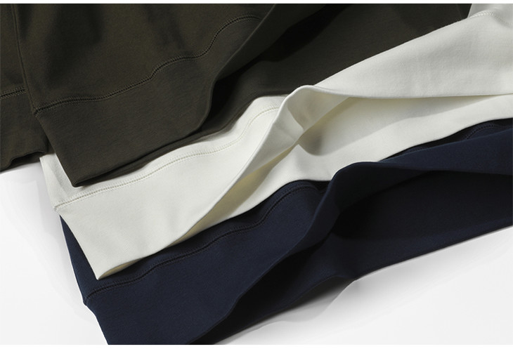 面料:采用100%顶级精梳棉,用OE纱工艺定制而成,硬挺复古风格,强烈的仿麻手感,面料结构紧密,克重330g以上。穿着非常舒适,保暖性能好。同时做了防缩水处理,不易变形,不会起球起毛。