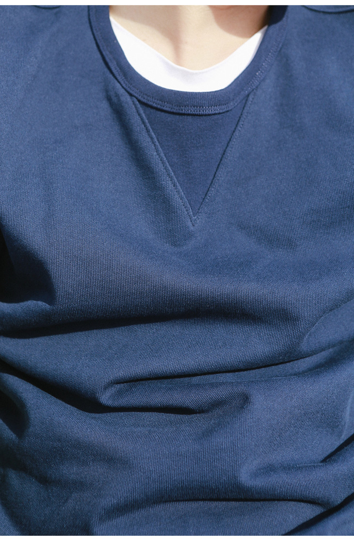 工艺细节:45度斜拉罗纹领弹性强,经得起反复穿脱。肩部车线做了加强处理,更适合运动。在袖口和下摆处衣身与罗纹相接的地方,采用传统的哈苏线车法进一步加强,使其更加平整、牢固。