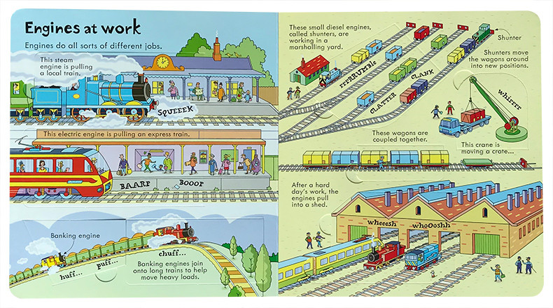 From traditional steam trains to super-fast bullet trains, this fact-filled information book allows children to look inside locomotives and find out how they work. Young readers can lift-the-flaps to discover fun facts and find out about the history of train travel.