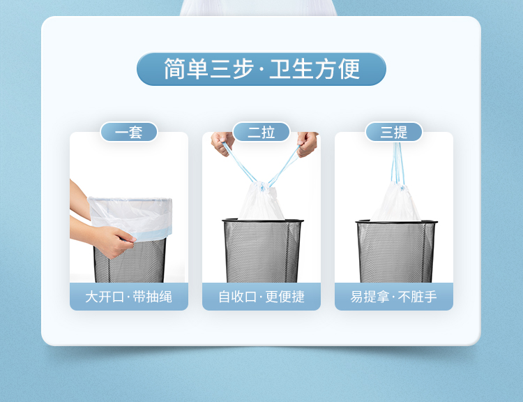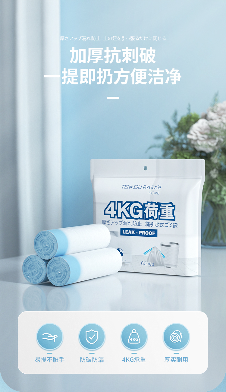 【量贩组合】TENKOU抽绳式垃圾袋3卷/件