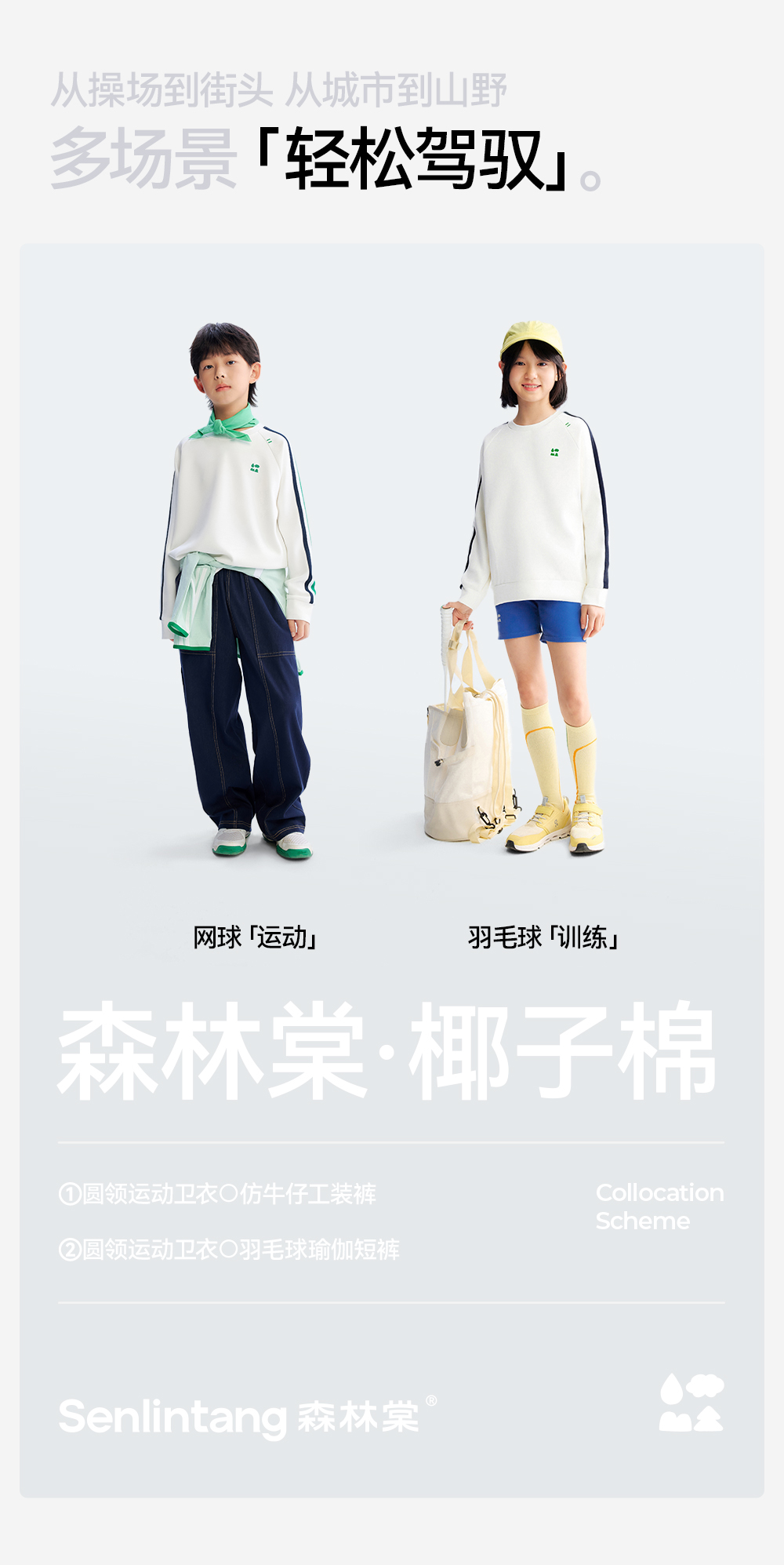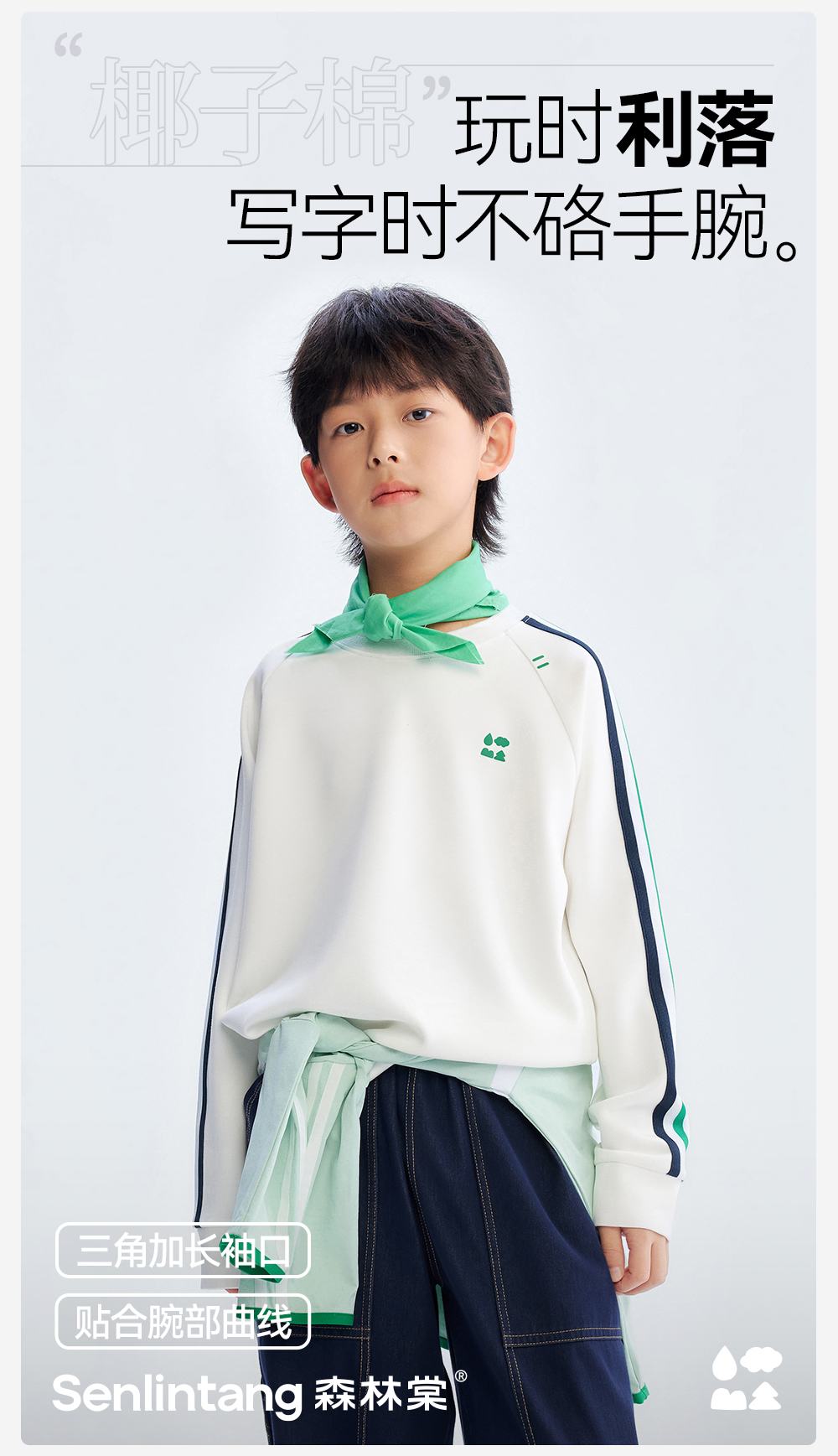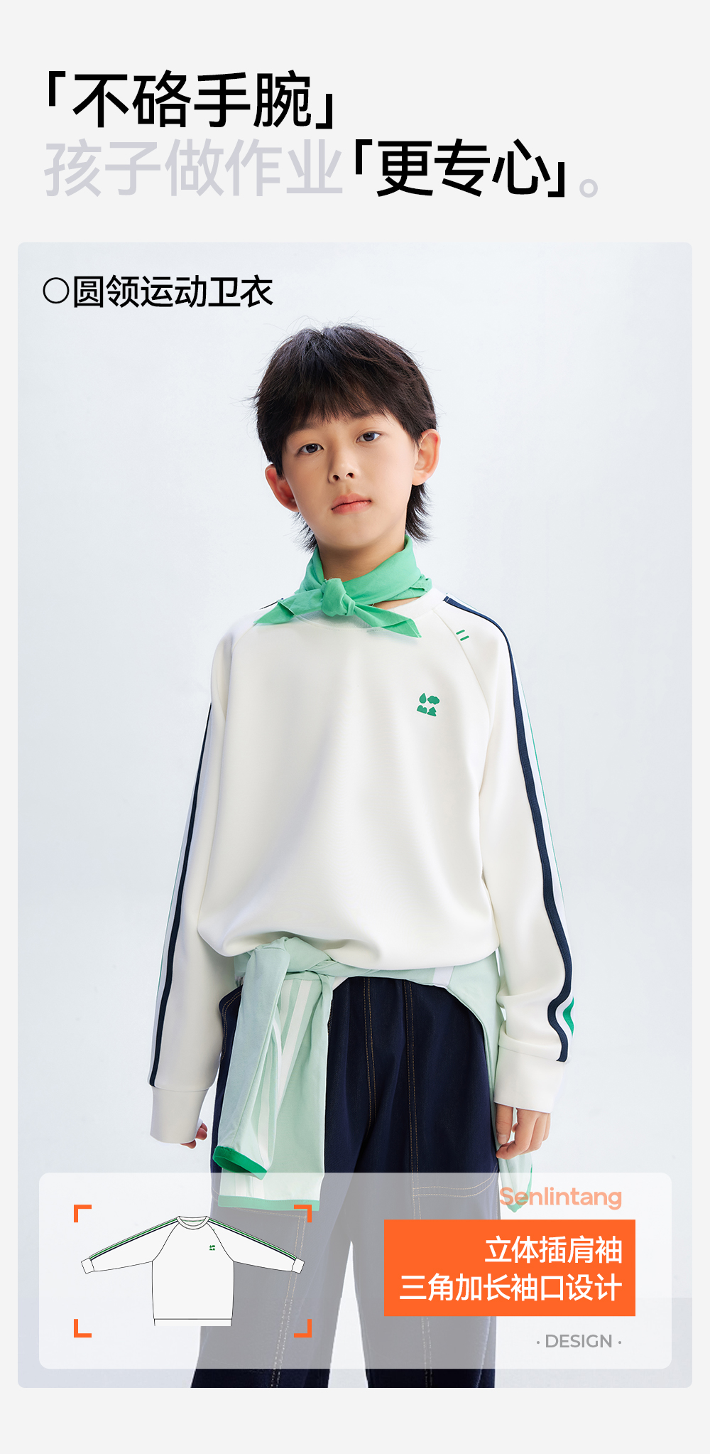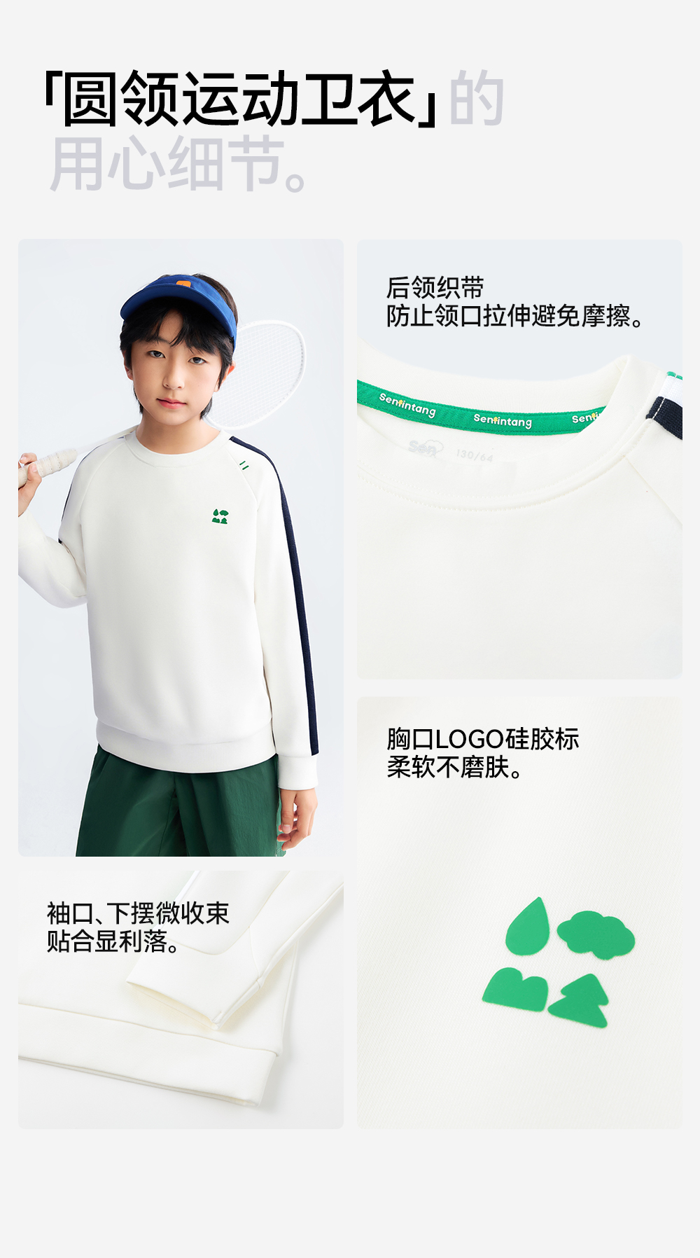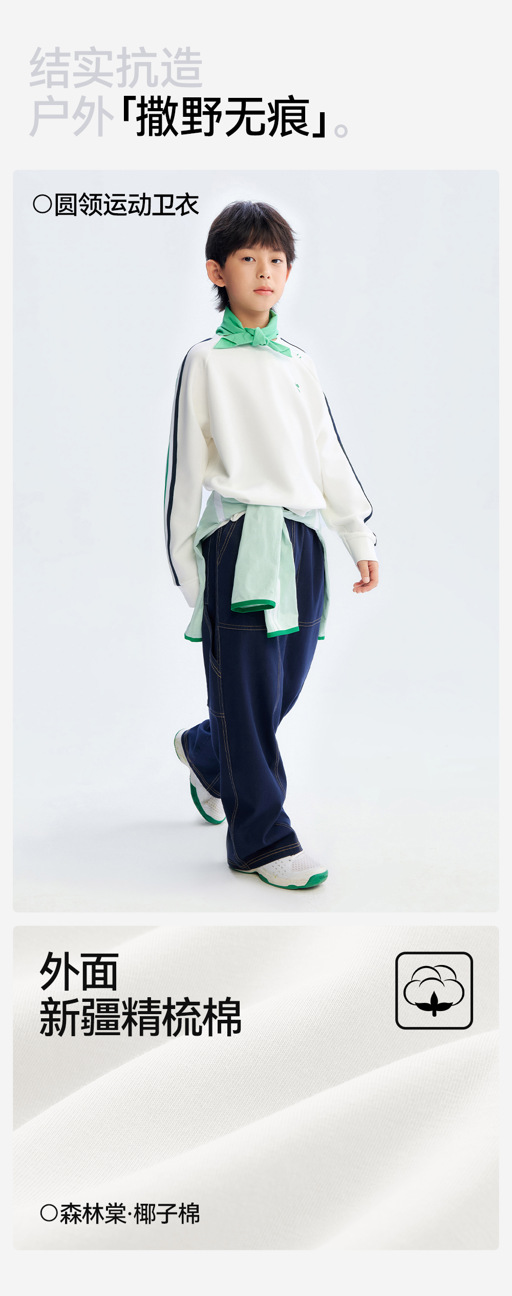 [屁侠推荐]圆领运动卫衣 森林棠26春 椰子棉轻盈软滑插肩袖儿童卫衣20361173