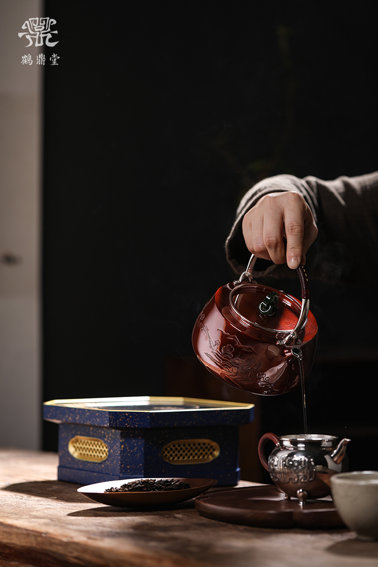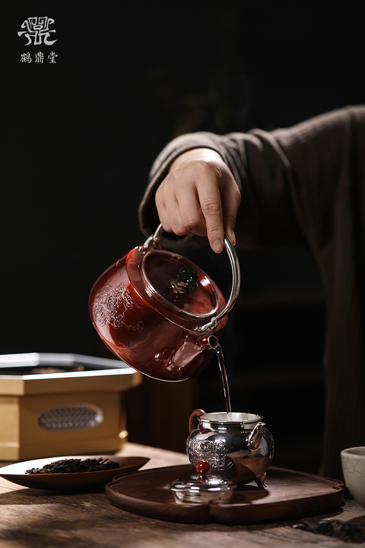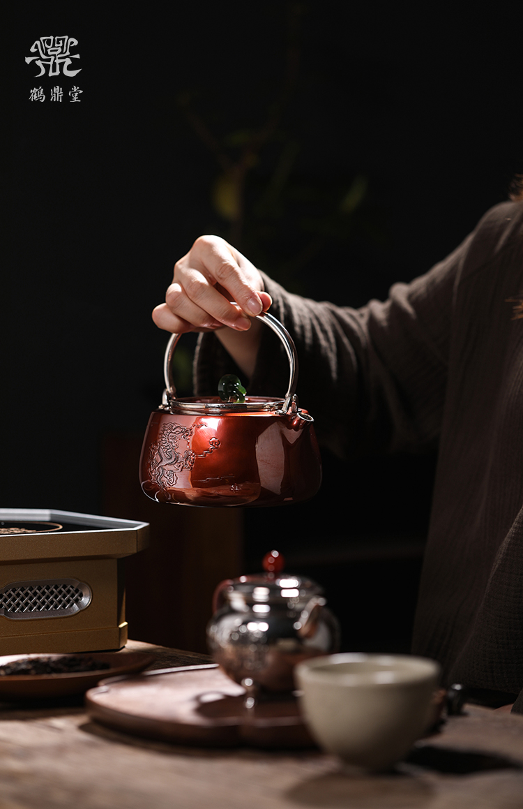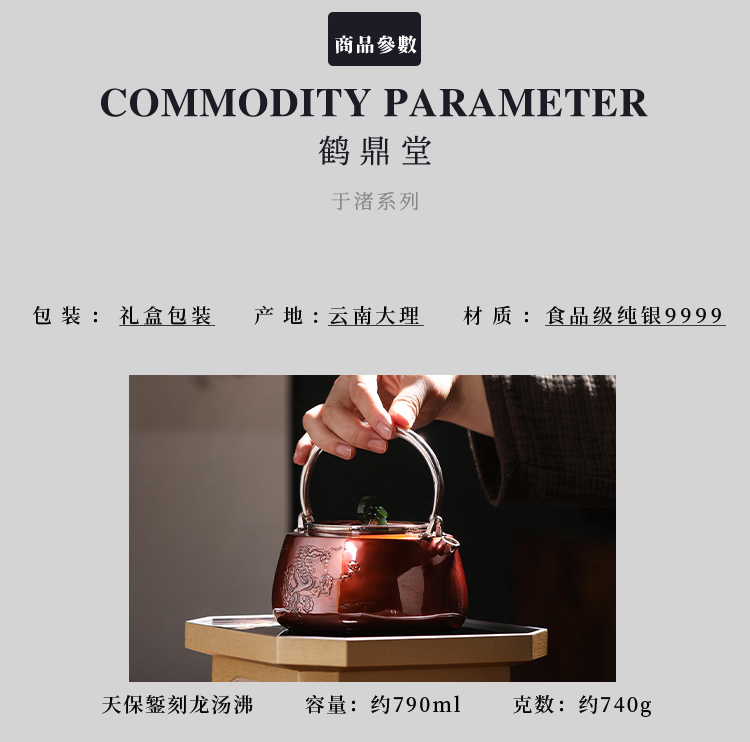 鹤鼎堂银壶于渚系列天保錾刻龙诗句汤沸(缺货)
