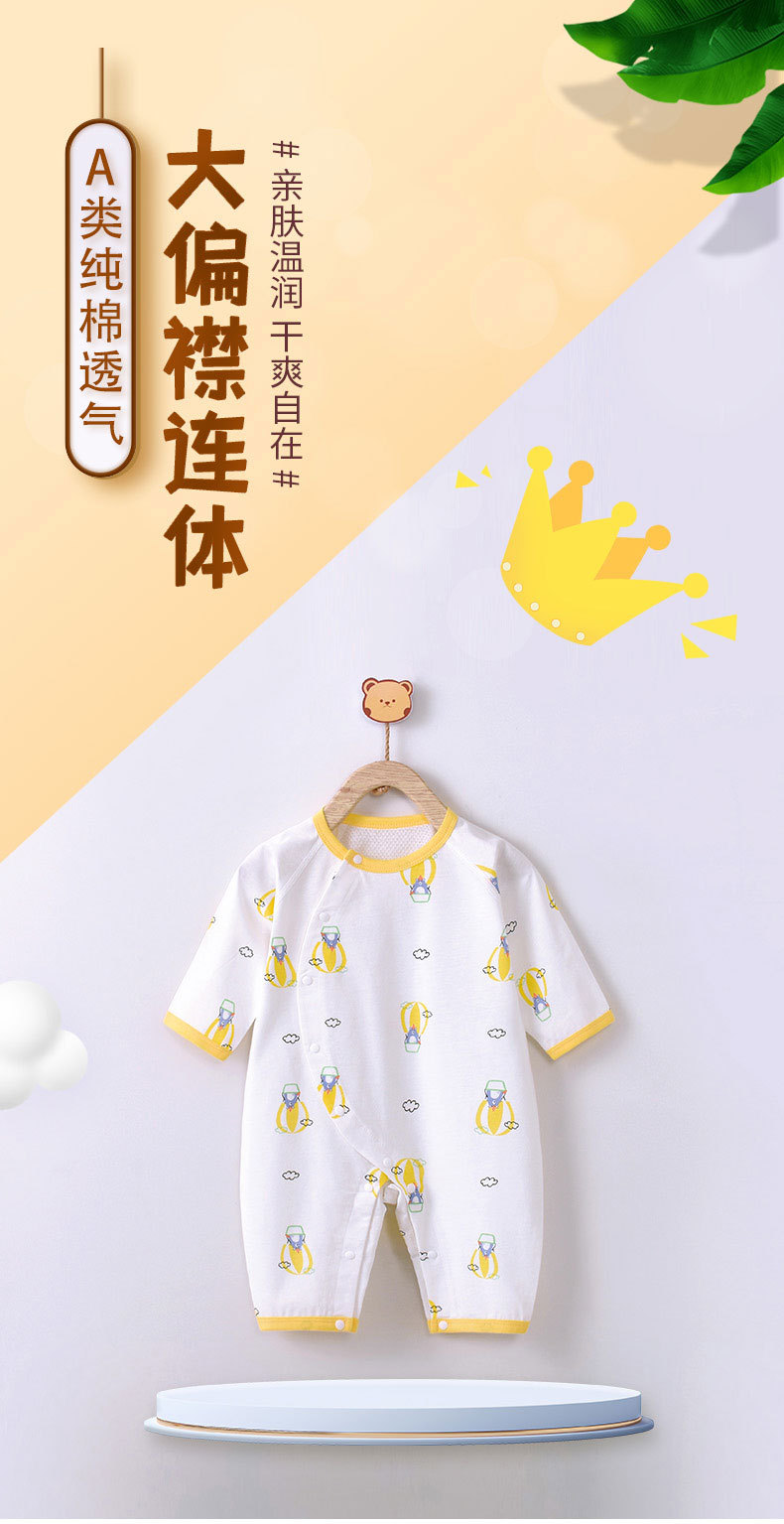 【纯棉透气大偏襟连体衣】宝宝衣服空调服婴儿连体衣纯棉新生儿哈衣夏装睡衣春装外出爬爬服