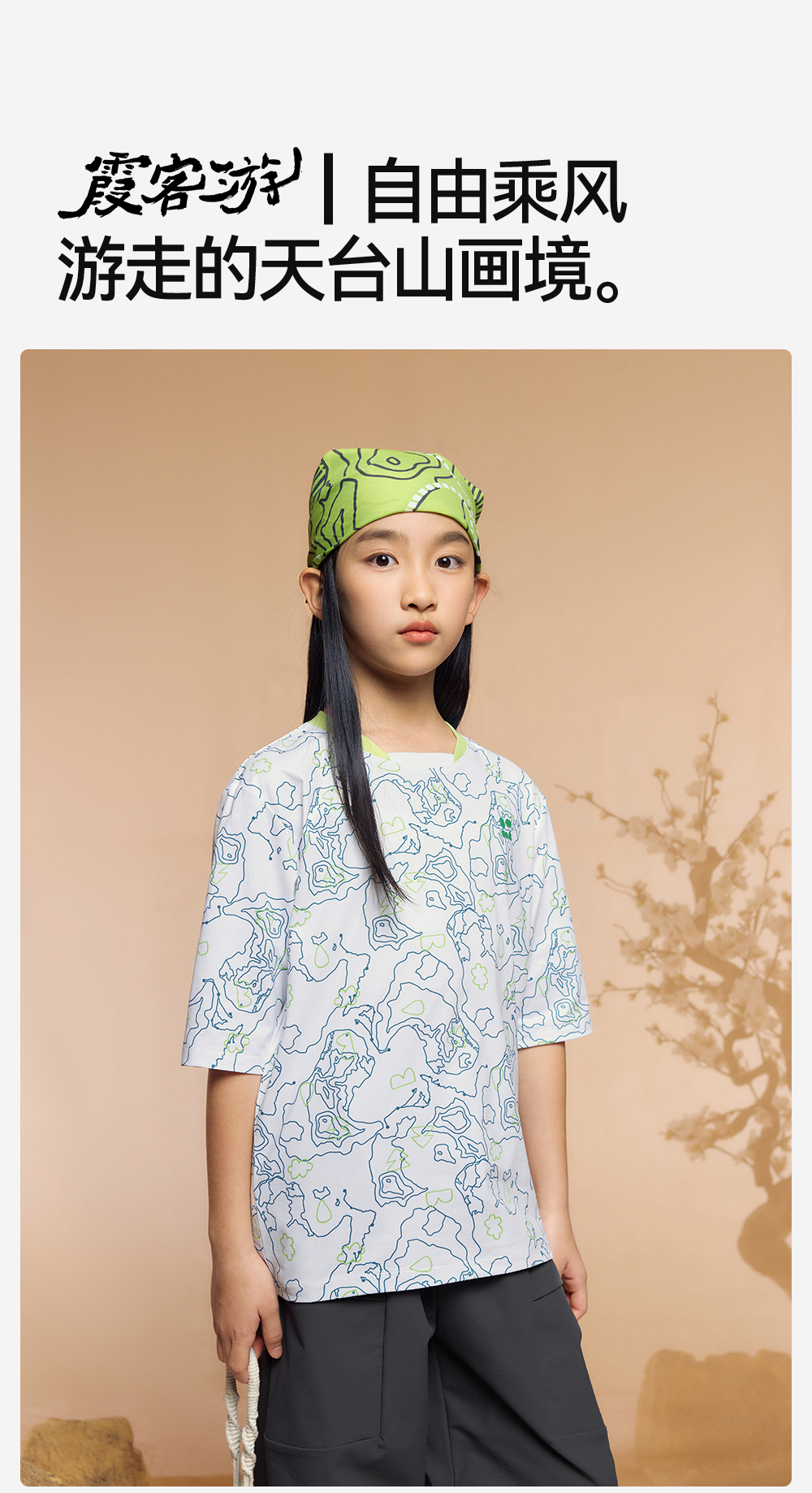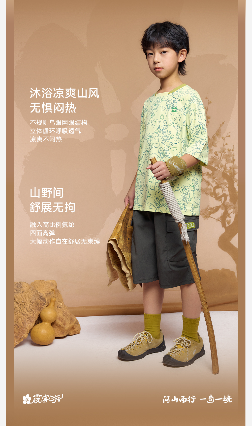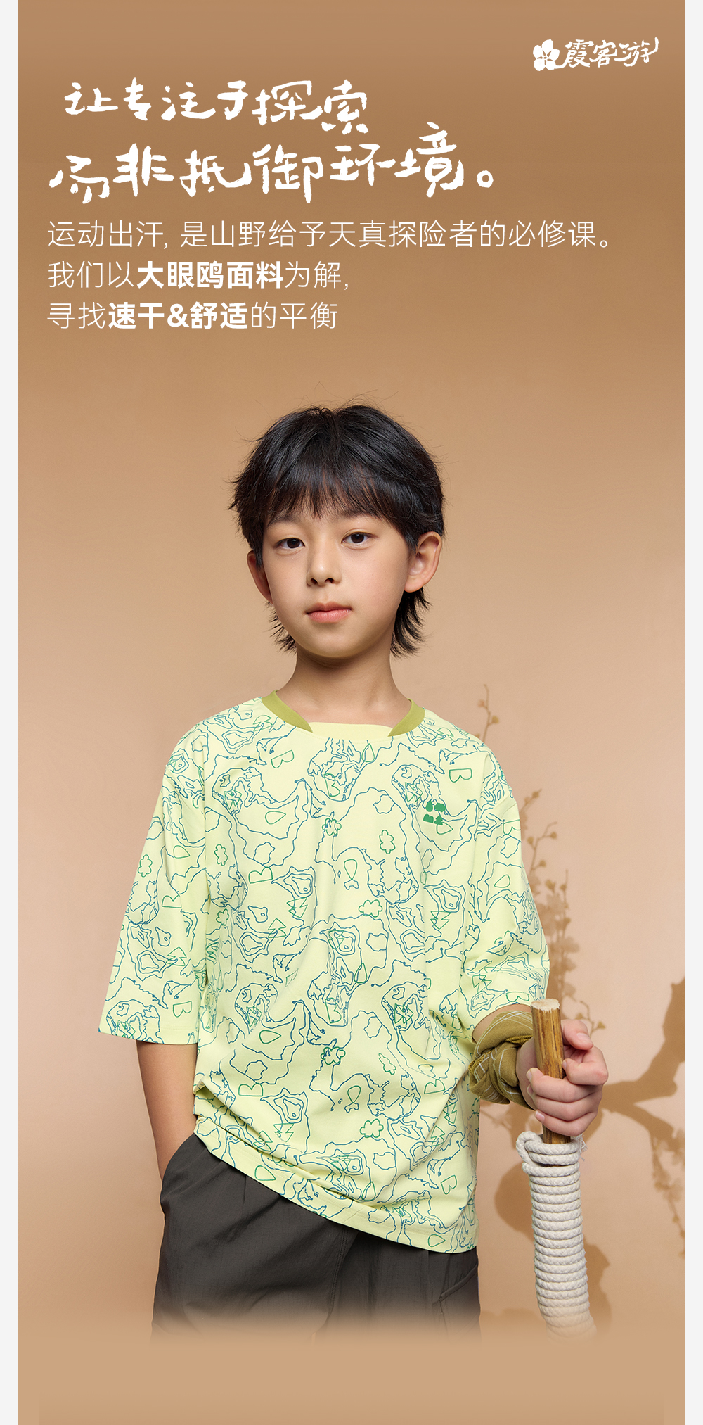 【满印速干山系短袖】森林棠26夏款鸟眼透气霞客游休闲儿童圆领T恤40162369