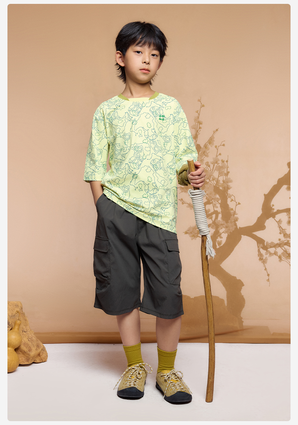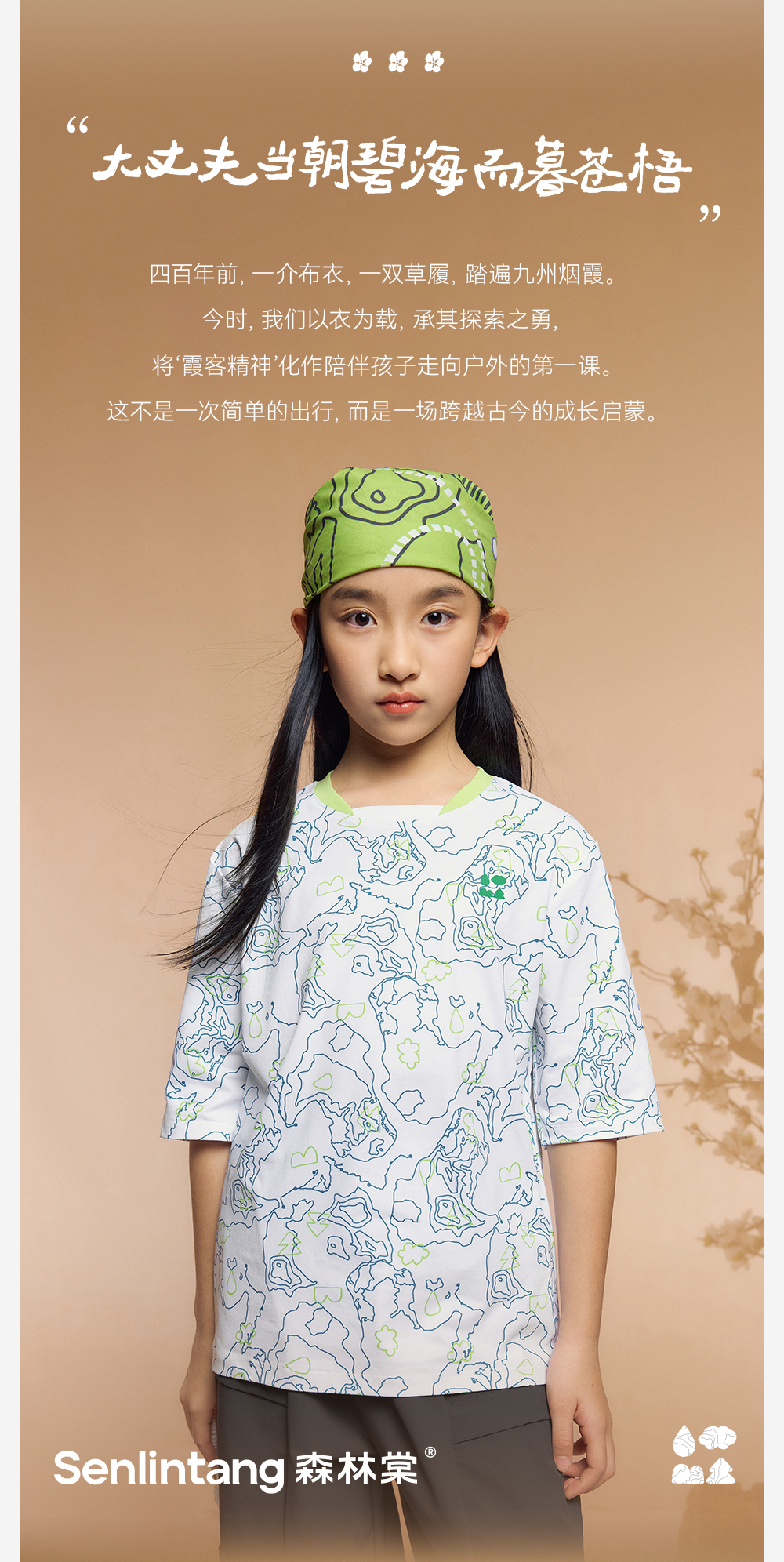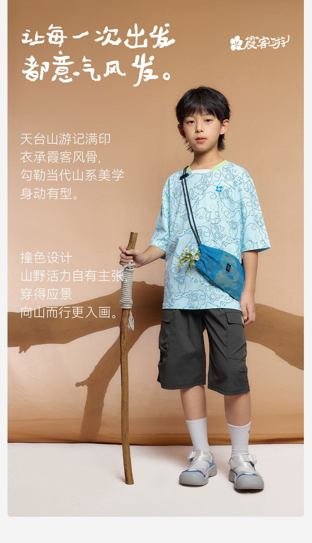 【满印速干山系短袖】森林棠26夏款鸟眼透气霞客游休闲儿童圆领T恤40162369
