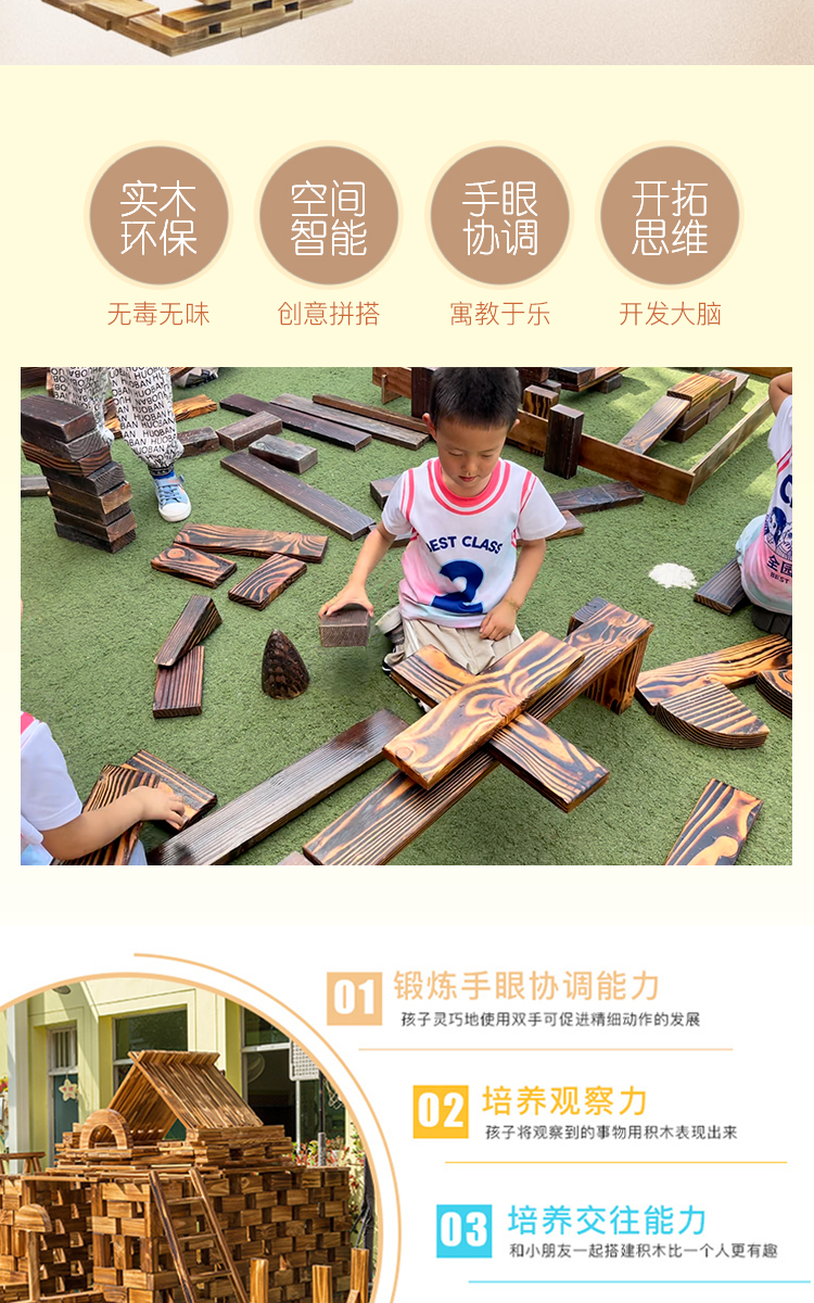 园长之家户外大型炭烧积木 碳烧积木幼儿园户外搭建木头1078块