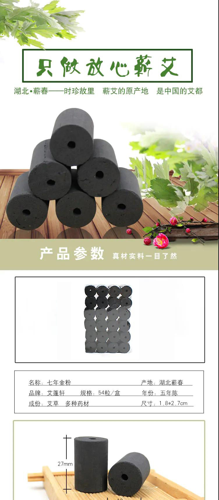 野生蕲艾 无烟艾柱 易燃不黑手 54粒/板包邮