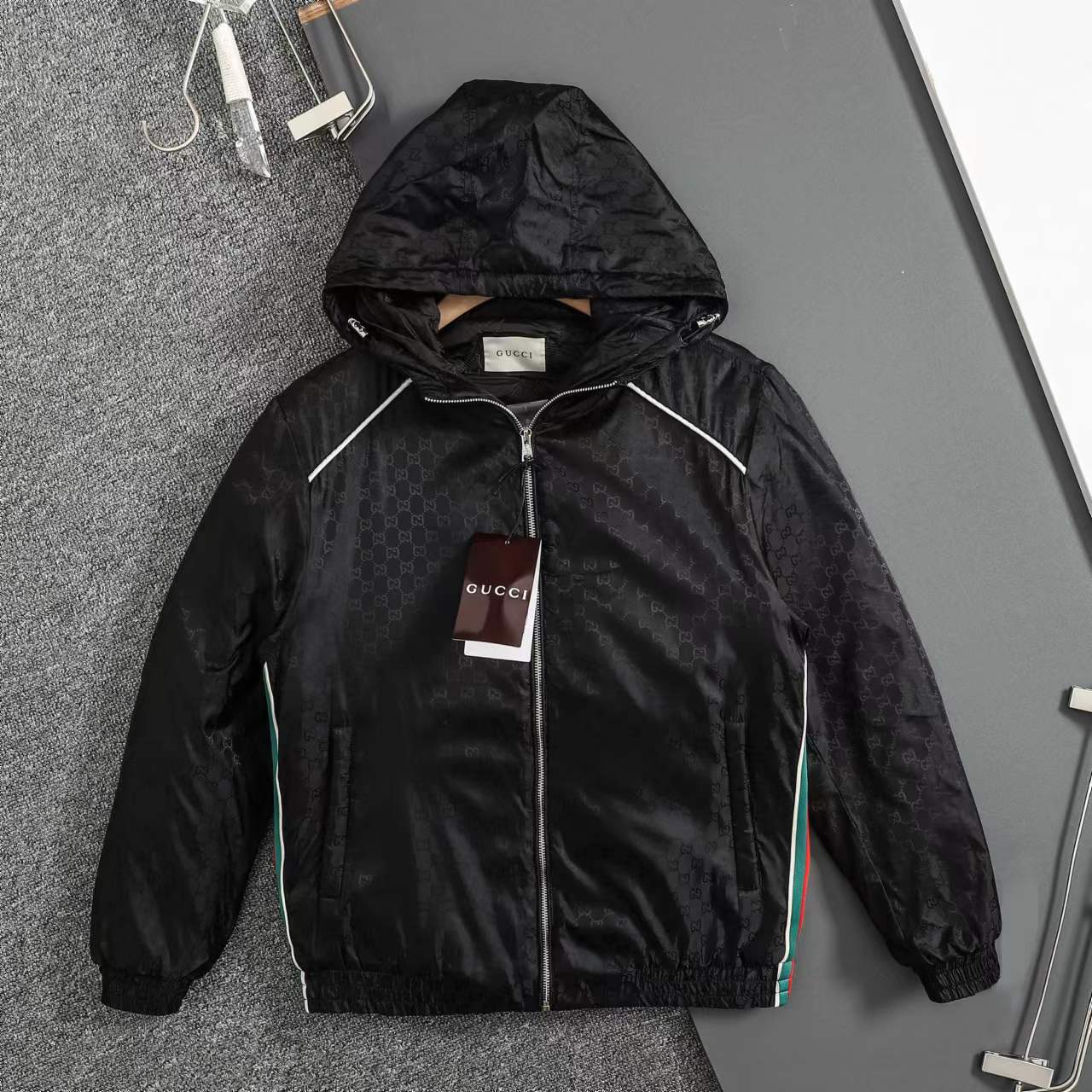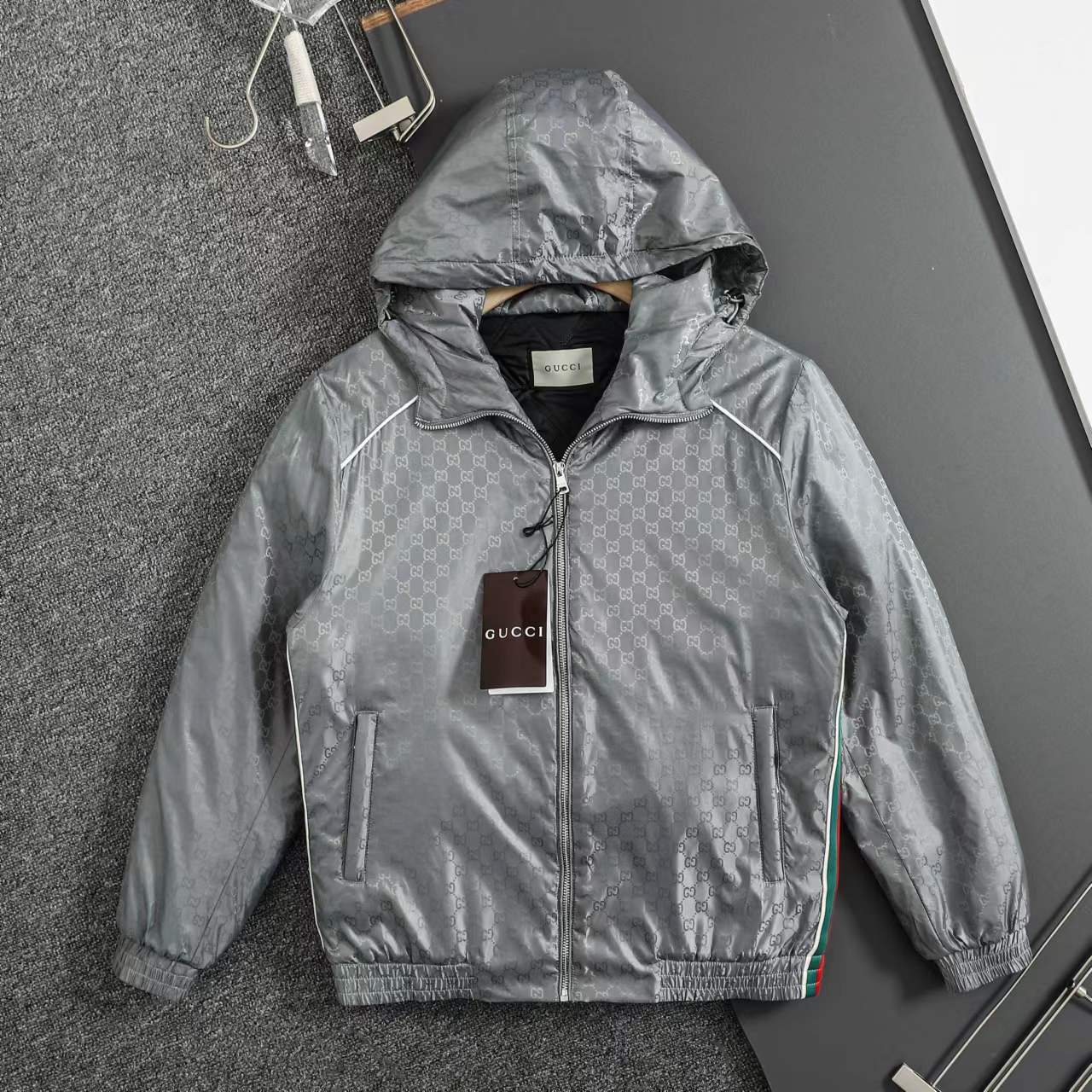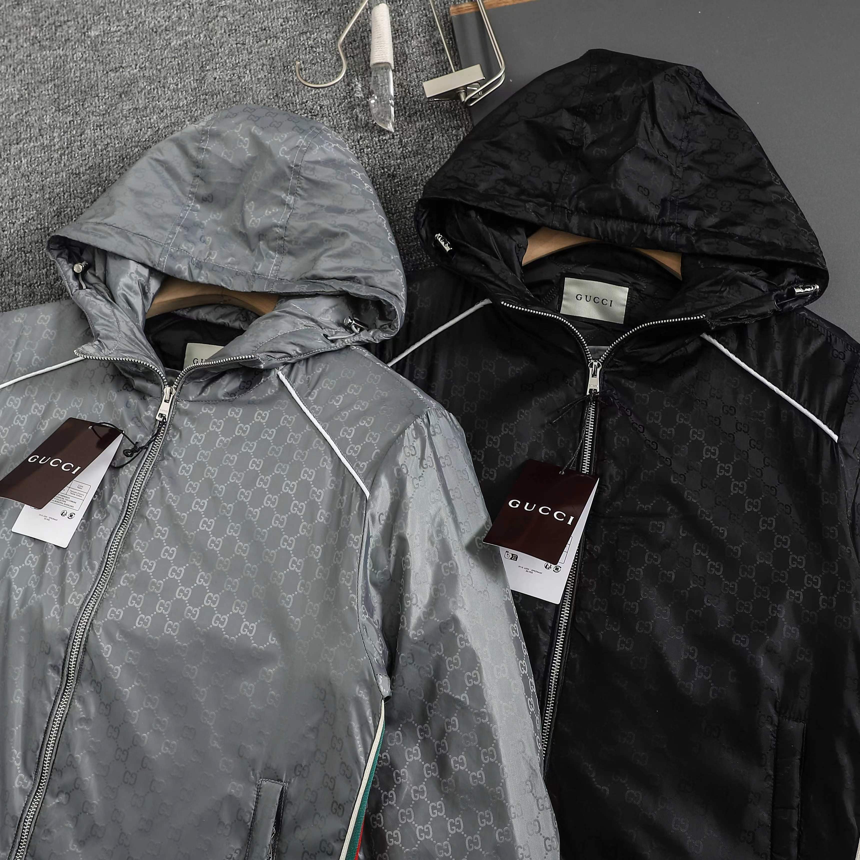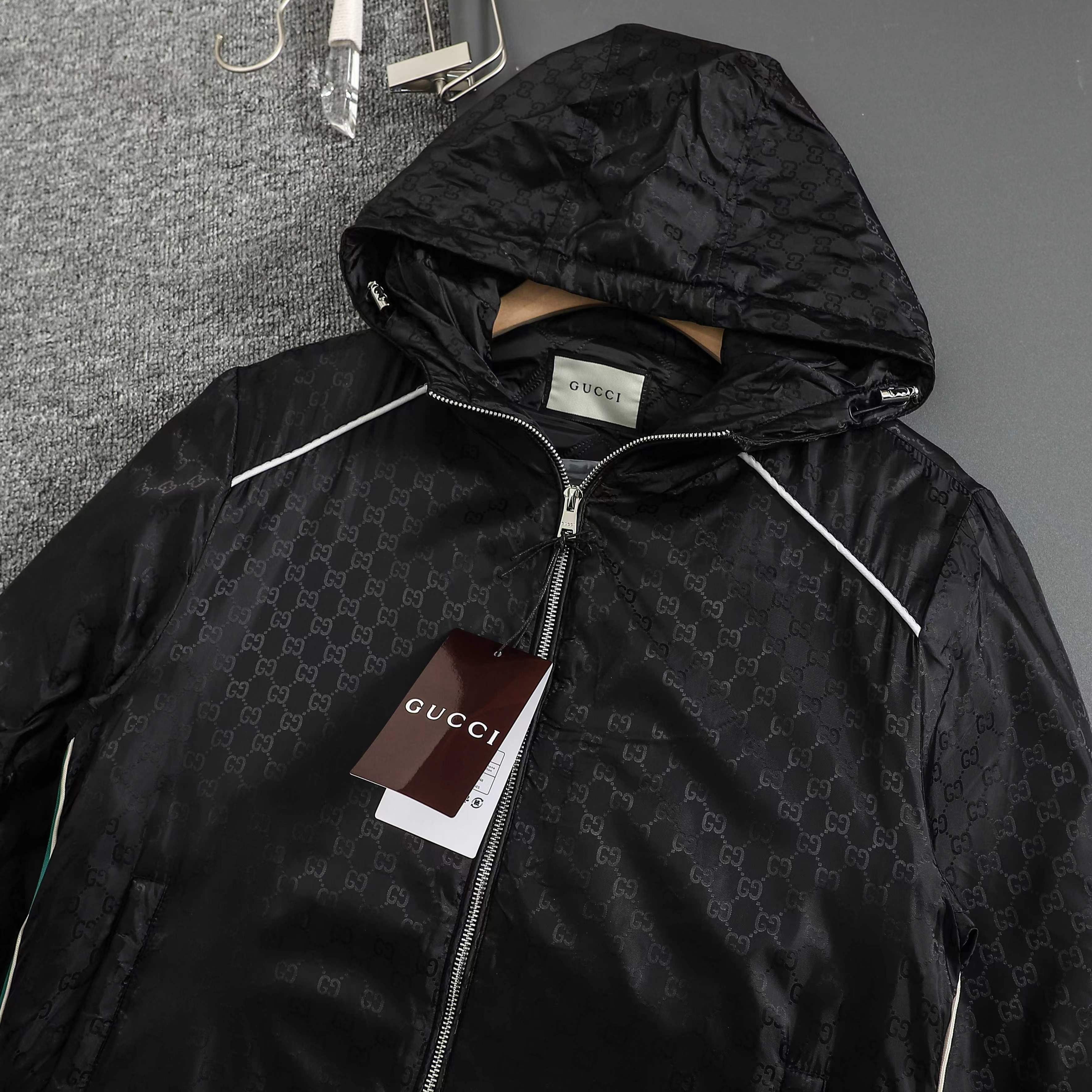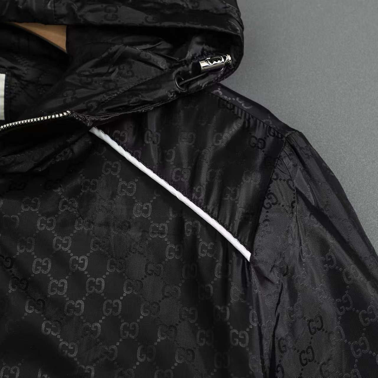 ss25秋冬新款满印GG织带 薄棉拉链连帽夹克