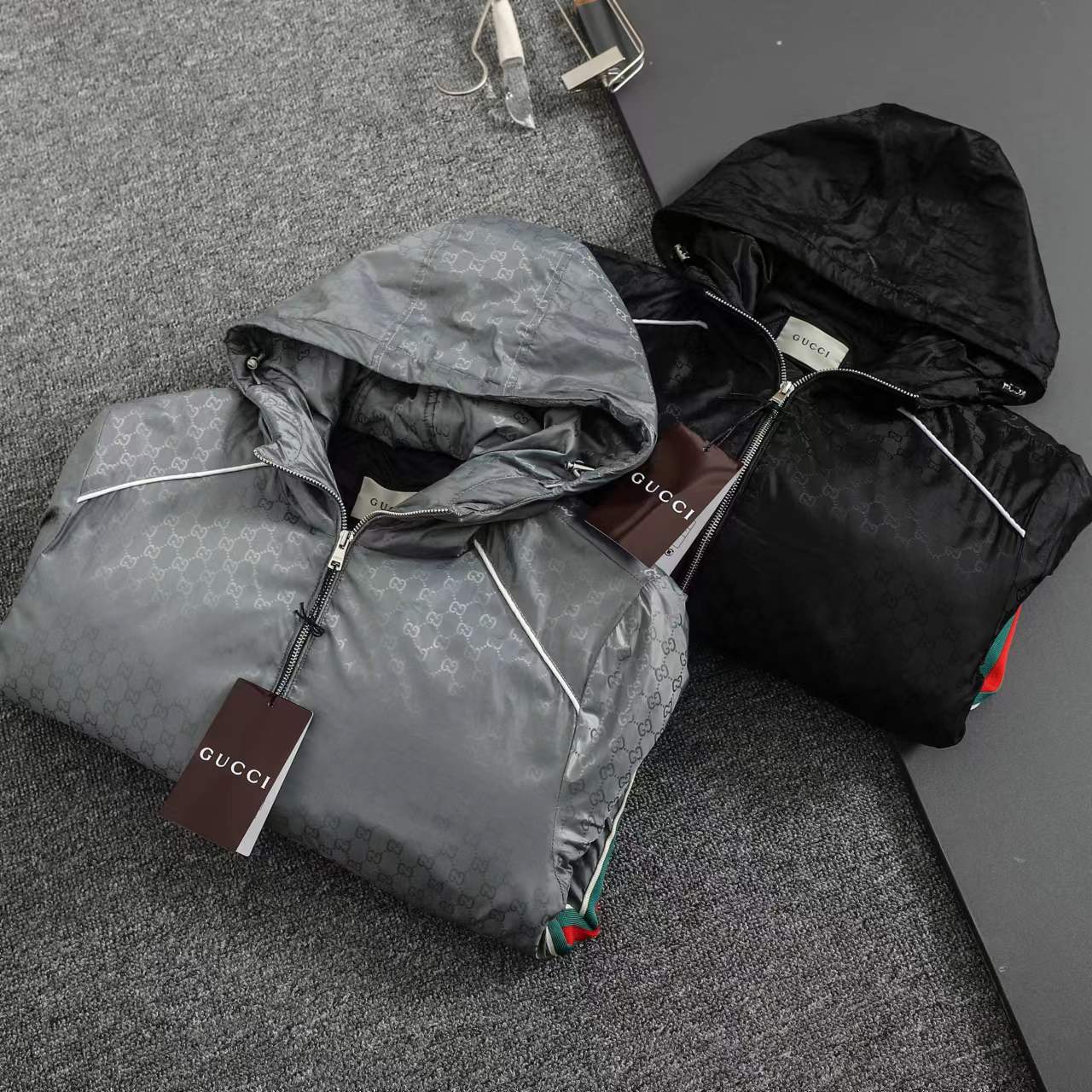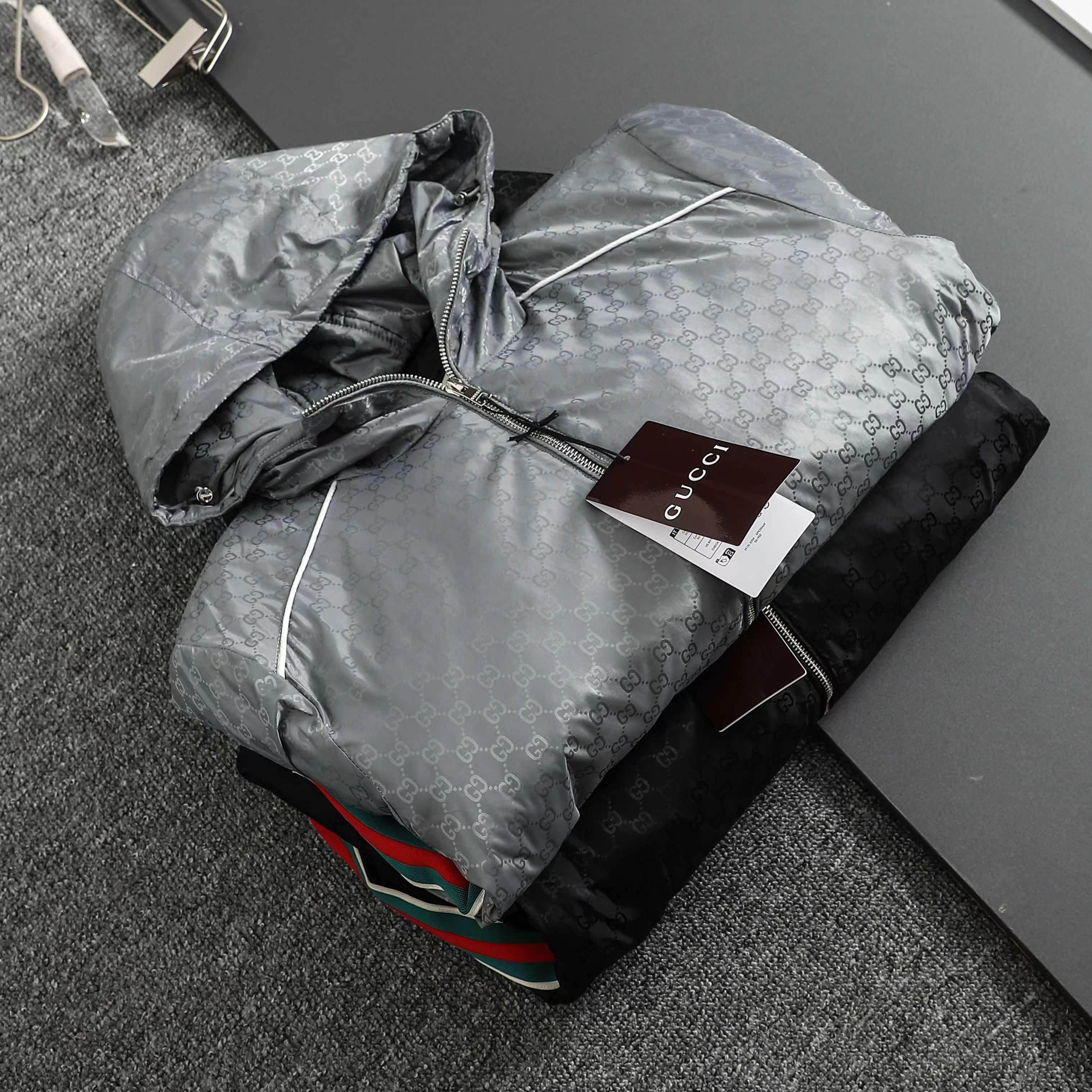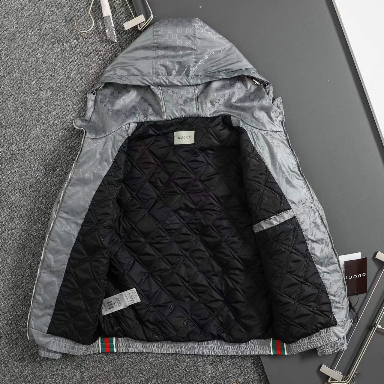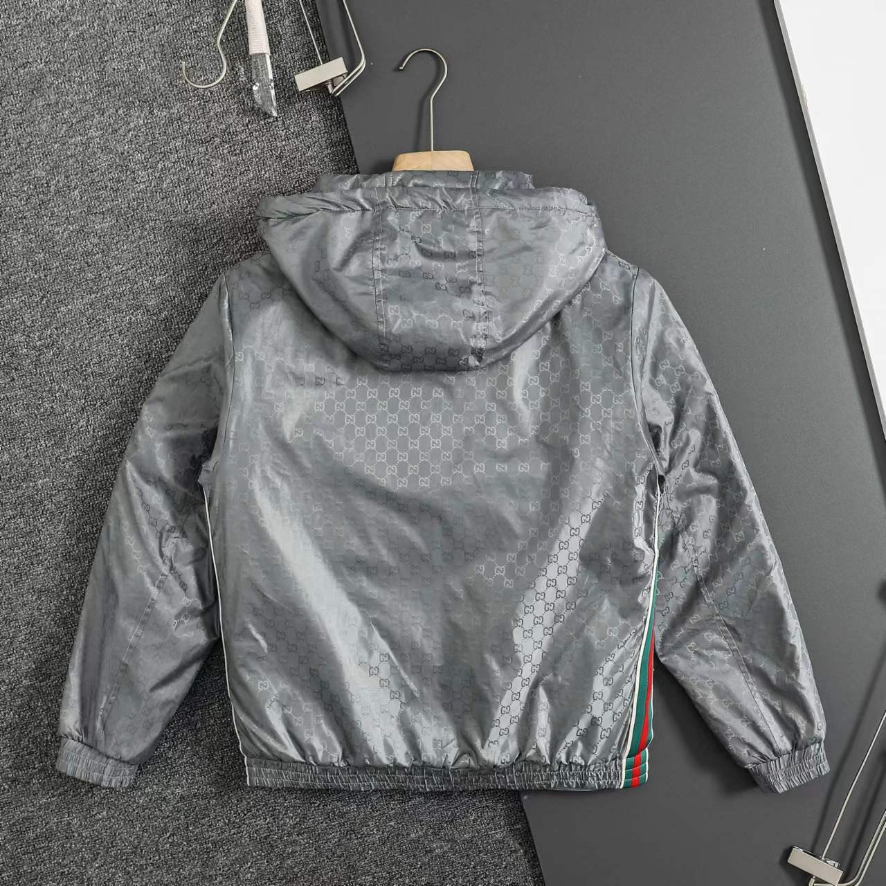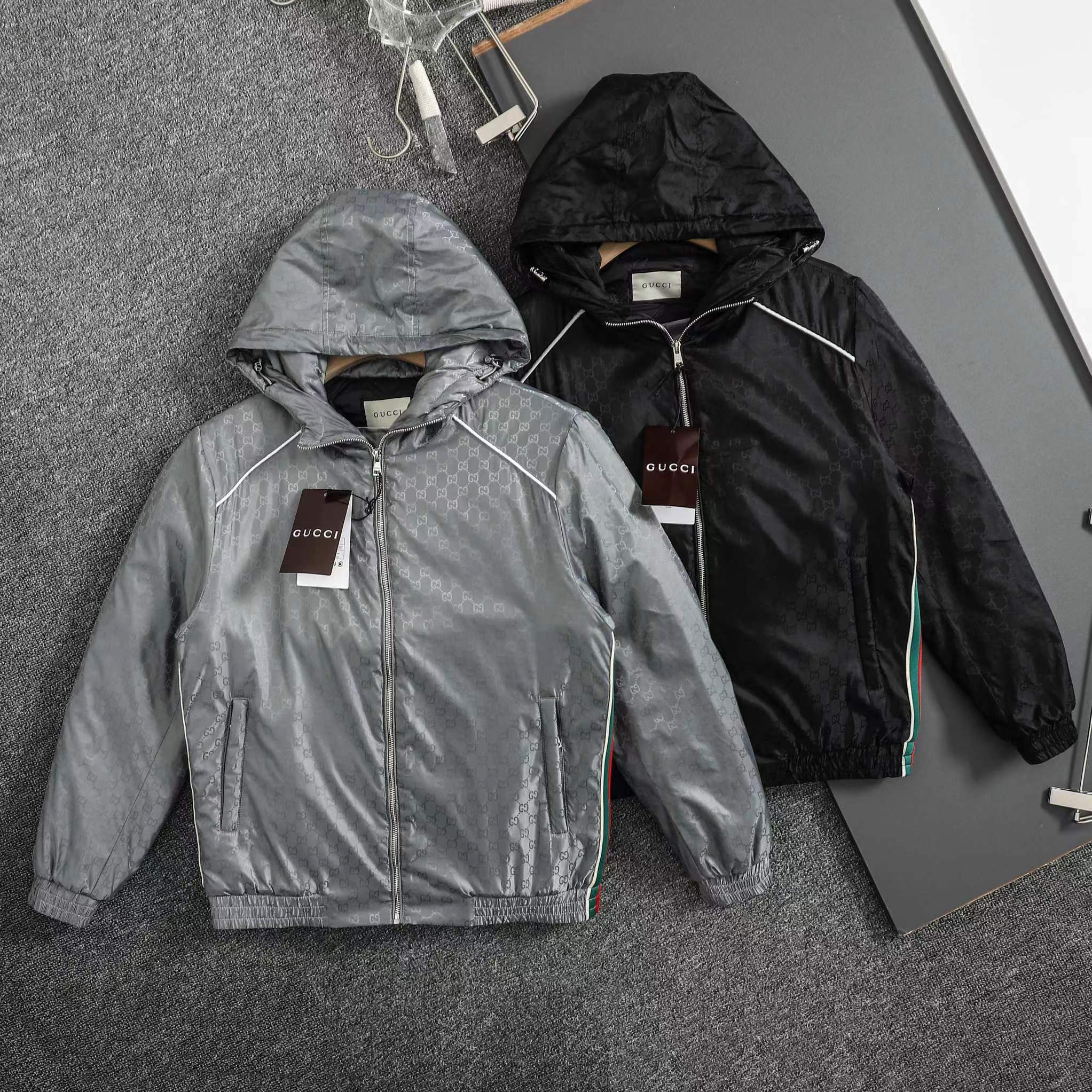 ss25秋冬新款满印GG织带 薄棉拉链连帽夹克