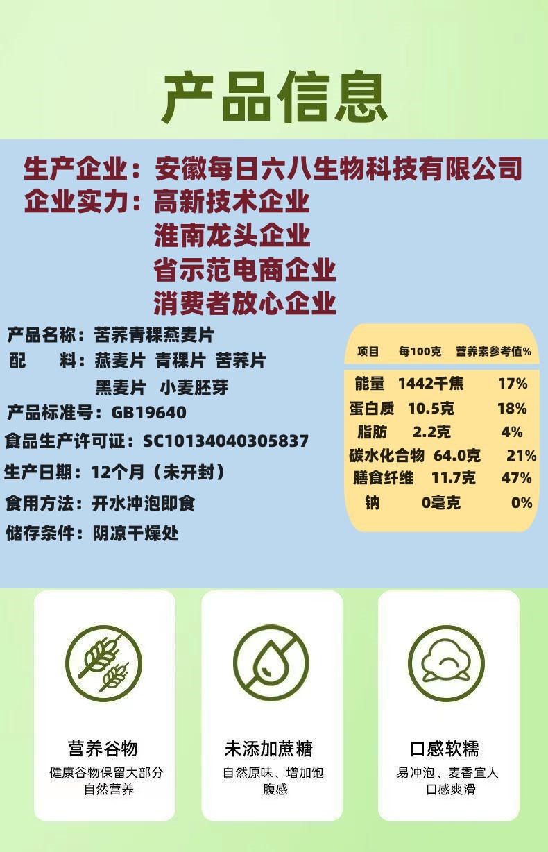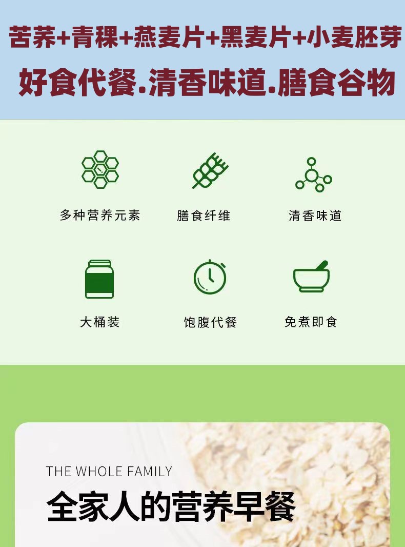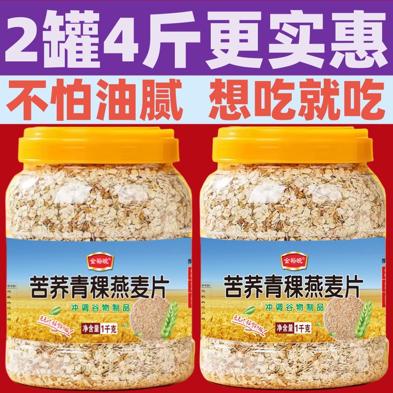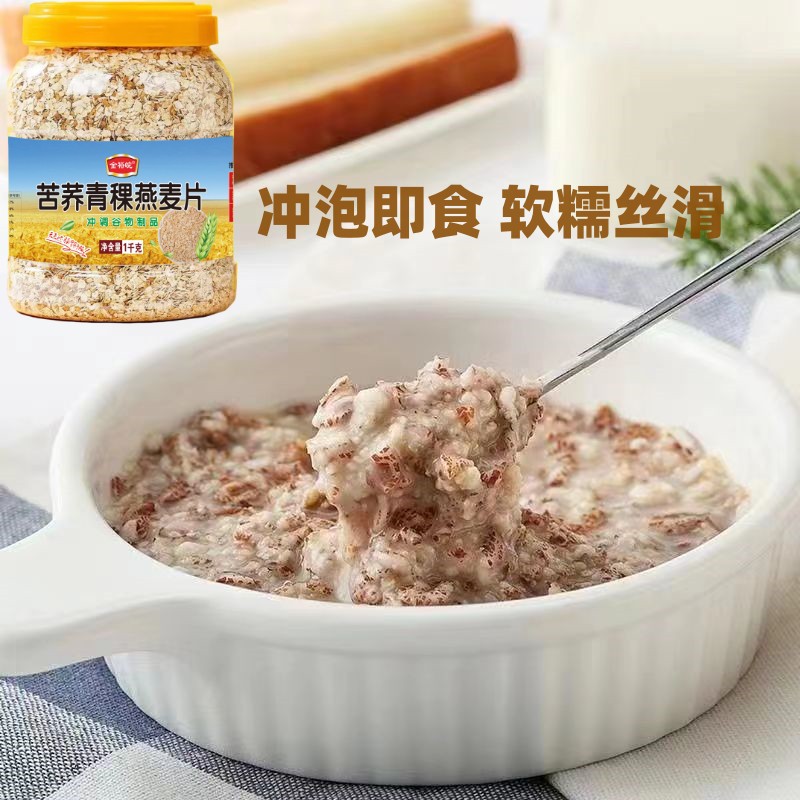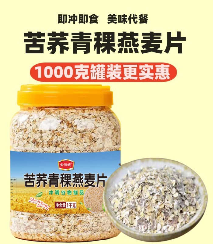 【免煮即食❗苦荞青稞燕麦片】冲泡即食,无添加蔗糖,口感软糯丝滑,营养代餐无添加蔗糖苦荞燕麦片早餐1000g罐装QQ