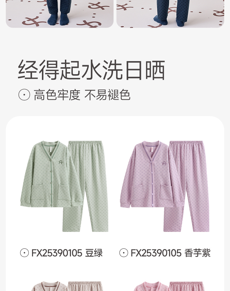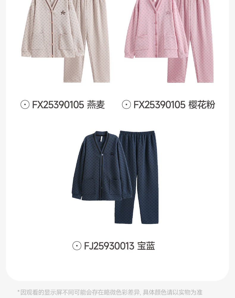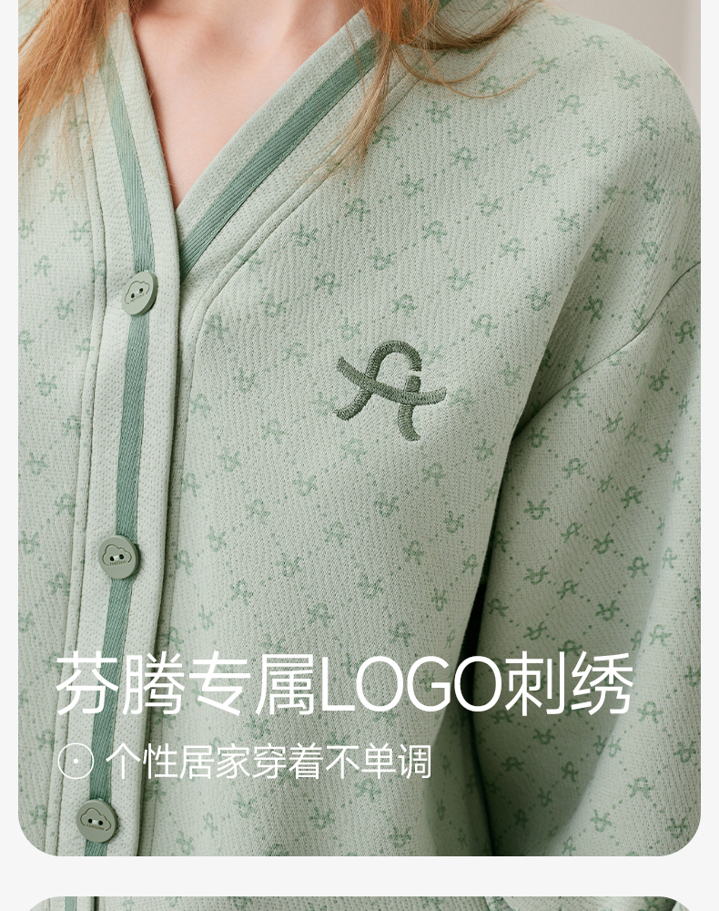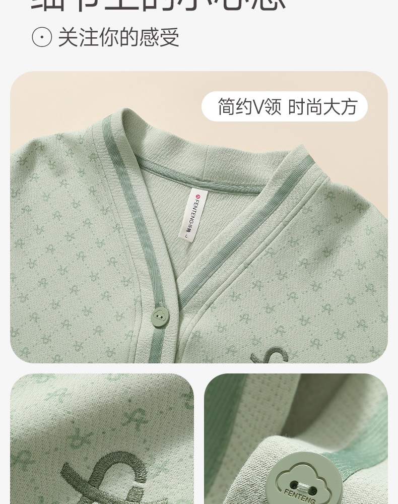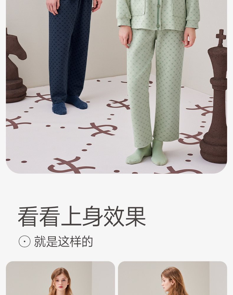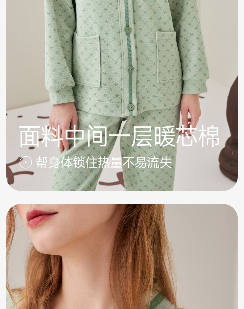 芬腾情侣睡衣秋冬空气棉夹层长袖纯棉套装女抗菌男士加大码家居服