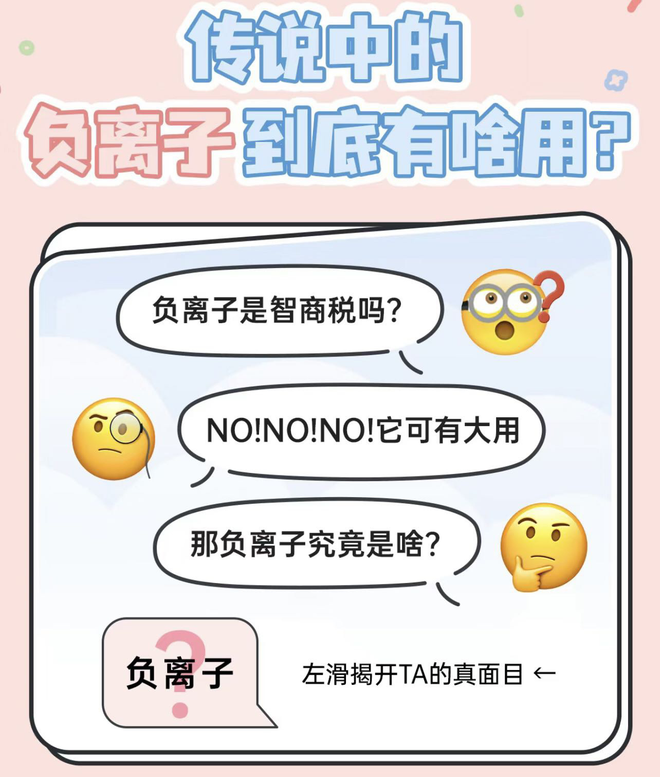 负离子是指带有负电荷的氧化物离子通过与人体皮肤接触,能够促进血液循环,增强免疫力,改善睡眠等功效