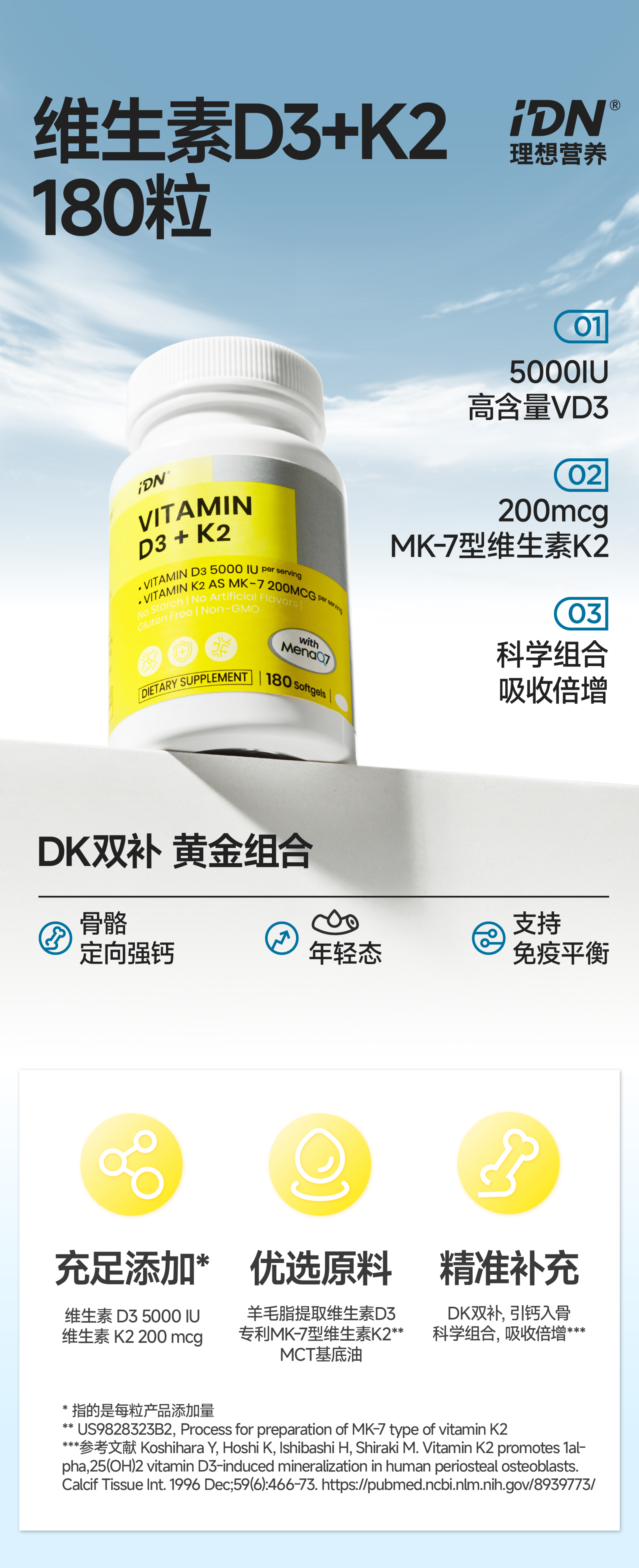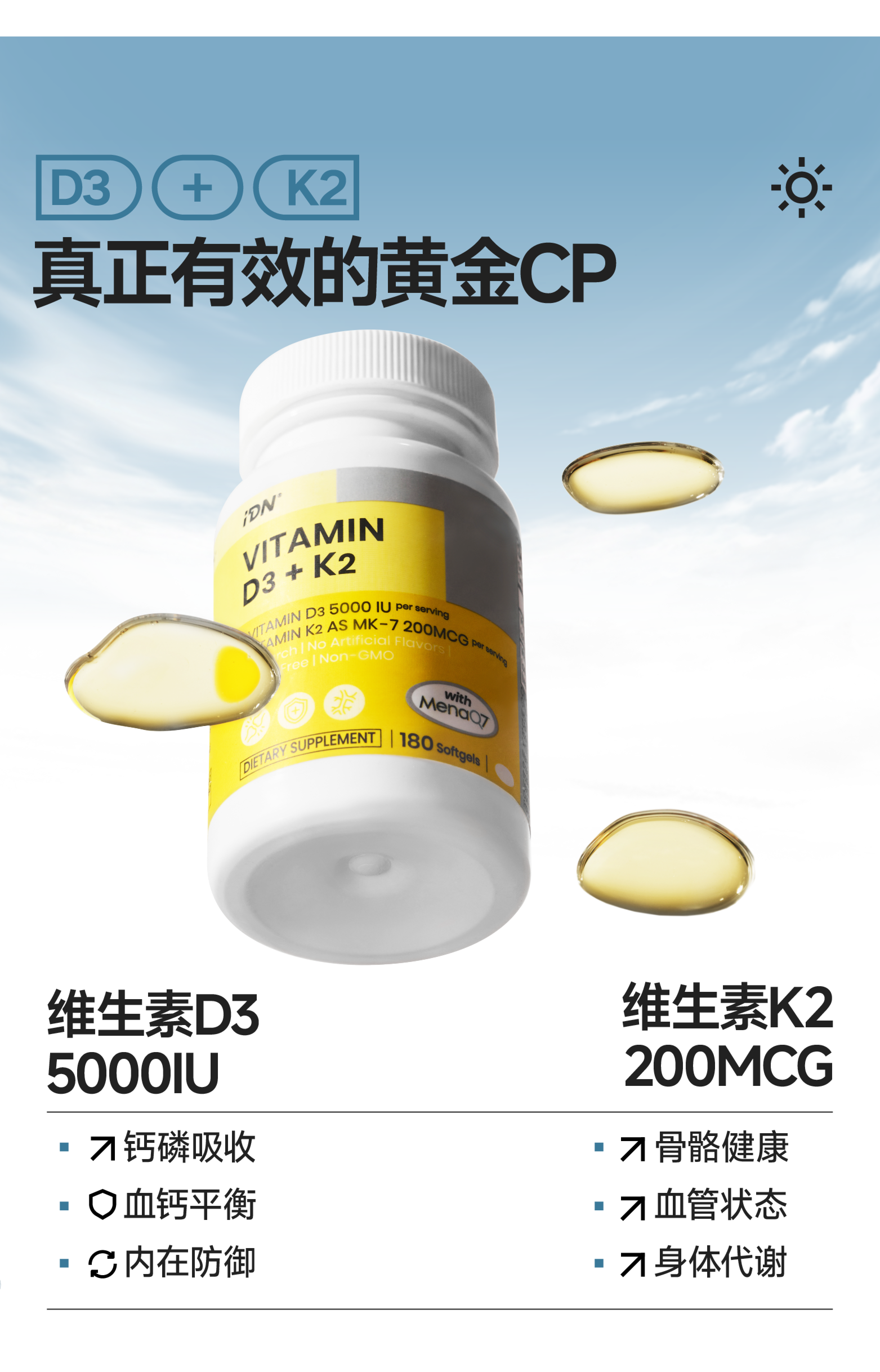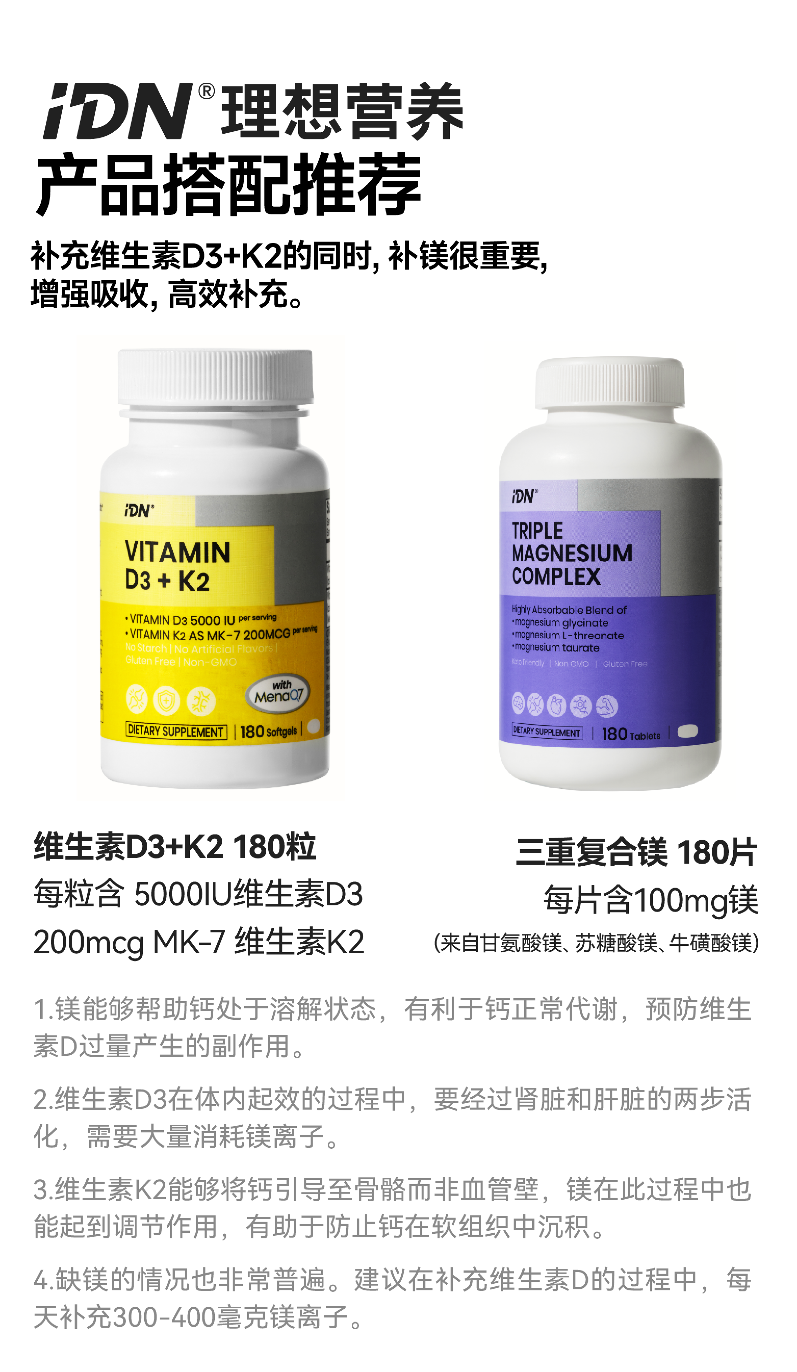 【搭配推荐】IDN理想营养 | 维生素DK镁组合协同作用呵护健康(跨境海淘商品不支持7天无理由退换)
