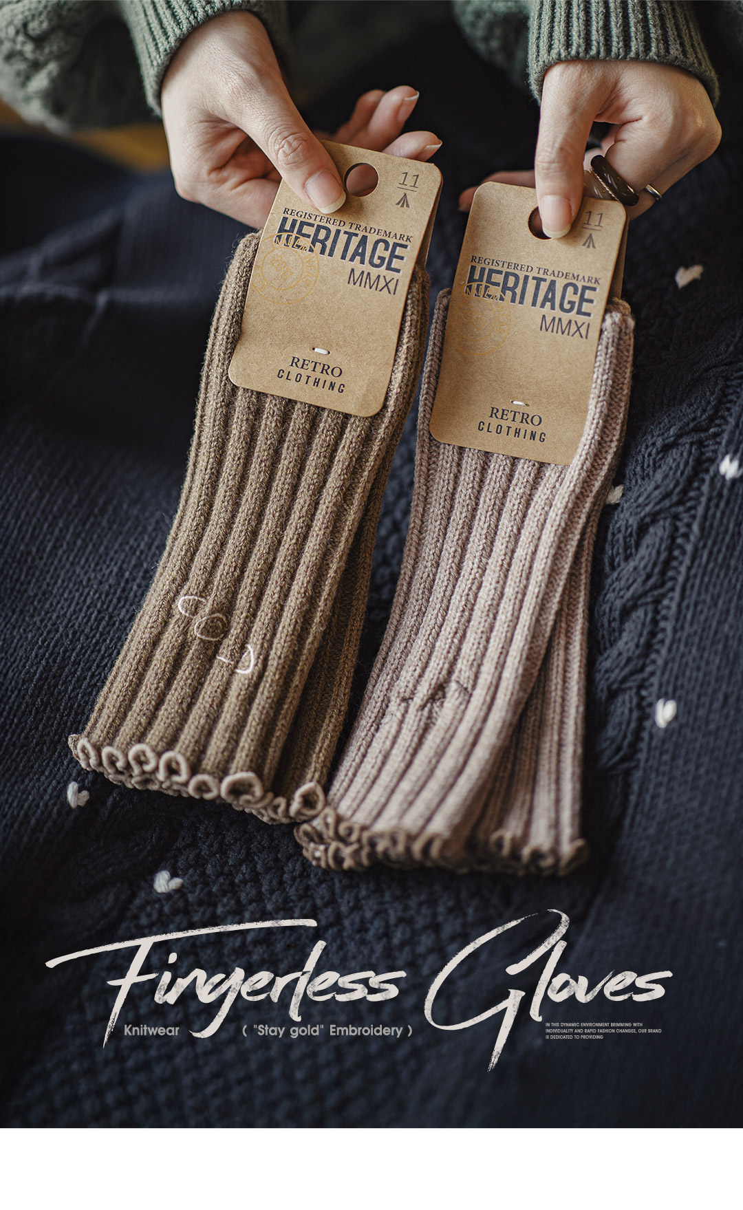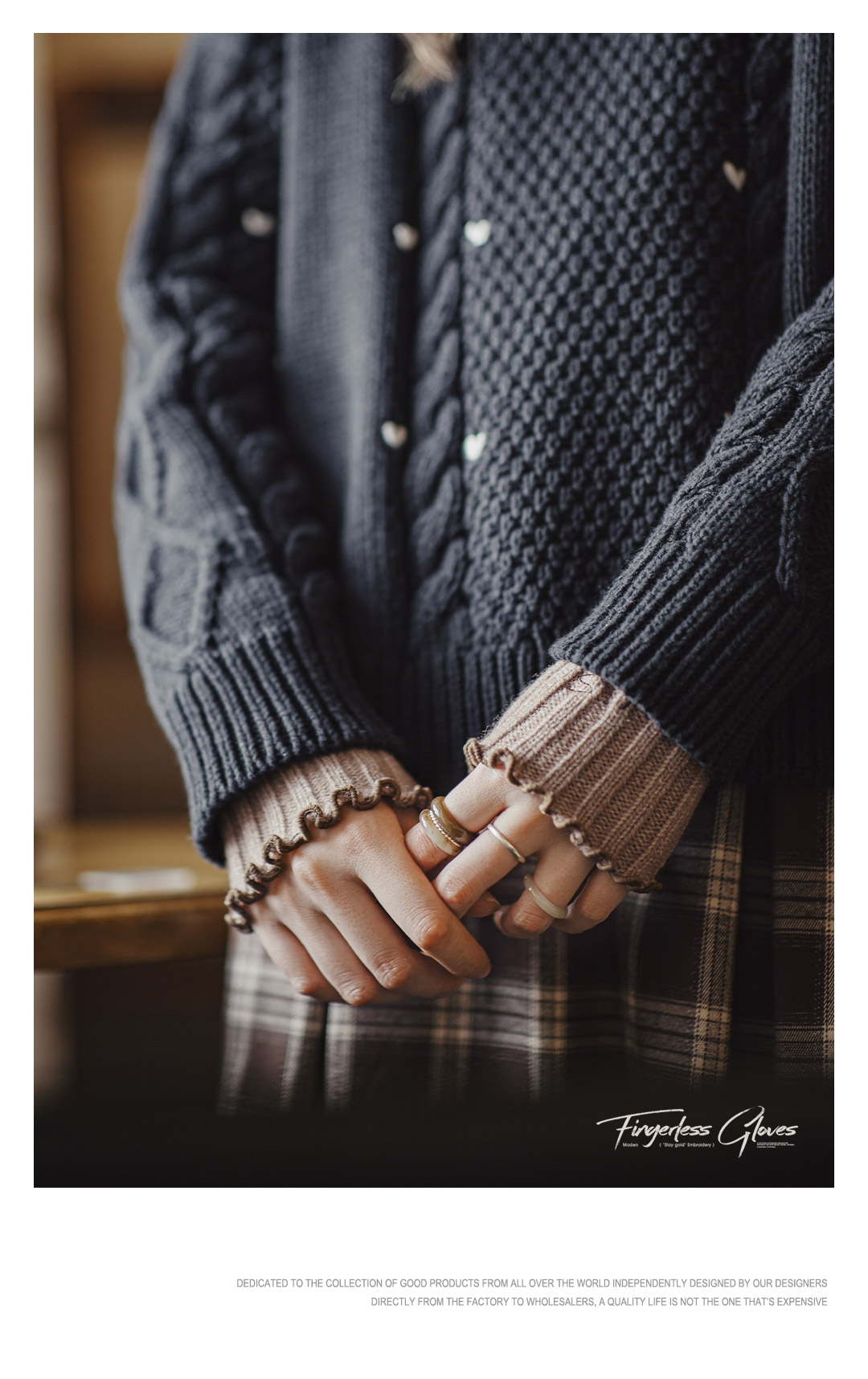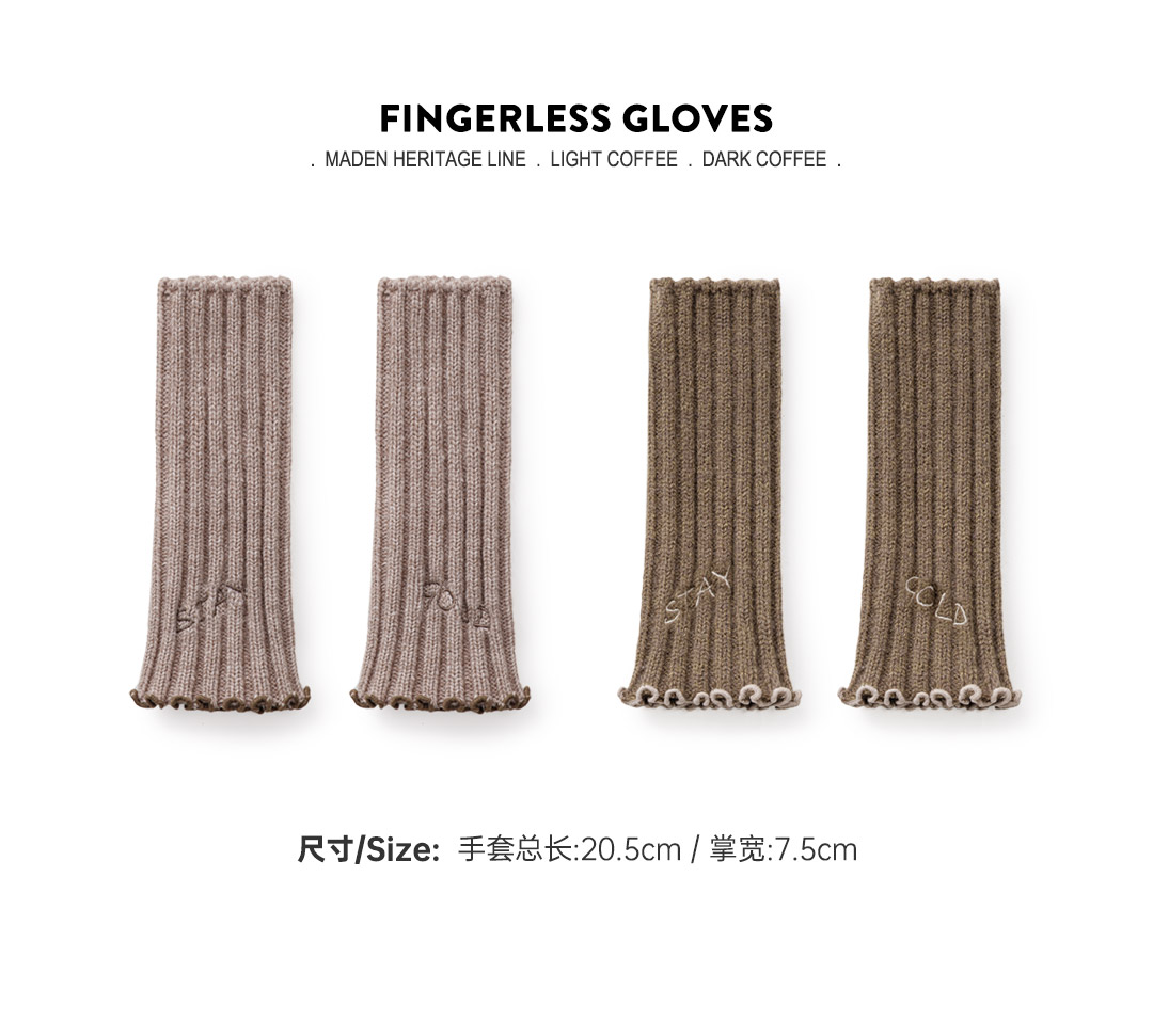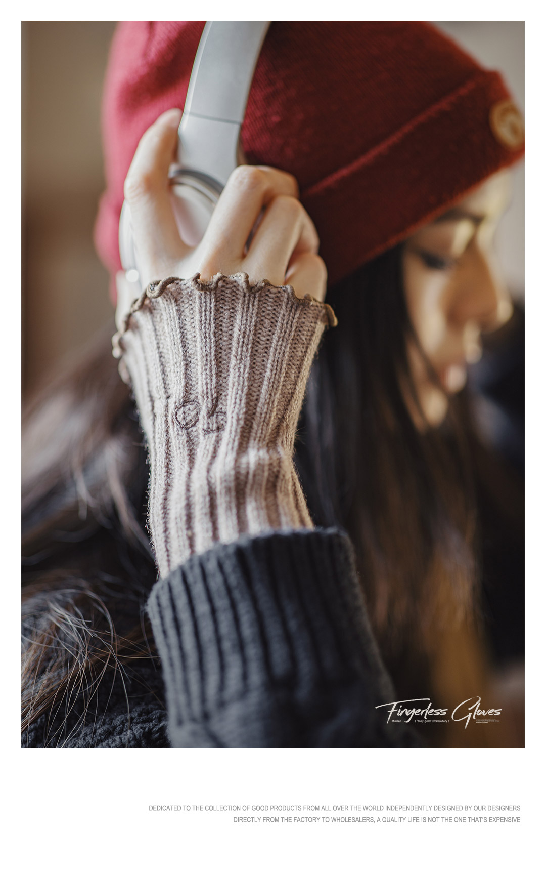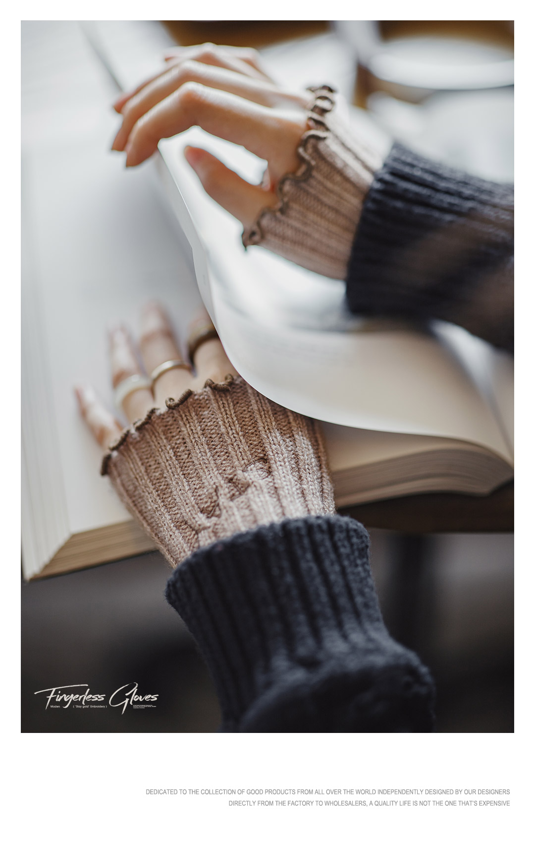 马登无指毛线手套加厚保暖露趾长款手臂袖套针织假袖子女士秋冬季