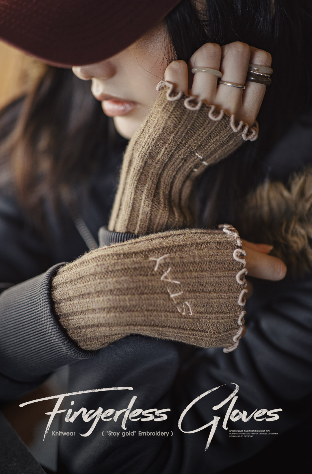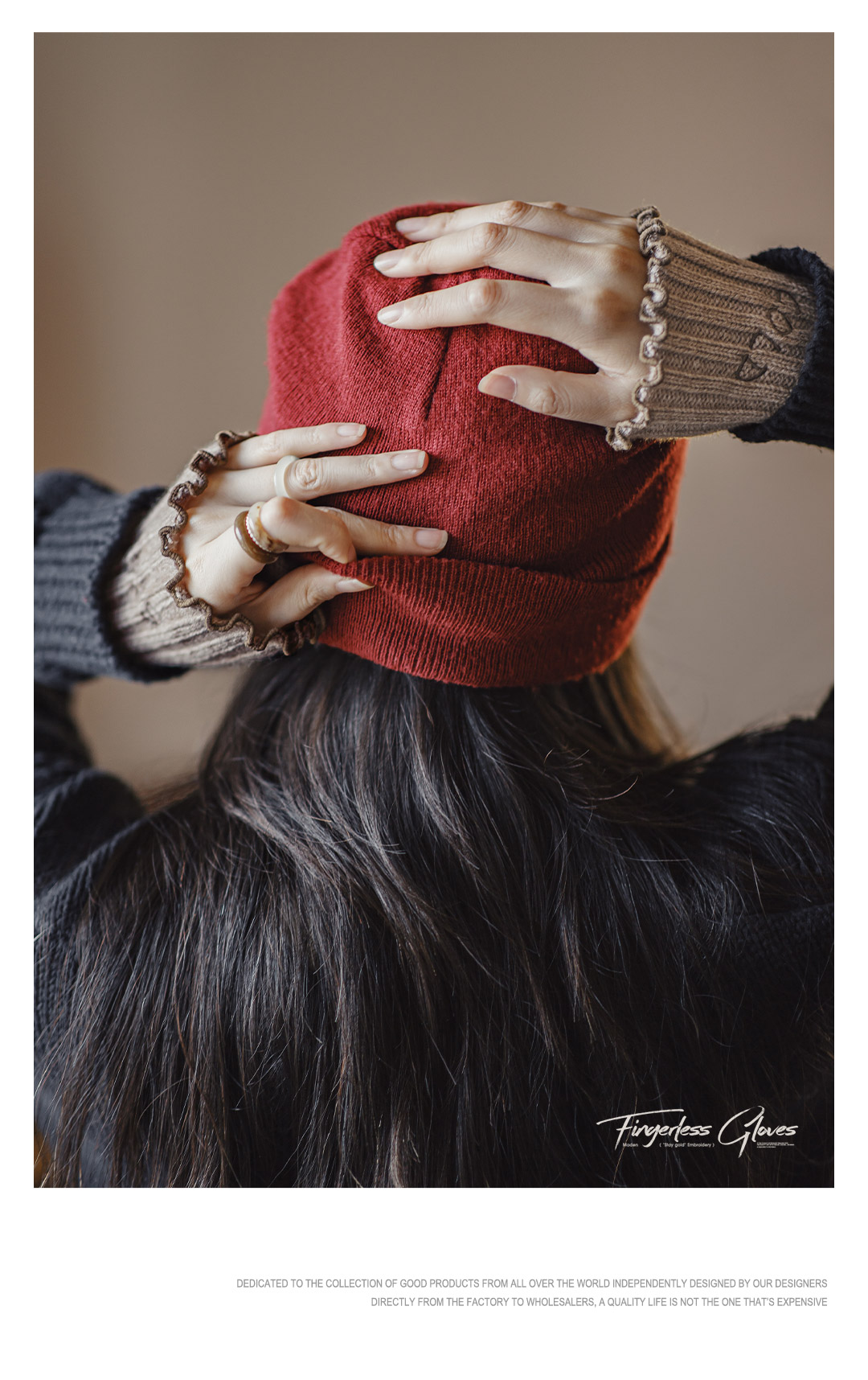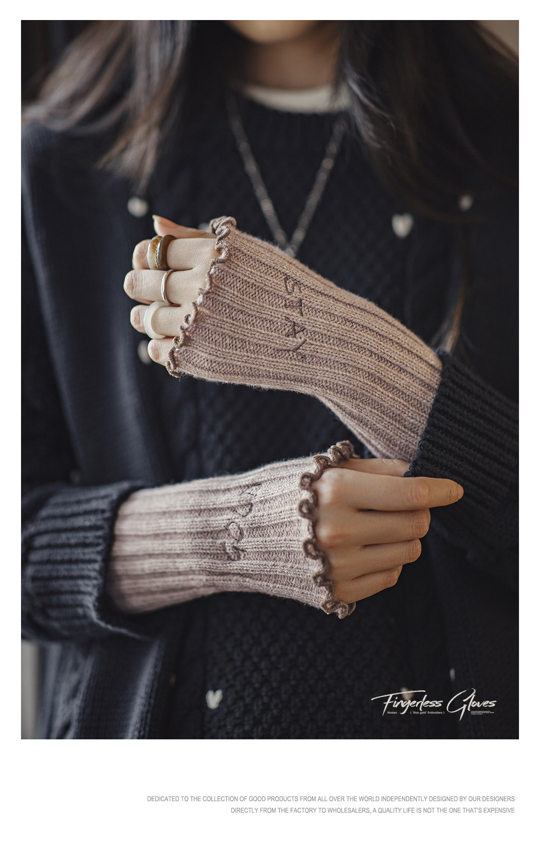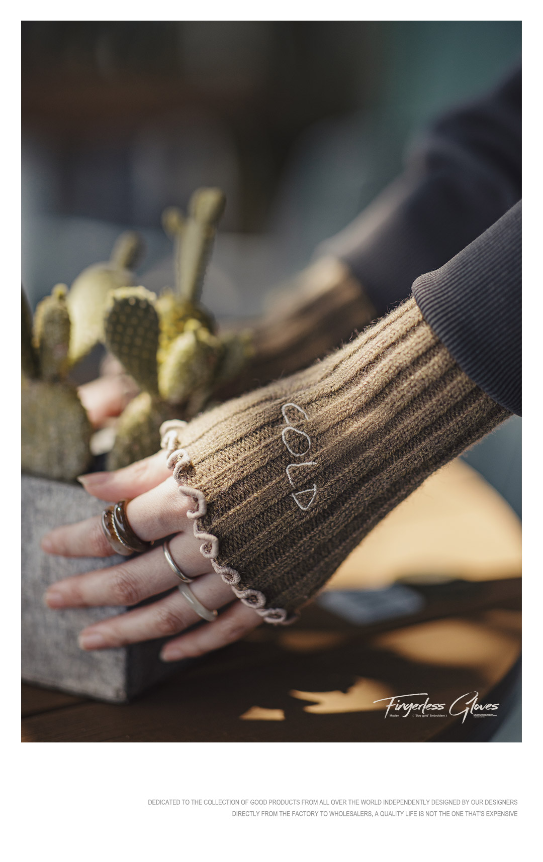 马登无指毛线手套加厚保暖露趾长款手臂袖套针织假袖子女士秋冬季