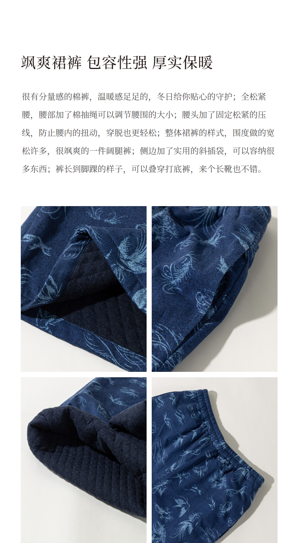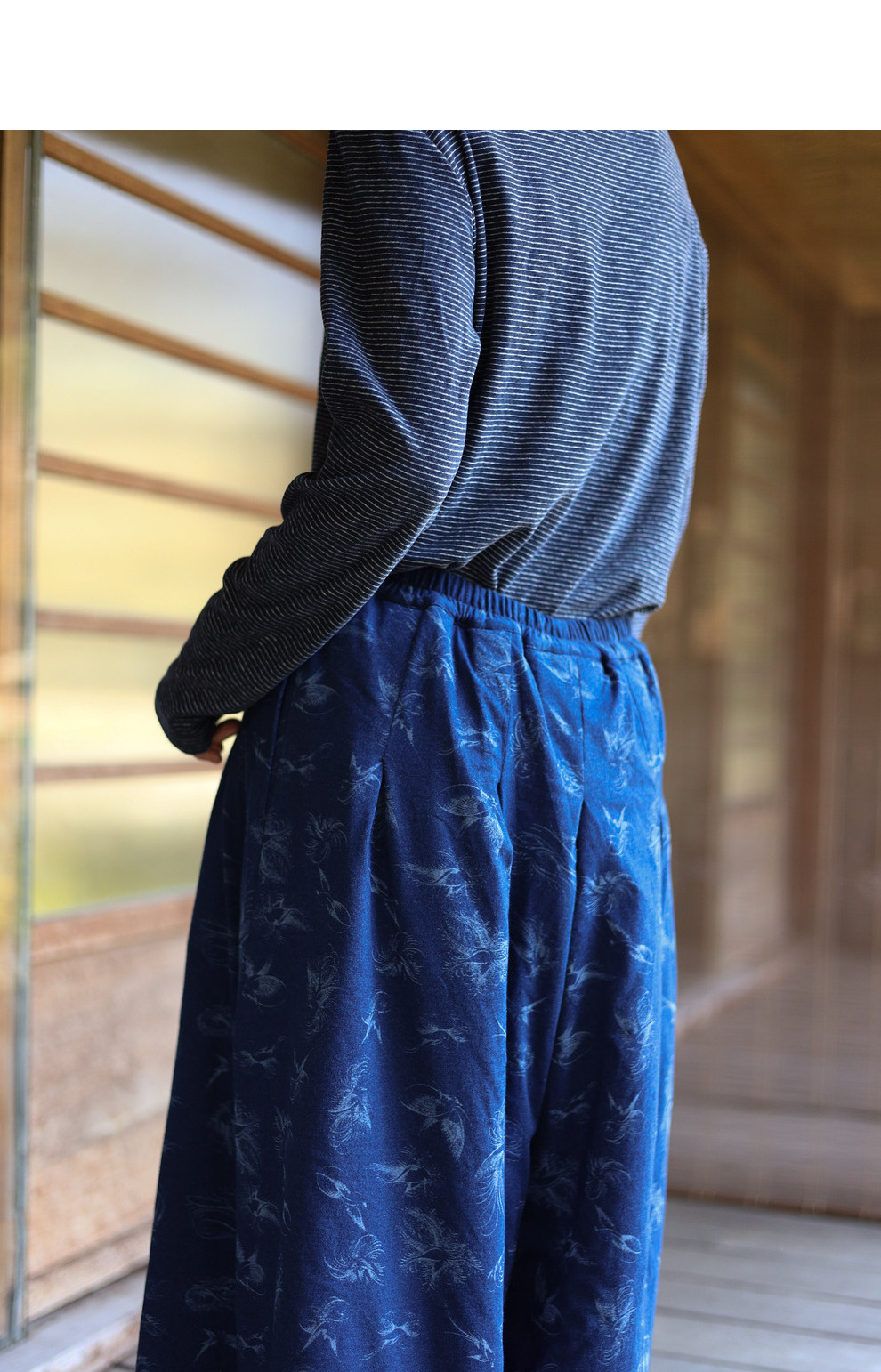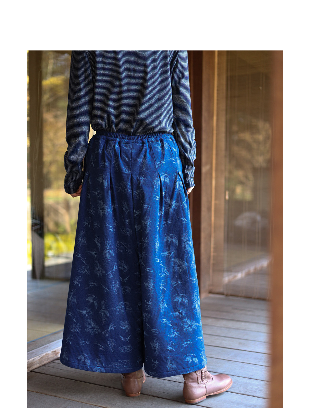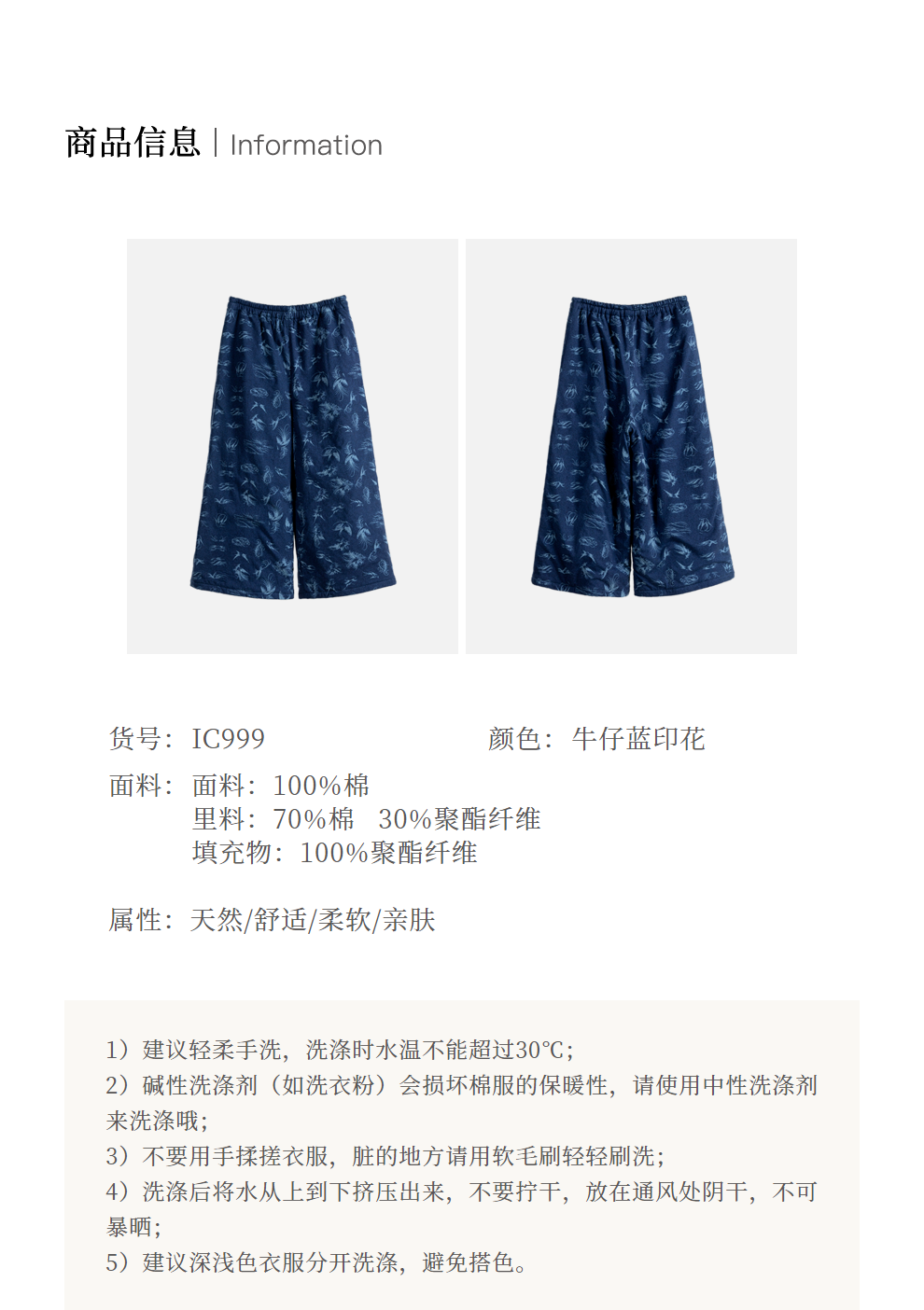 绽放999朵/【IP黄河记忆系列】牛仔针织印花松紧腰绗棉阔腿裤裙子